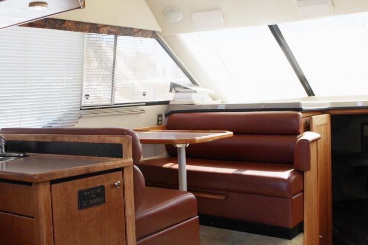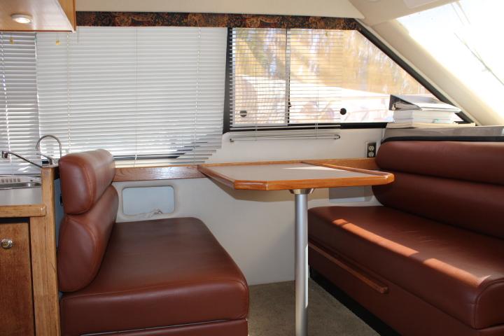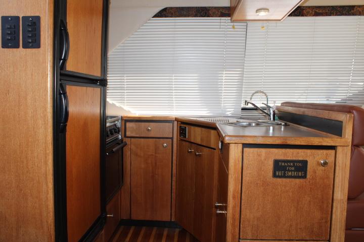 Step aboard and enjoy a smart layout featuring three private staterooms, plus a convertible dinette and adjacent settee. The U-shaped galley boasts a full-size refrigerator, propane stove and oven, double stainless sinks, and ample storage space.