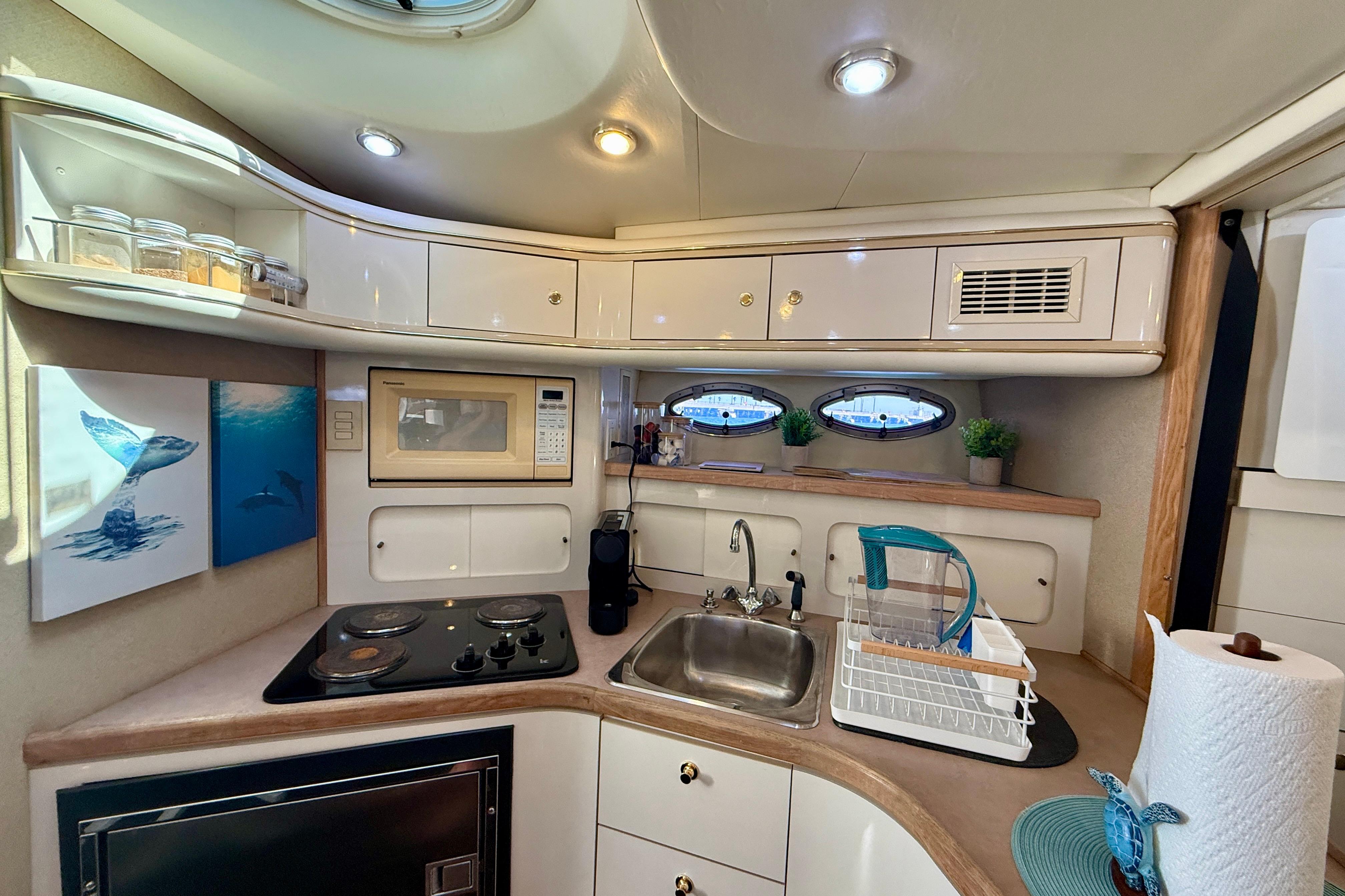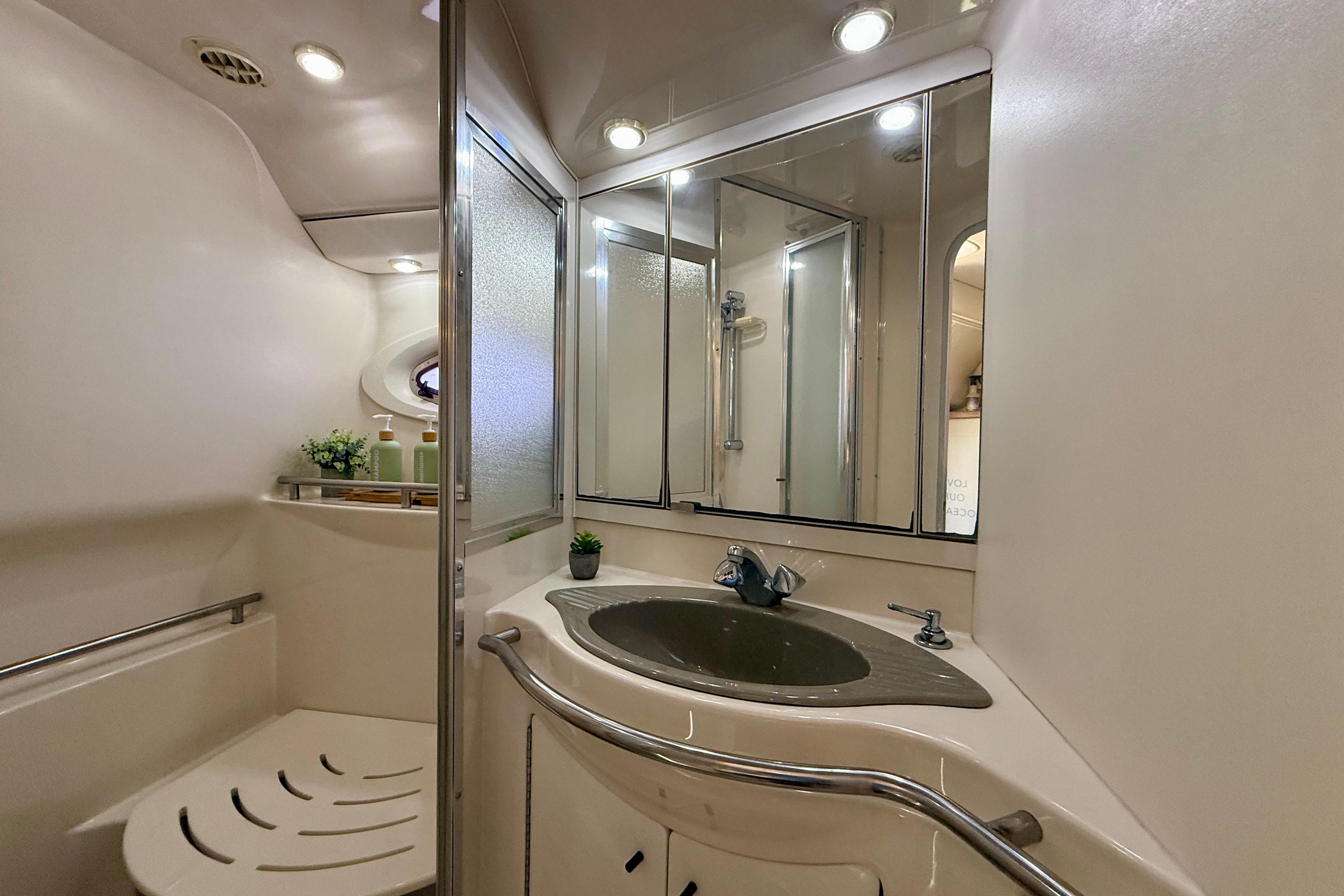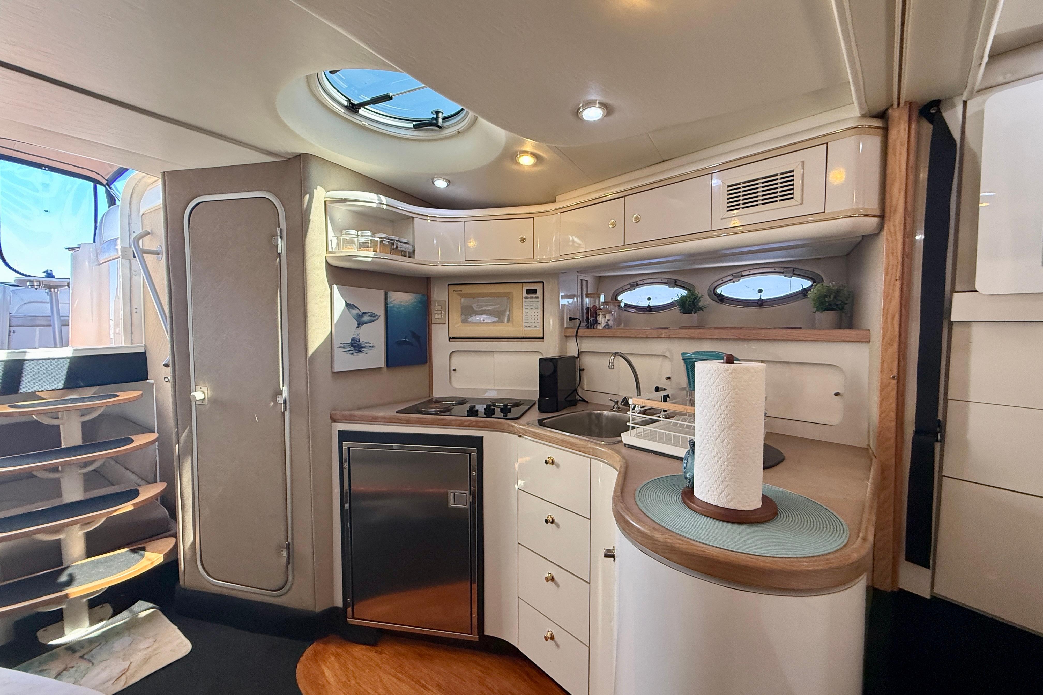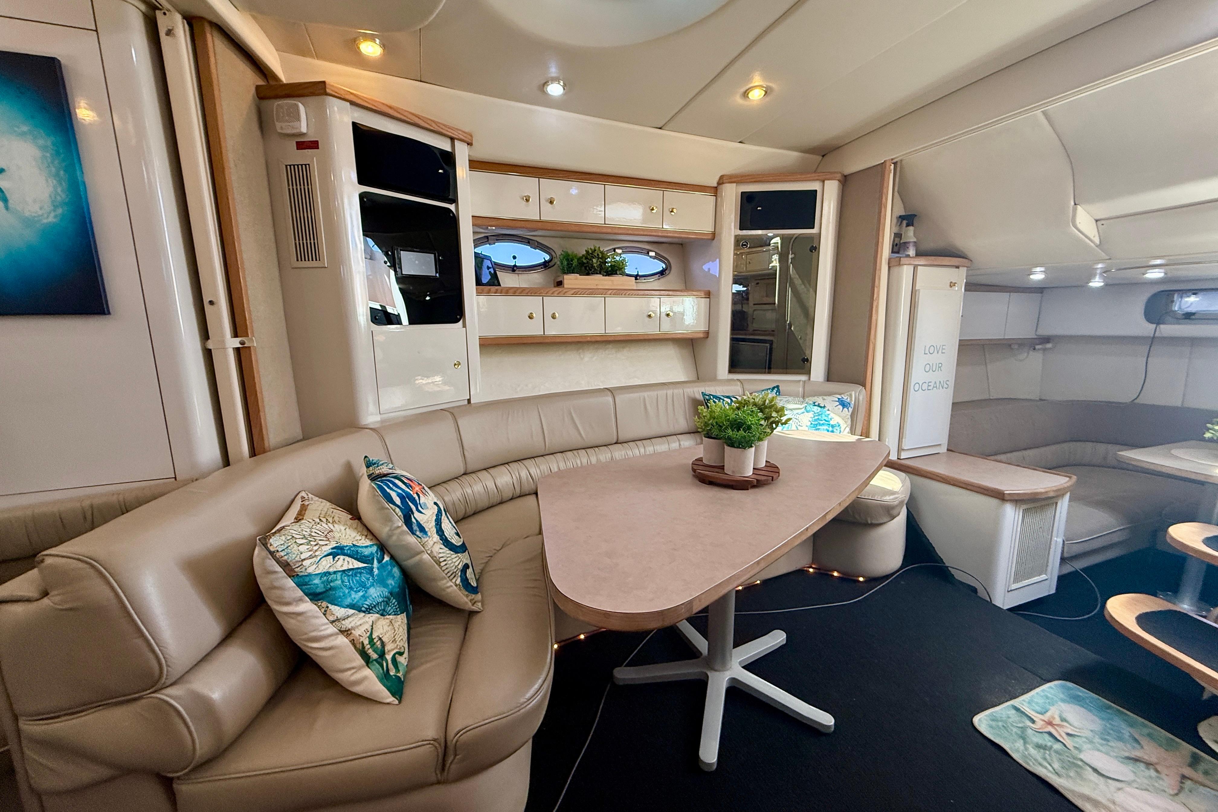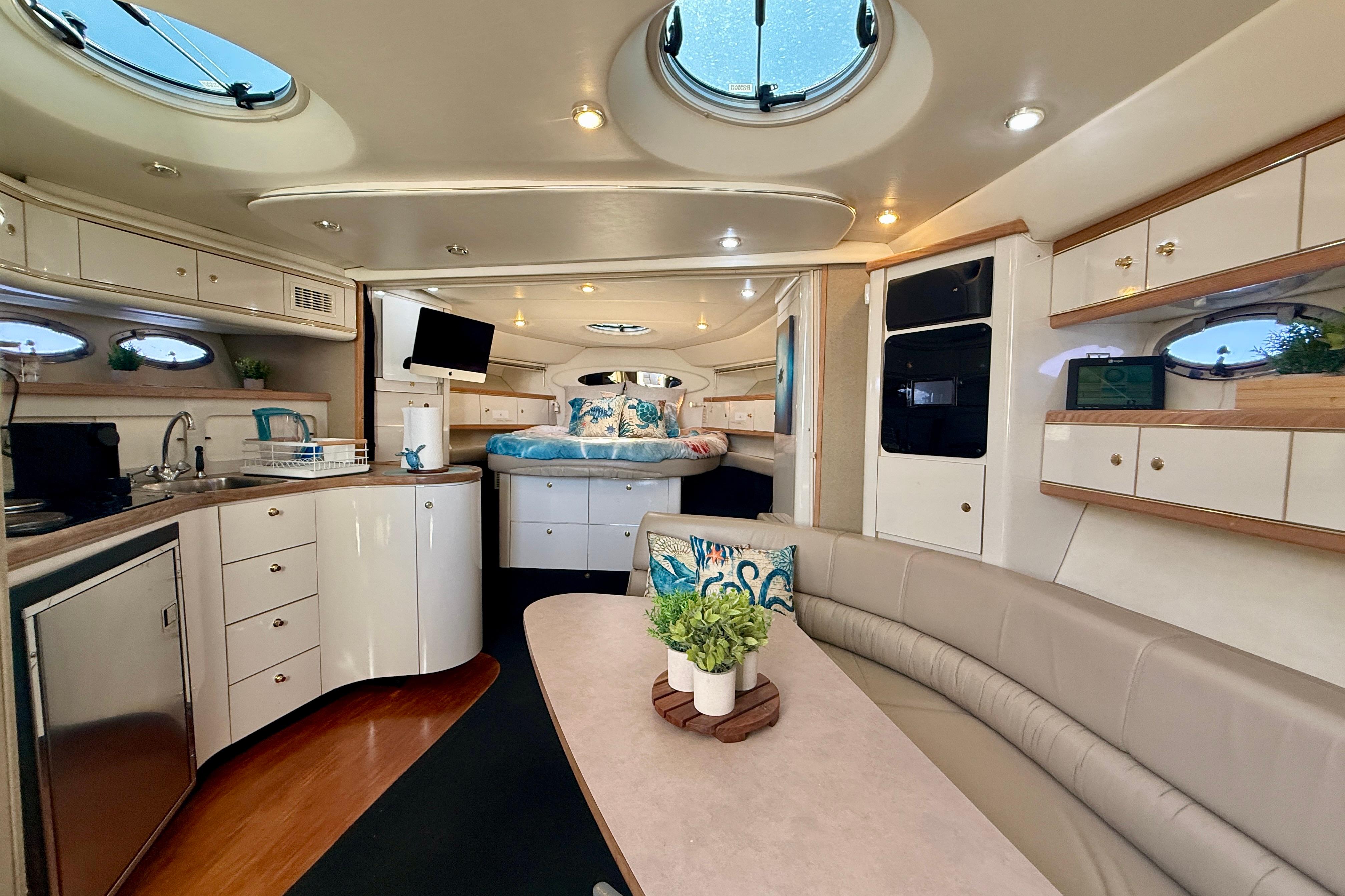 Introducing “Ce Reve Bleu”, a 1997 Maxum 4100 SCR, a remarkable express cruiser that seamlessly blends performance and comfort. This vessel boasts a sleek fiberglass hull designed for both stability and elegance. The seller has had her managed by a professional yacht management company