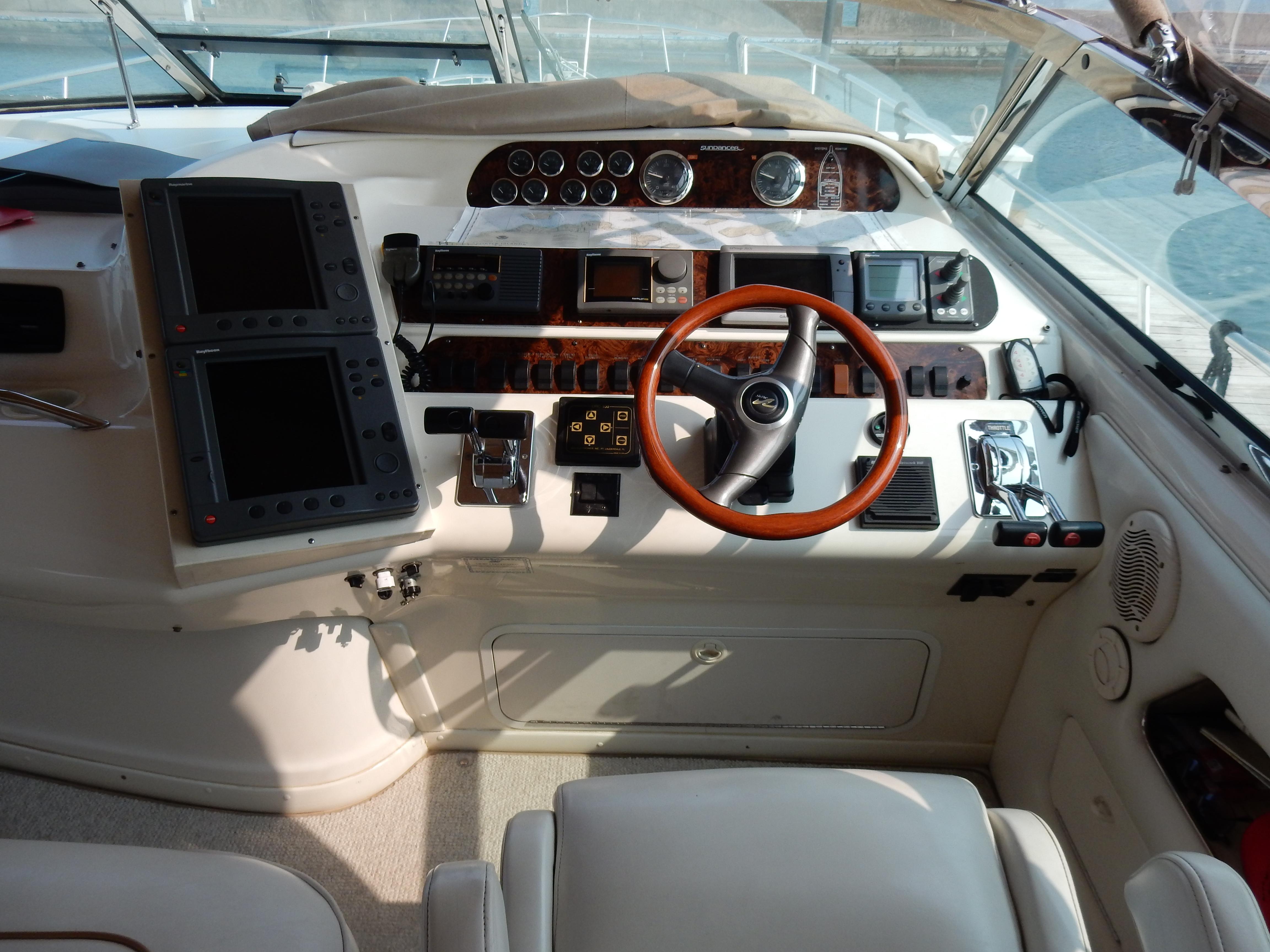 Price Just Reduced $10k! Sandi is a real head turner with the custom navy-blue topside finish she certainly stands out from other Sea Ray 450s. She’s very well equipped and maintained and has only 845 hours on the Twin Cat. diesel engines. Notable upgrades include Side-Power bow & stern thrusters for confident handling and a hyd. Dinghy-Lift stern platform combined with a Zodiac 11.5′ Yamaha jet powered RIB inflatable tender. The Sea Ray 450 Express Cruiser is a stunning vessel that combines elegance with performance. Measuring an overall length of 45.5 feet it’s powered by twin Caterpillar 3126TA diesel engines, each delivering an impressive 420 horsepower, it offers exhilarating cruising speeds and performance perfect for those seeking adventure on the water. With a well-designed layout, it provides ample space for relaxation and entertainment. The Sea Ray 450 is not just a boat; it’s a lifestyle choice for those who appreciate quality and performance. Whether you’re cruising along the coast, enjoying a day on the water, or dockside with friends and family this vessel promises unforgettable moments and memories.