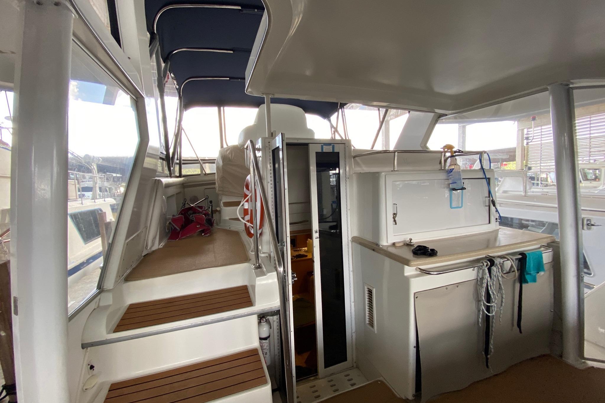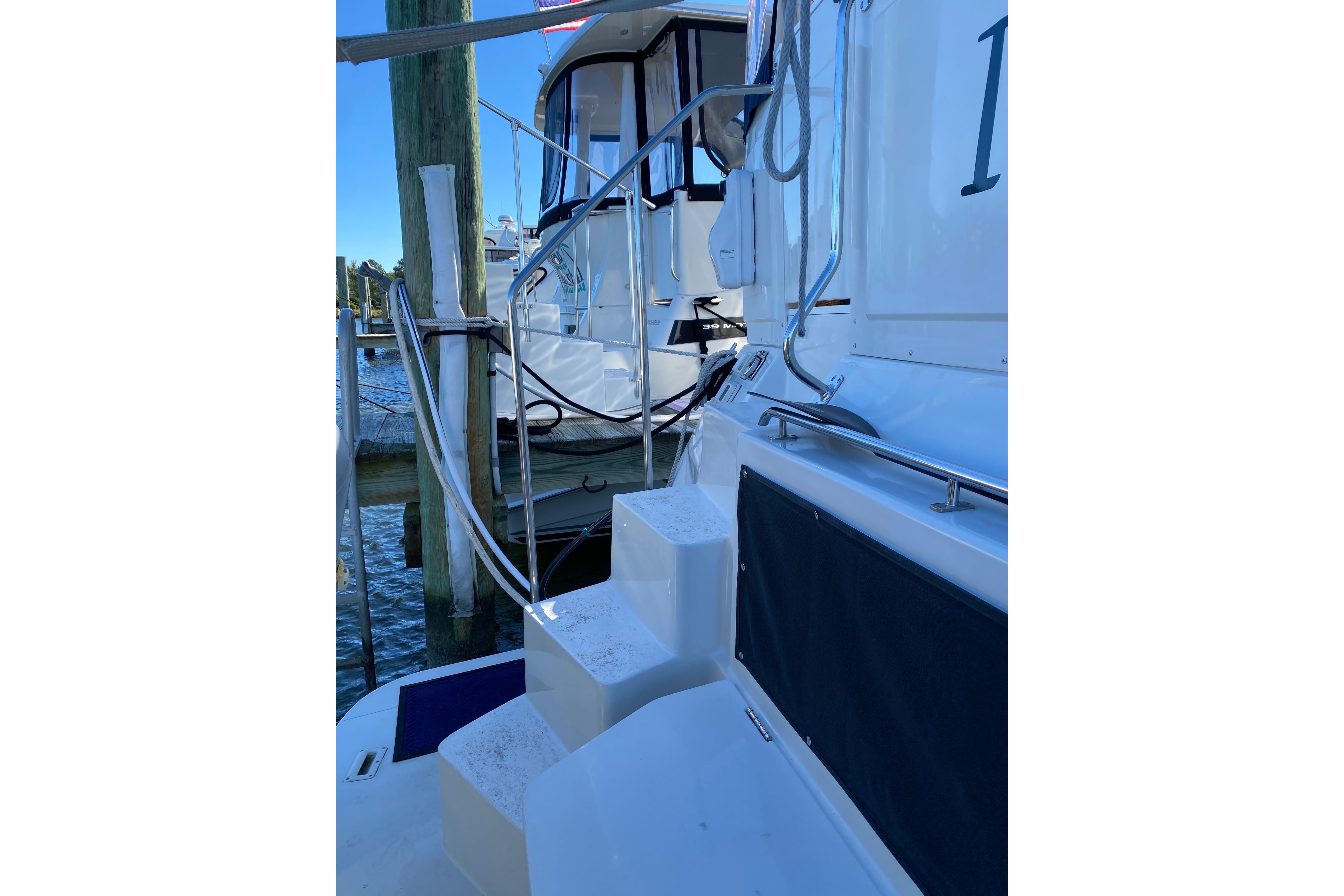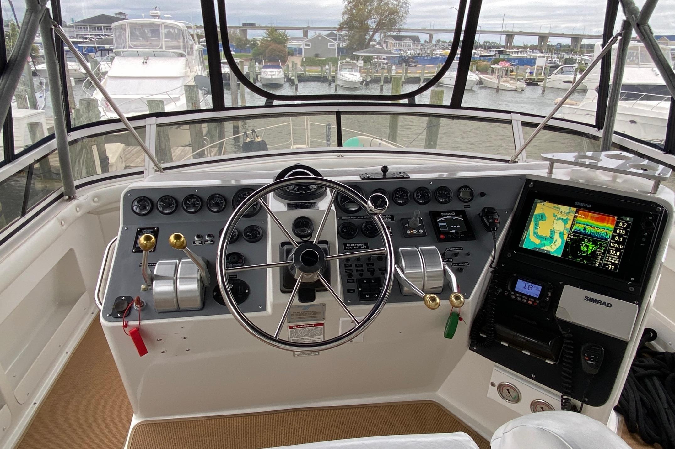 The Carver 445 Aft Cabin Motor Yacht blends quality materials, structural integrity, and superior craftsmanship into this popular yacht. “Irish Hurricane” has completed two Great Loops plus cruised from Lake Superior to Montreal and throughout New England. Her current owners have traveled aboard for up to 11 months at a time. Since November 2023 she has been in a covered slip or moored north of Virginia. Vessel, machinery, and running gear have been carefully maintained to ensure longevity. The 445’s modified vee hull provides stability on the water or dockside and allows the vessel to operate off or on plane. Walkaround main deck offers secure movement; swim platform affords easy boarding. The vessel is great for weekend cruising, dockside living, and entertaining. A hard-top, Isinglass enclosed sun deck has ample room for patio furniture; sundeck isinglass includes zip-in mosquito screening and separate drapes that offer full or partial privacy when drawn. Swim platform has hot/cold freshwater shower and sturdy 4-rung swim ladder. Weaver davit system with additional block and tackle offers ease of launch/ recovery. Foredeck has sunning pad. Purchase includes 2 new beanbag chairs. Flybridge has bench seating forward and a second bench adjacent to the swivel helm chair. Hard top aft of flybridge is features non-skid deck for safety. Main salon includes Stressless recliner, rocker recliner, makeshift couch that folds into twin bed, and a computer workstation; Starlink provides connectivity 24/7. Salon HDTV can be mounted above or below countertop. Vessel (excluding bridge) is wired for Bose surround sound. Galley down has full-sized appliances and is within easy reach of dinette and apartment-sized washer/dryer. Open concept salon facilitates galley/salon conversation. Forward berth sleeps three (double berth with upper bunk), has full-length closet and full head with stall shower. Dinette seats six and sleeps two (with table down). Aft cabin has walk-around queen bed, lighted vanity, large closets and built-in drawers; and full head with stall shower. Salon windows have UV-block tint. Windows throughout are equipped with external snap-on UV-block Pfifertex screening. Forward salon windows have snap-on blackout cover. Vessel comes with Carver and after-market equipment manuals, spare parts, and PM and service records.