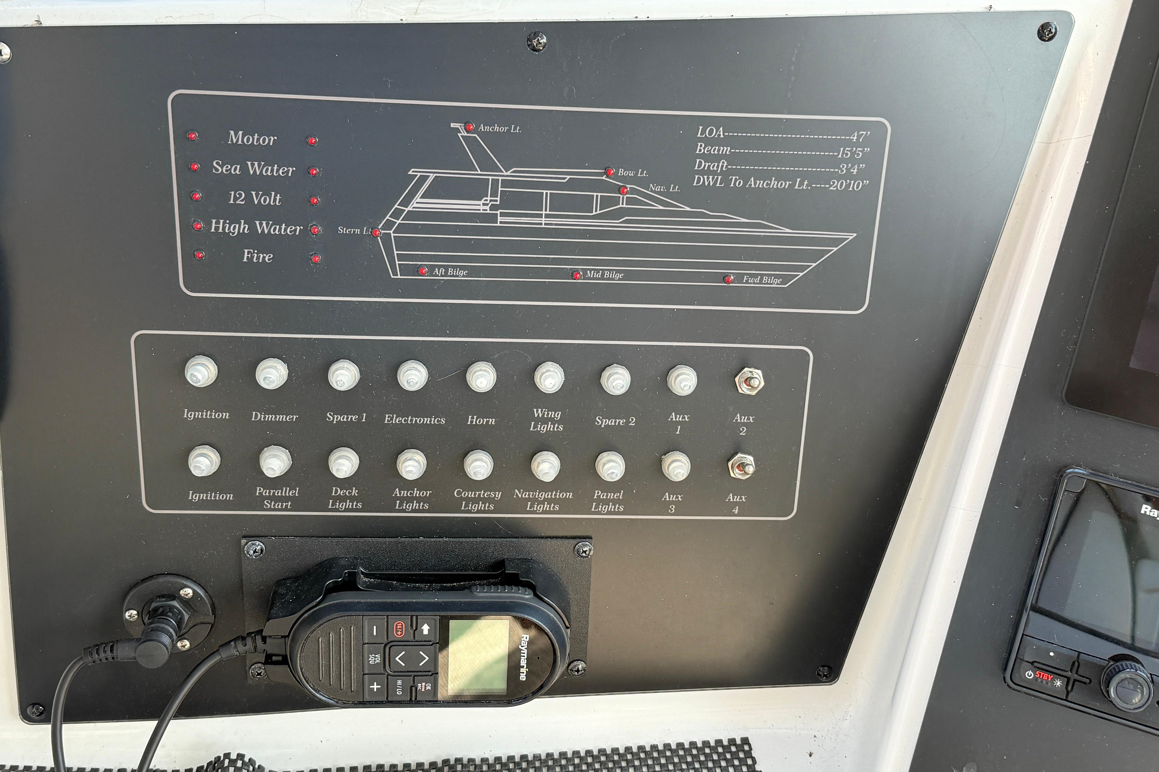Powered by twin diesel engines Caterpillar 3208s the Mainship 47 cruises comfortably with solid, economical performance.