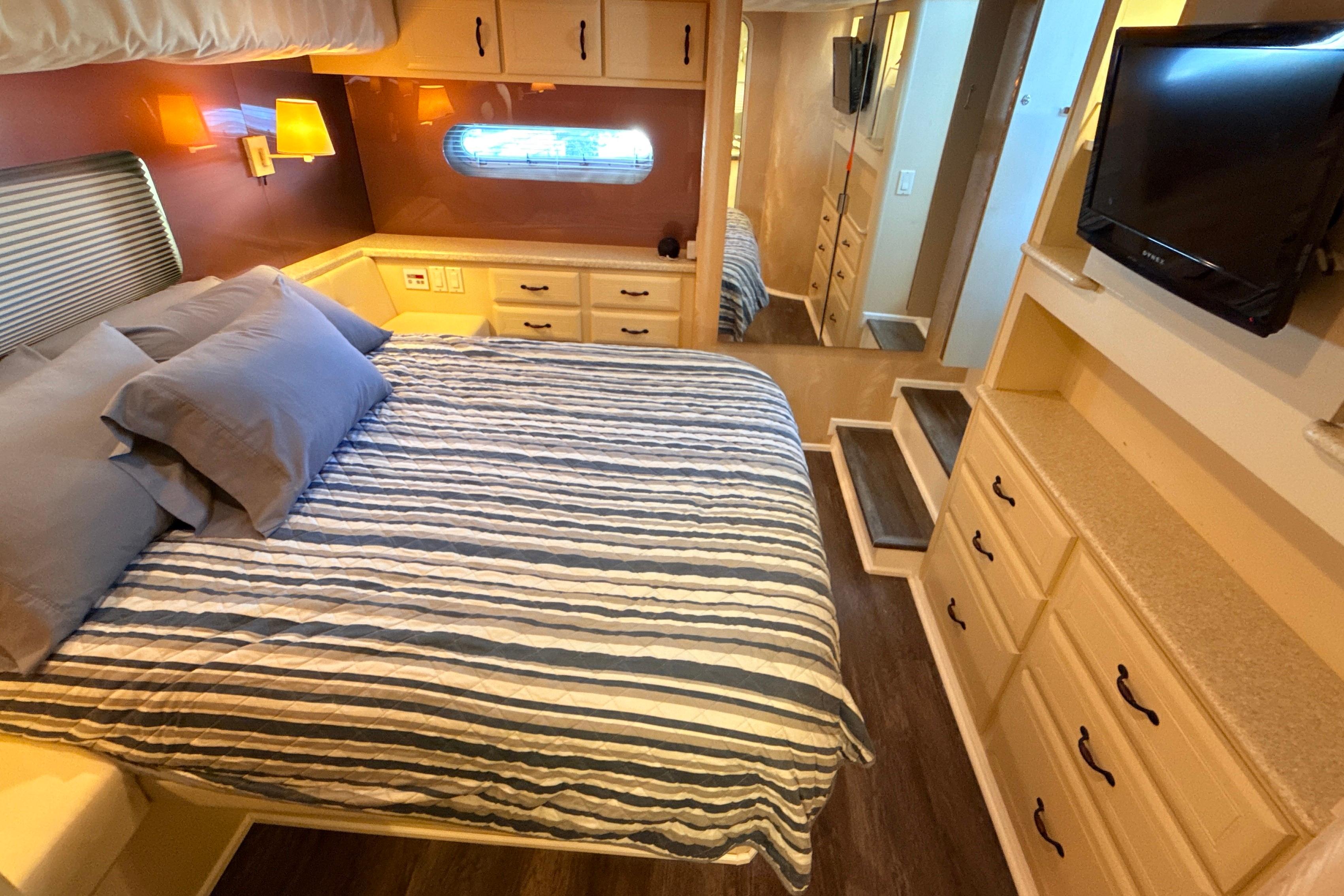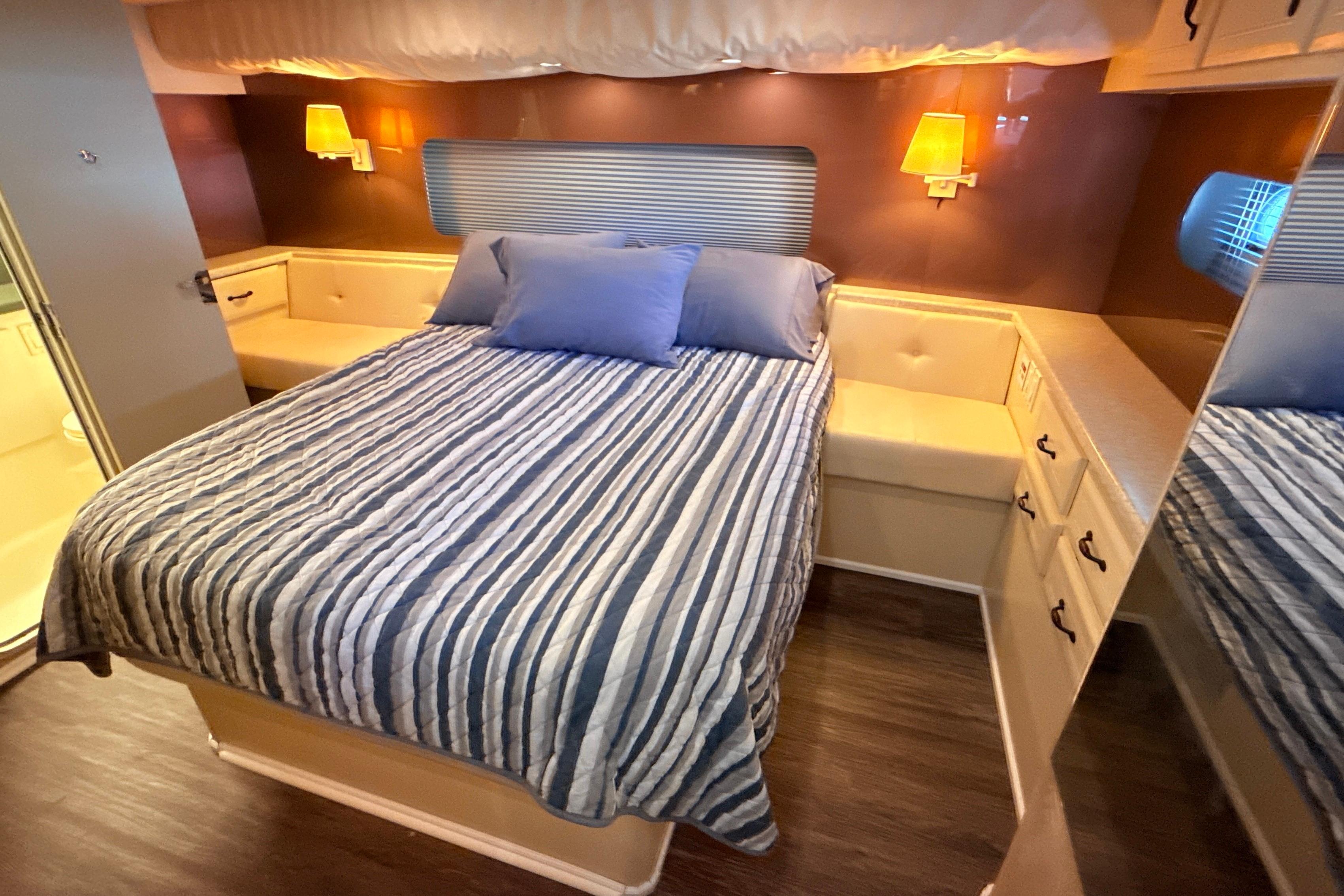 The forward cabin features a comfortable island berth, while the aft cabin includes a queen berth and private head perfect for guests or extended trips.