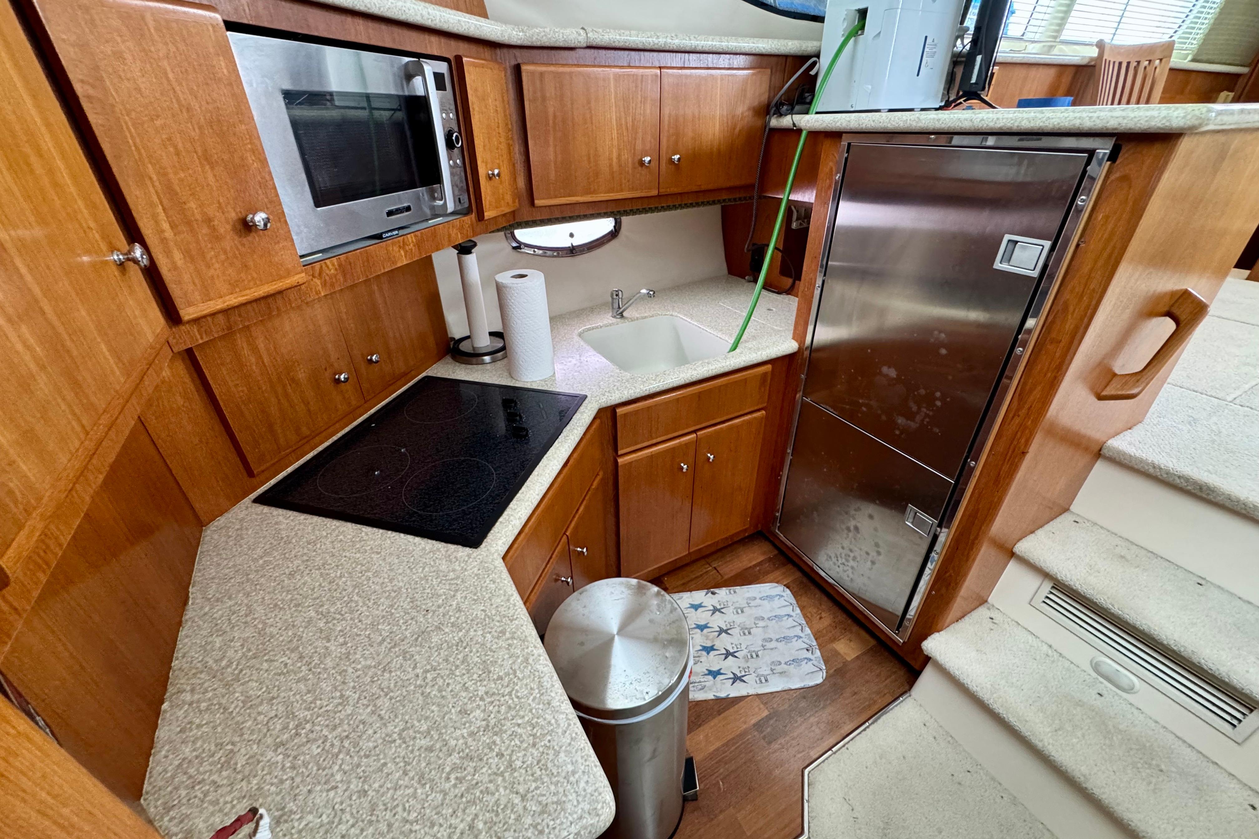 • Installed Dometic deck AC/DC refrigerator/freezer with thermal enclosure