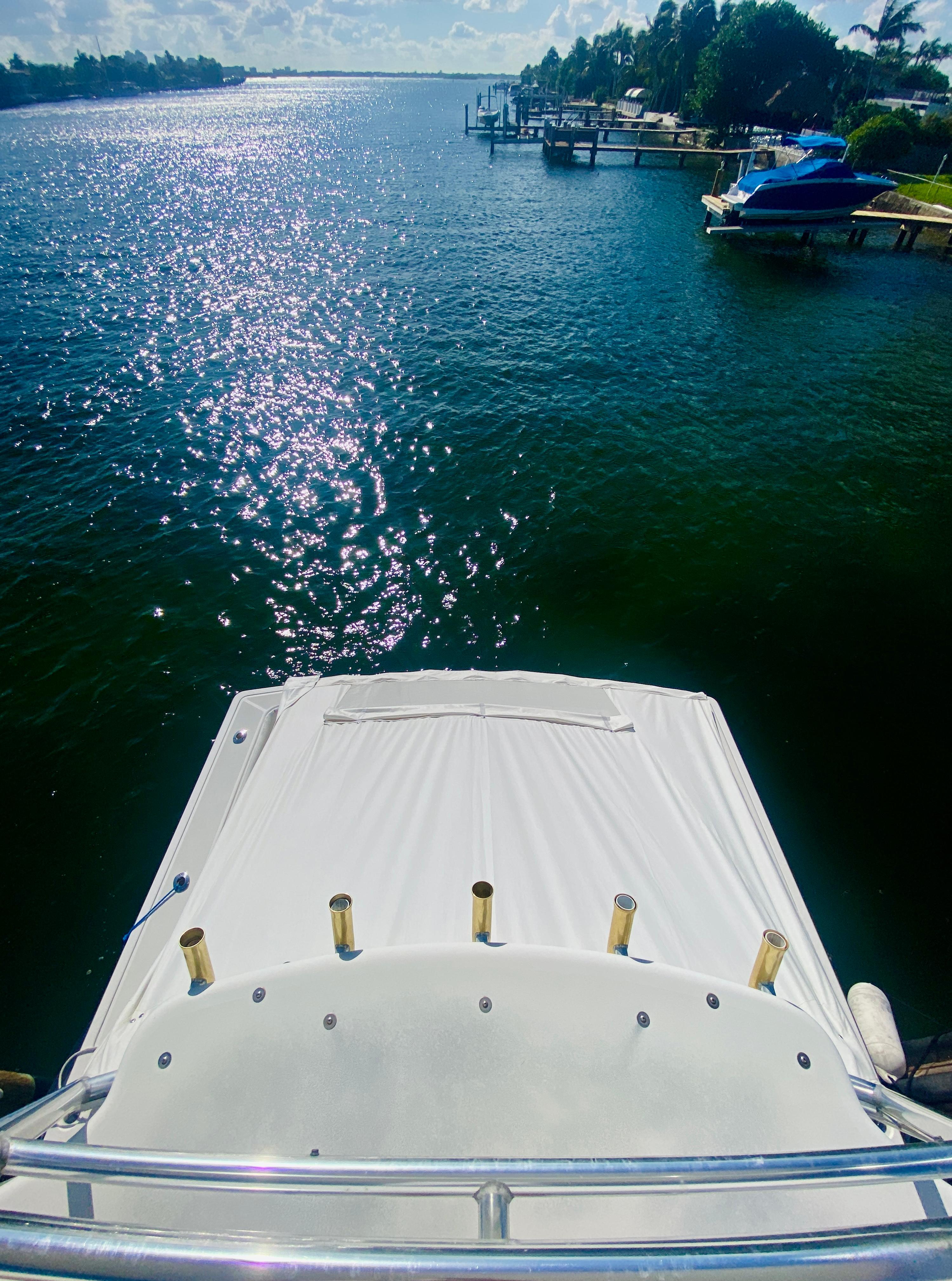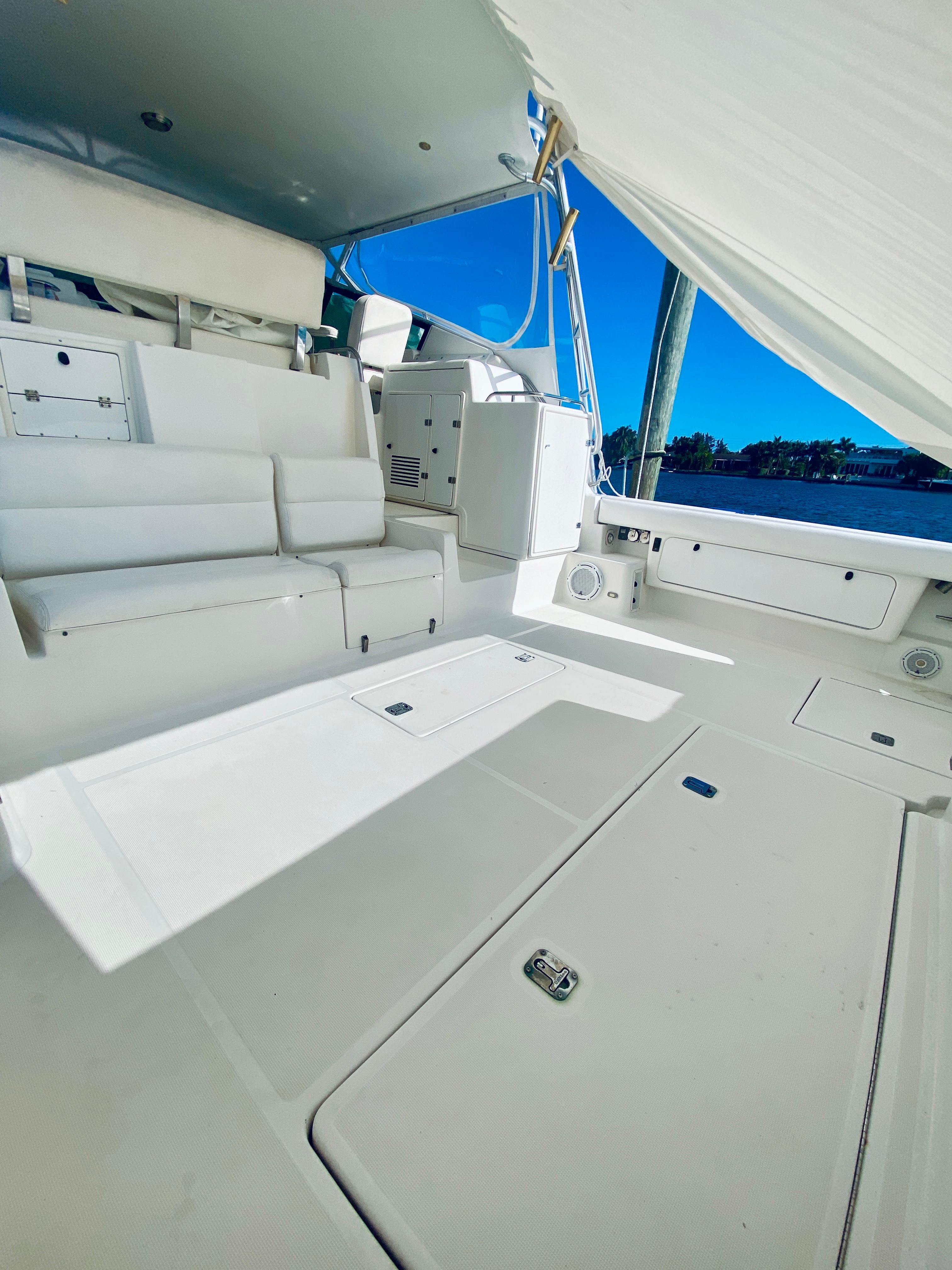 The 43 Open boats some incredible versatility and comfort. With immense freeboard for a 43′, the interior offers incredible comfort while the helm and cockpit areas provide the same for leisure and entertainment. With its well designed deep V constructed hull, the 43 Open offers all day stability whether fishing off shore or inshore cruising to your local sandbars. This vessel has outriggers that are stored off the boat as the owner does not use them.
