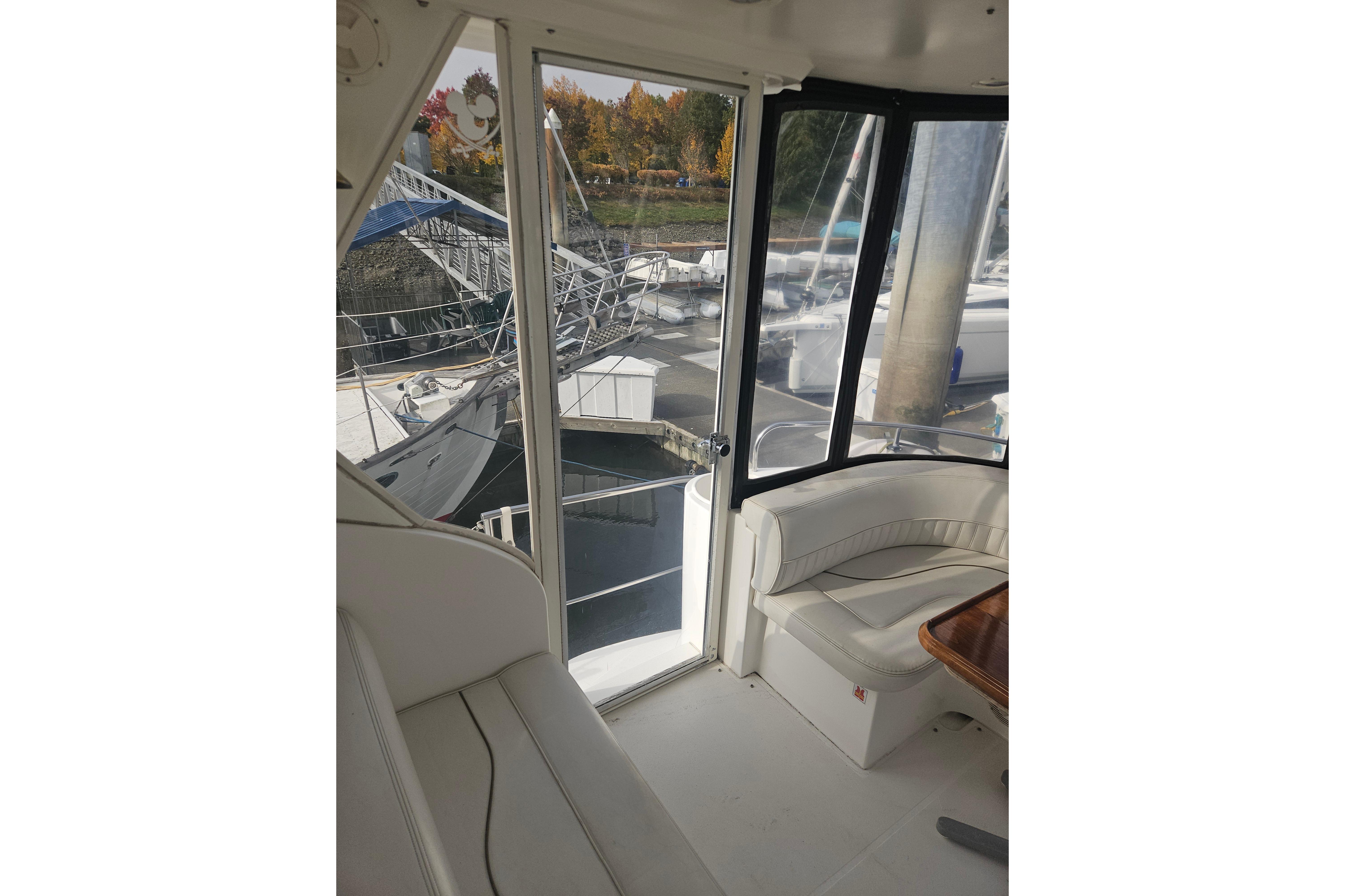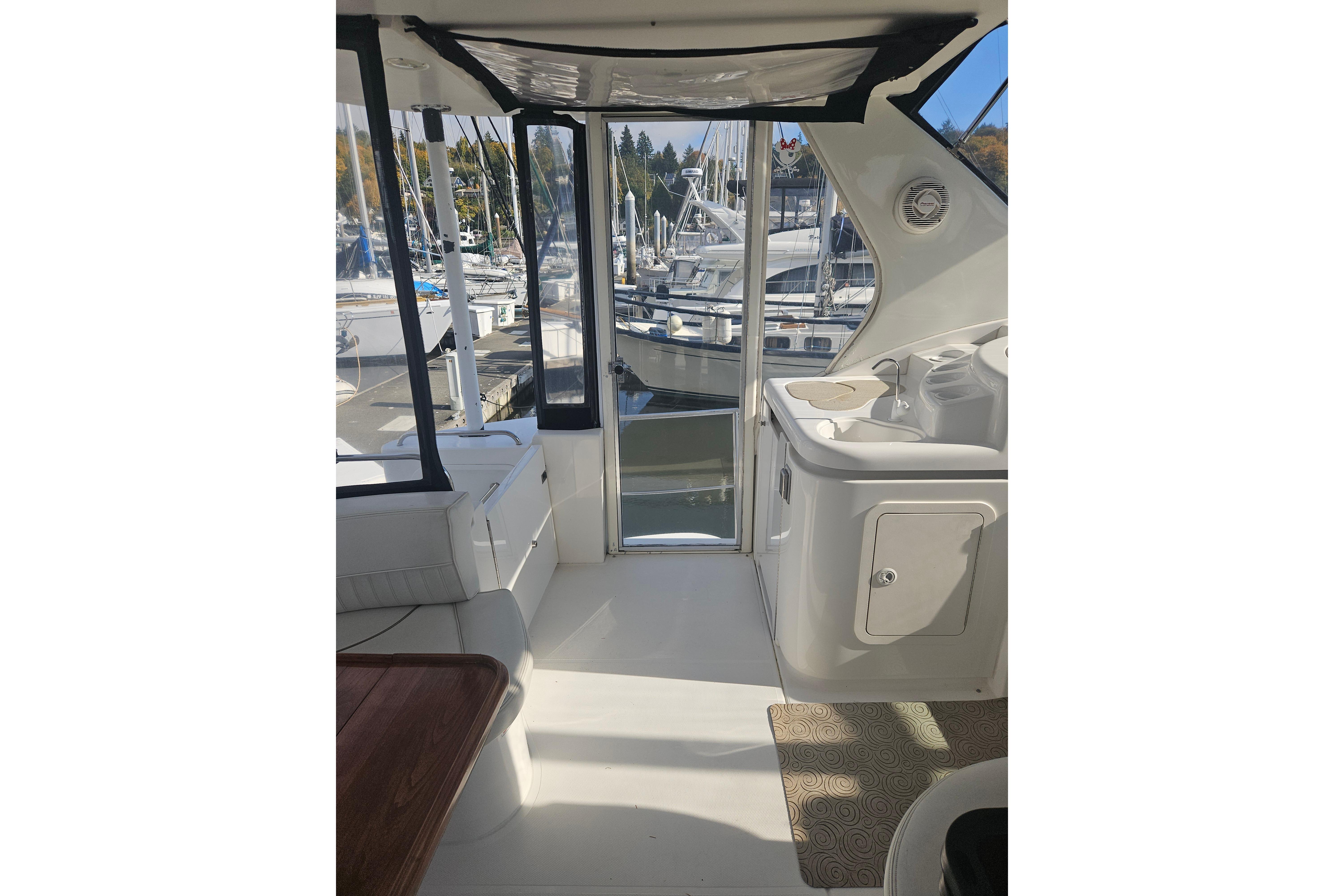 - Large cockpit with wet bar and lounge seating