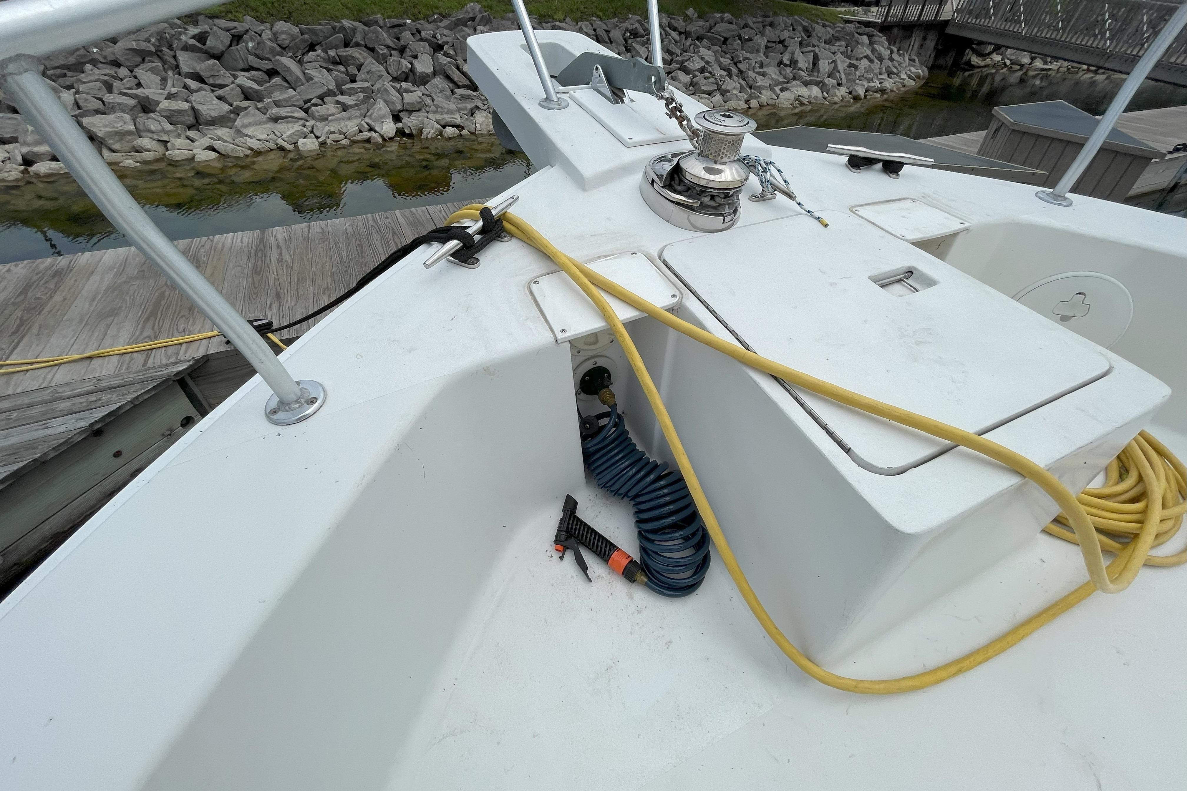 - Two-Stateroom Layout – Spacious master forward, guest cabin to port, and large head with separate shower.