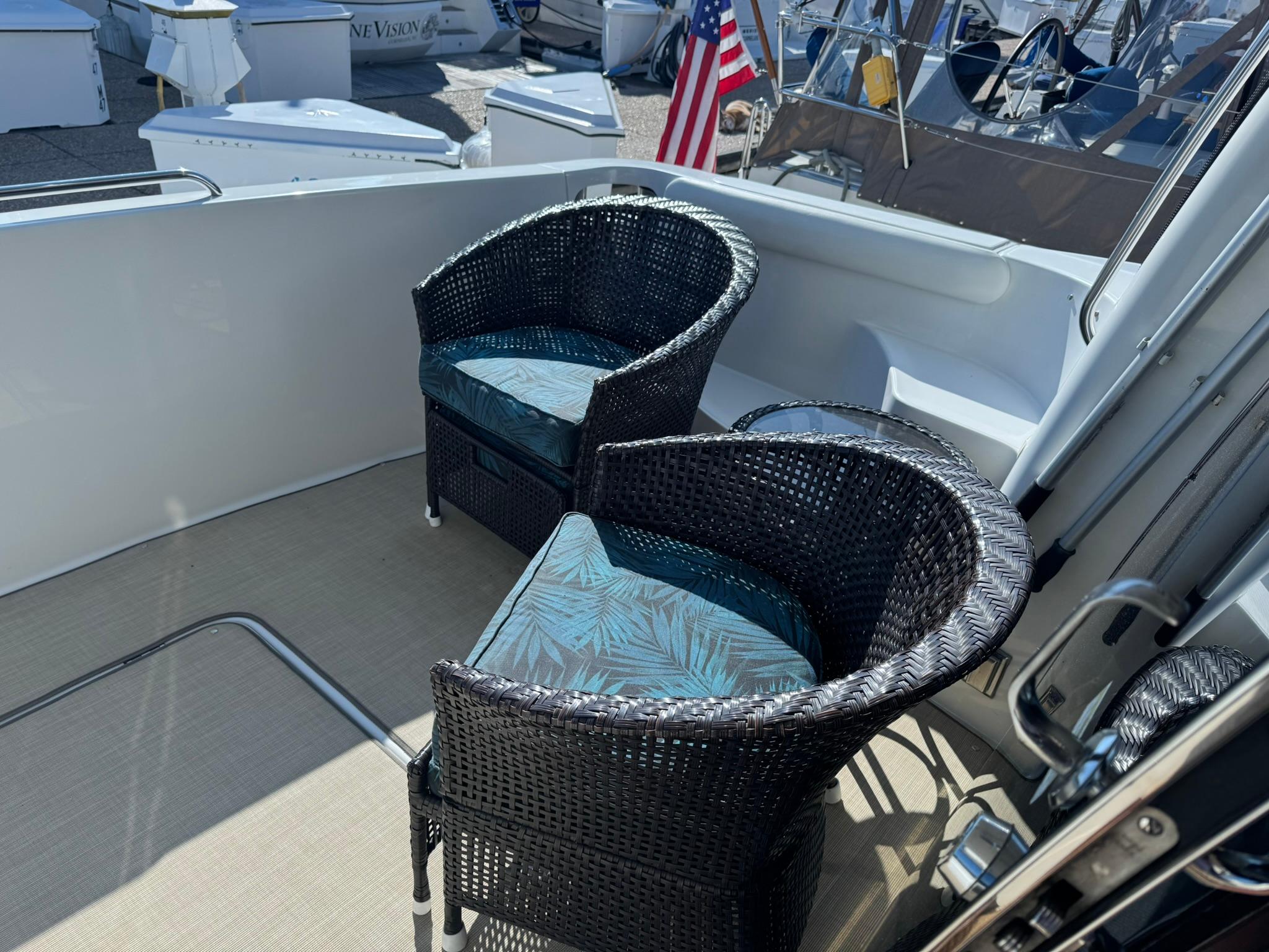 - Pilothouse with Powered Captain’s Chair Curved Seating Area and Table