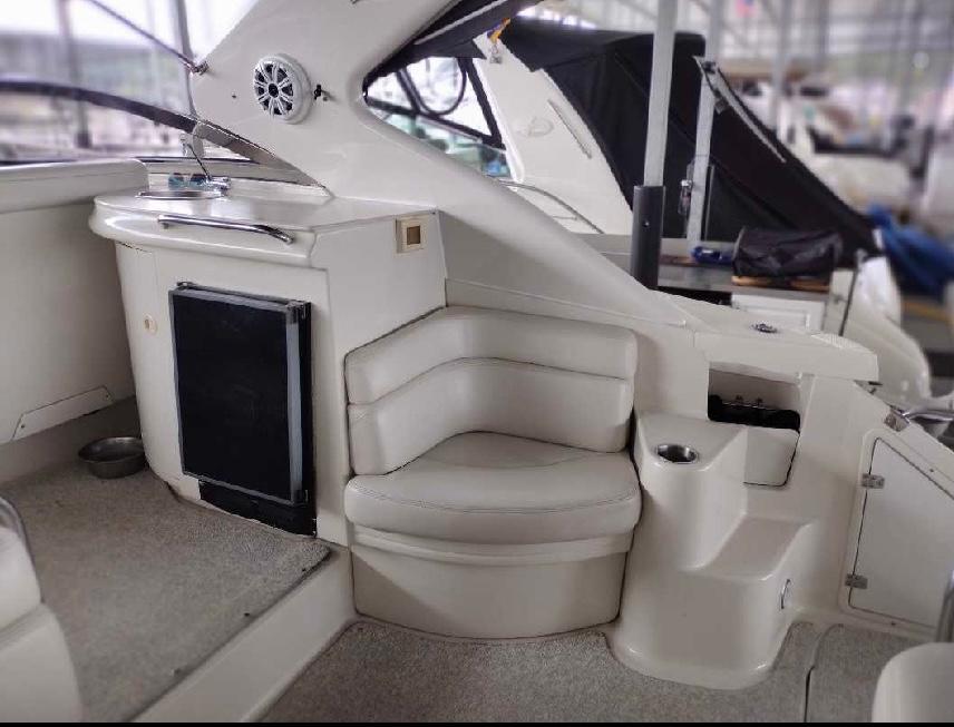 Fresh-water cruiser with high-style luxury features with a well-arranged cockpit and cabin. The cockpit offers ample seating, functional wetbar and an impressive custom stereo. Below in the cabin has beautiful wood accents, two fully private staterooms and two heads.