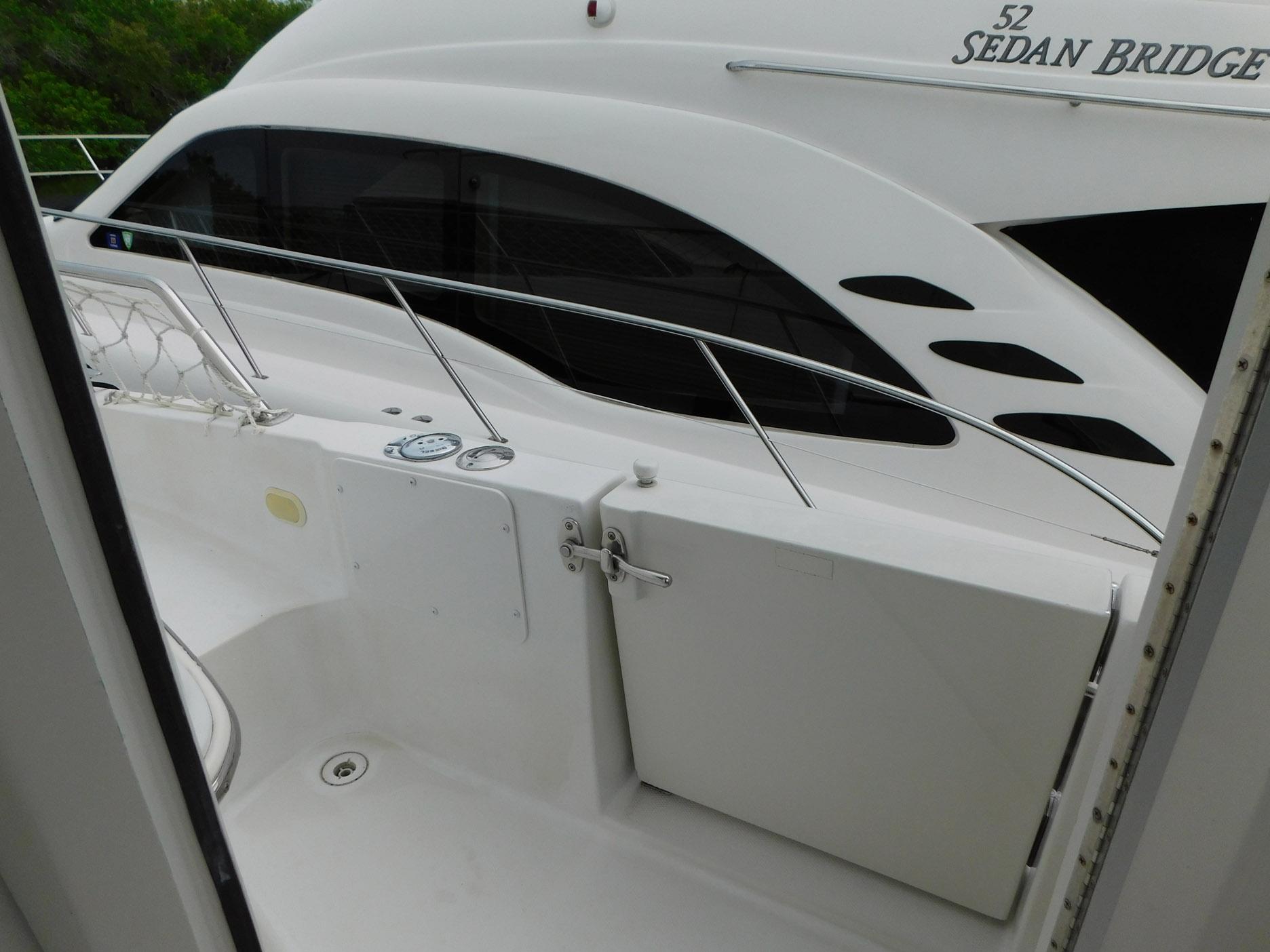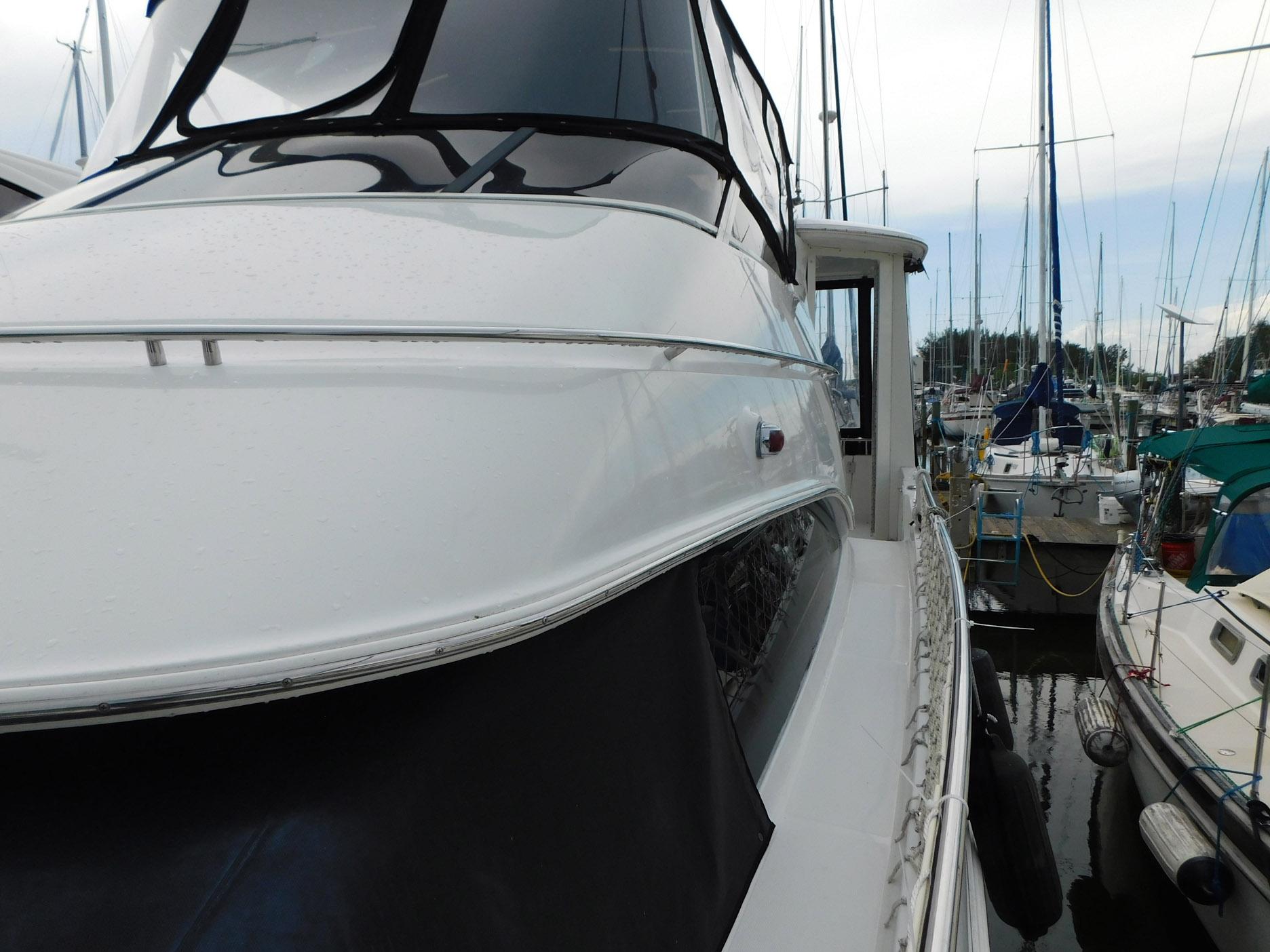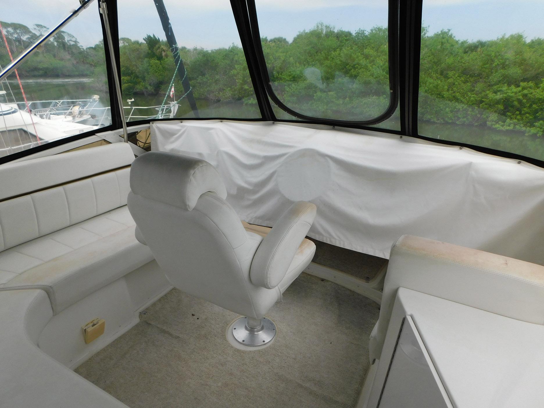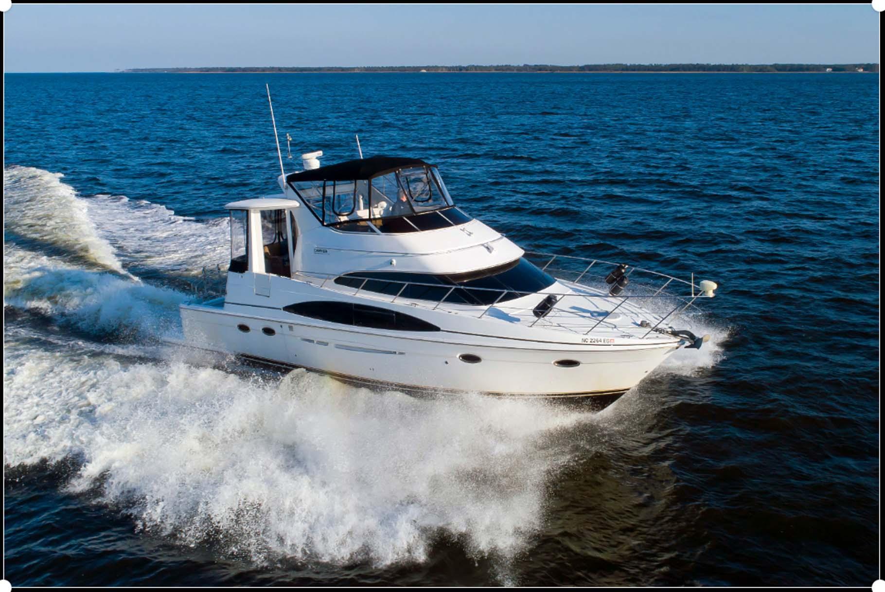 This Carver has thousands of dollars in upgrades from Bow and Stern thrusters to remote control System, called Yacht Controller that controls engine and thrusters, just to name a few. The Carver 444 Cockpit Motor Yacht with all the luxury and spaciousness of an aft cabin! Contemporary styling and a well-laid-out cabin, along with a cockpit featuring Master Cabin slider access, enhance the Carver 444’s livability. Carver’s signature raised walkaround deck design allows for a wider, much roomier cabin than other yachts this size. The full-beam salon, galley, and dining area combine to form a spacious and elegant “great room” for entertaining. Sleeping accommodations feature the luxury of two private staterooms, each with an en-suite head compartment and stall shower. The completely enclosed aft deck is spacious for any custom seating arrangement. It features multiple storage lockers, molded stairways, and wing doors to access the wide port and starboard walkaround side decks. The spacious cockpit provides private access to the aft stateroom, dual molded-step access to the enclosed aft deck, easy boarding, and transom door access to the swim platform, with davits allowing for the storage and retrieval of water toys. Of course, the cockpit is a great spot to fish for sport or dinner! Plenty of seating on the flybridge with a full enclosure that keeps the captain dry and in the social mix. The well-engineered engine room has space to maintain the twin 370HP Cummins diesels as well as the l0Kw generator. Four-zone AC/Heat completes the cruising comfort along with a dedicated air conditioner for the upper and aft decks of this beautiful Carver 44. A must see!!!