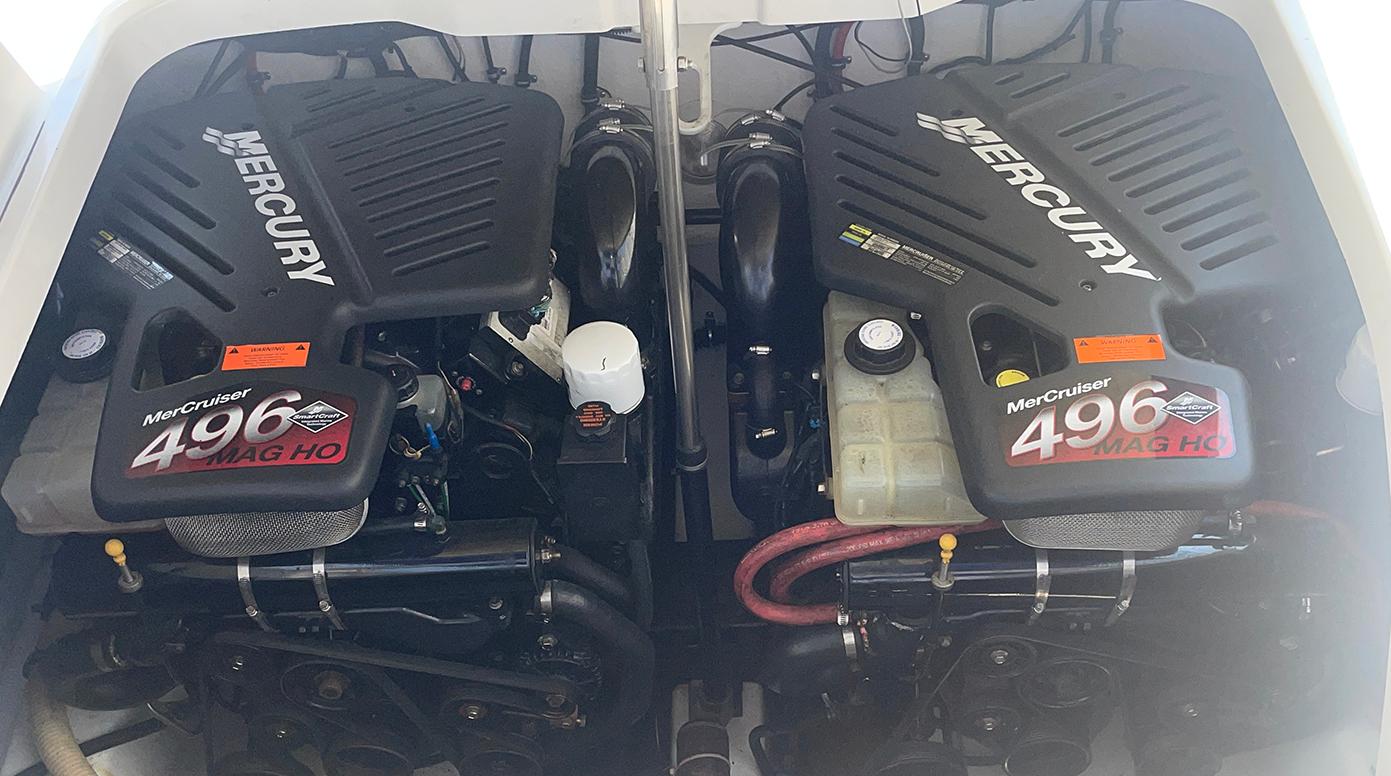 Formula brought to our Performance Trials in Fort Myers, Fla., a Super Sport equipped with a pair of 425-hp MerCruiser 496 Mag HO engines. At first glance it doesn’t seem like a lot of power for a boat weighing nearly 7 tons, but the engine package was a strong performer in the 37-footer.