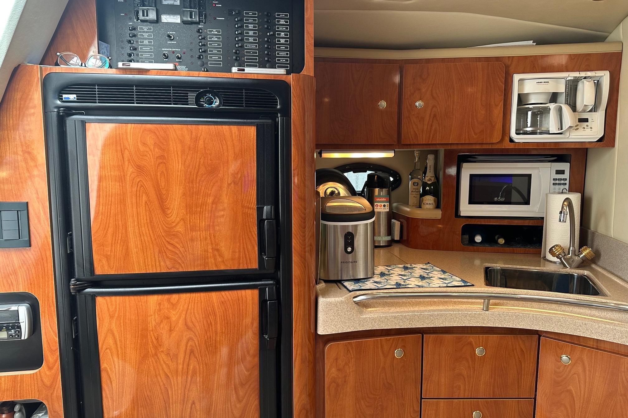 Introducing the 2004 Larson 370 Motor Yacht, a stunning vessel that combines elegance and performance. With a sleek modified vee hull crafted from durable fiberglass, this yacht promises a smooth and stable ride on the water. Powered by twin Volvo 8.1 inboard engines, each delivering an impressive 370 horsepower, it ensures exhilarating cruising experiences with a total of 740 horsepower at your command. Designed for comfort and functionality, this yacht features a well-appointed head, perfect for day trips or extended outings. The thoughtful layout enhances the onboard experience, making it ideal for entertaining guests or enjoying serene moments on the water. With only 400 hours on the engines, this used motor yacht is ready for new adventures. Experience the perfect blend of luxury and performance with the Larson 370, where every journey becomes a memorable escape.
