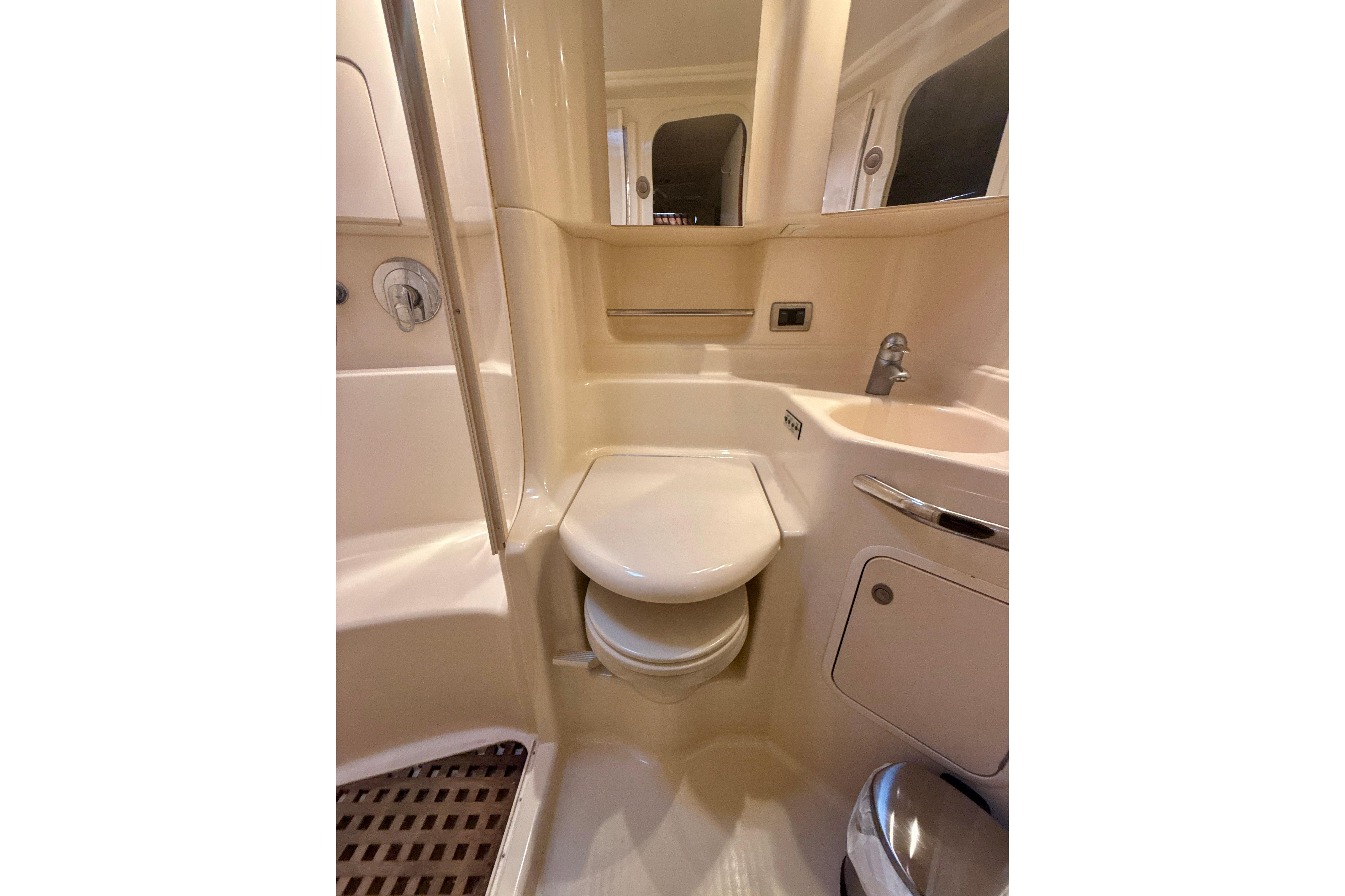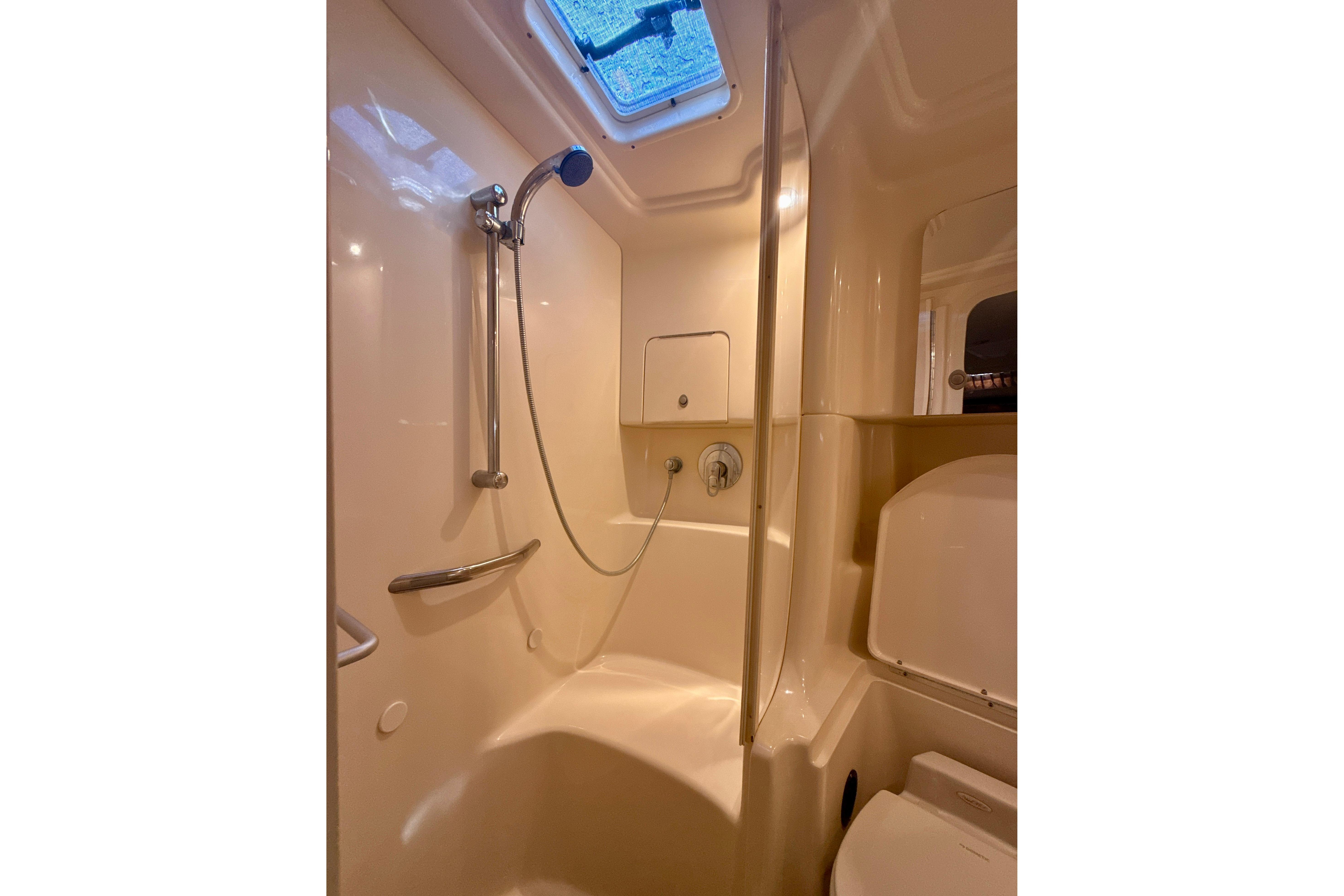 Off The Air is powered with 636 hour twin Mercruiser 8.1 Horizon’s packing 740 total horsepower. Twin 137 gallon fuel tanks and a Kohler generator with 552 hours gives you the freedom for weekend trips and overnight stays.