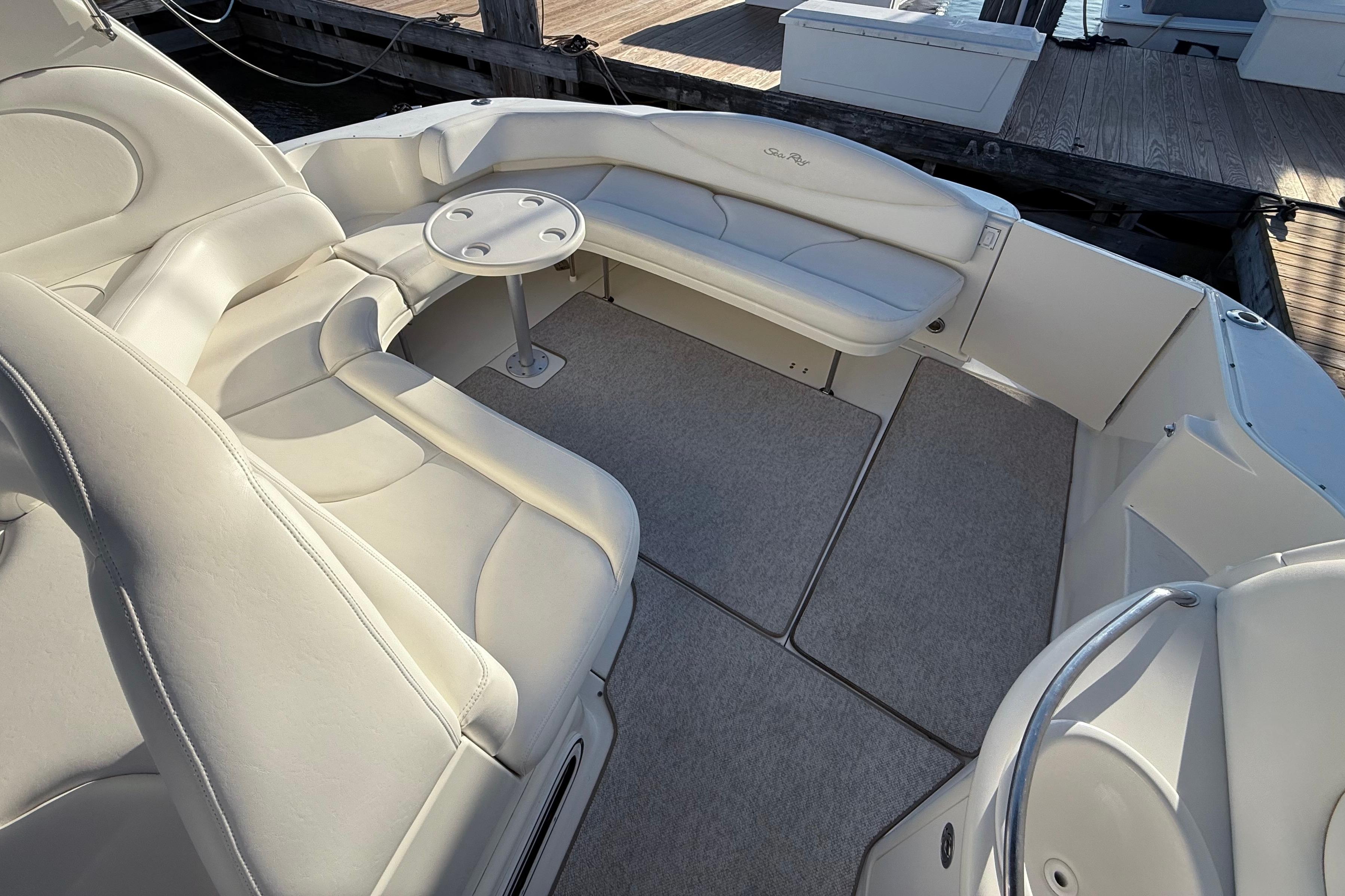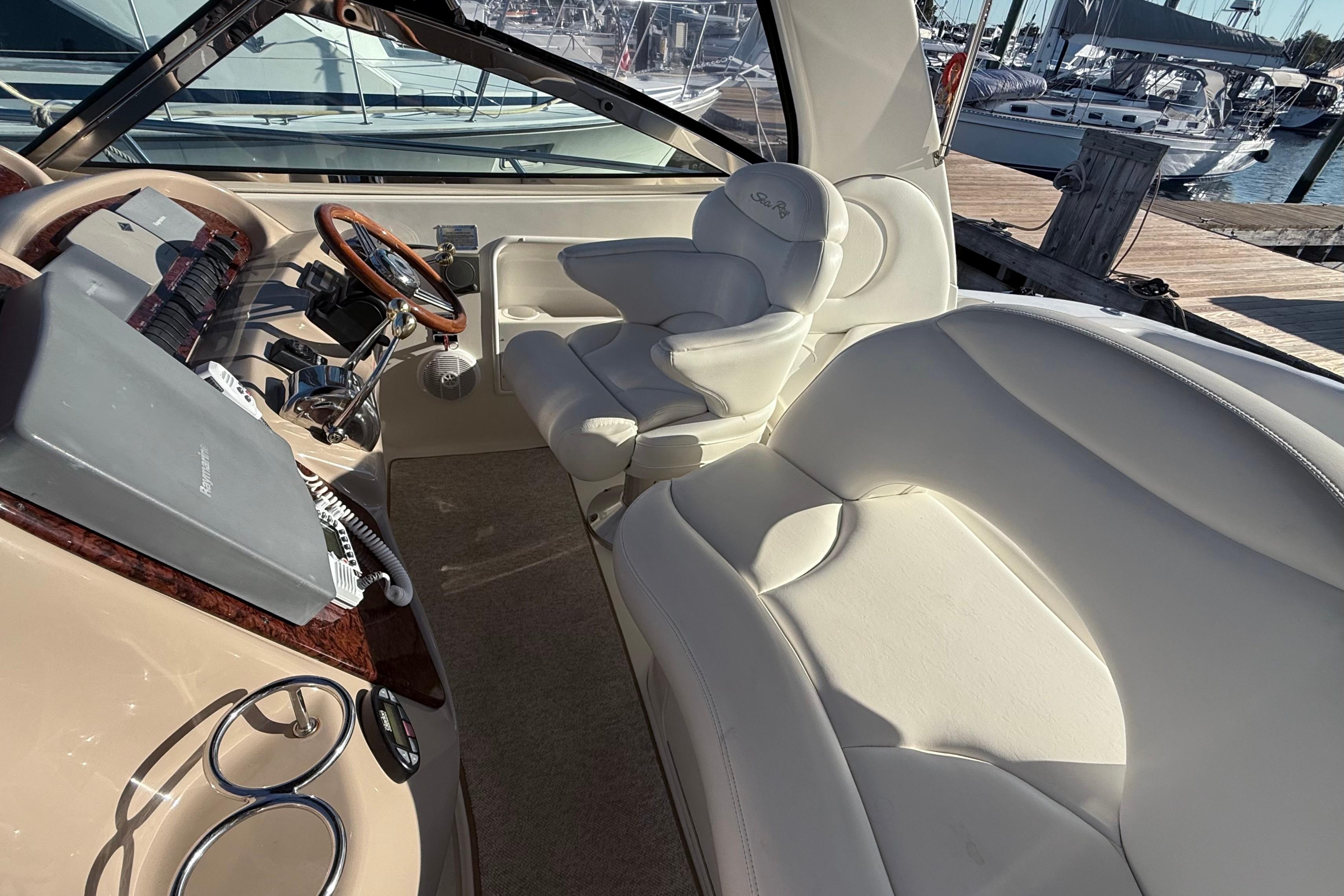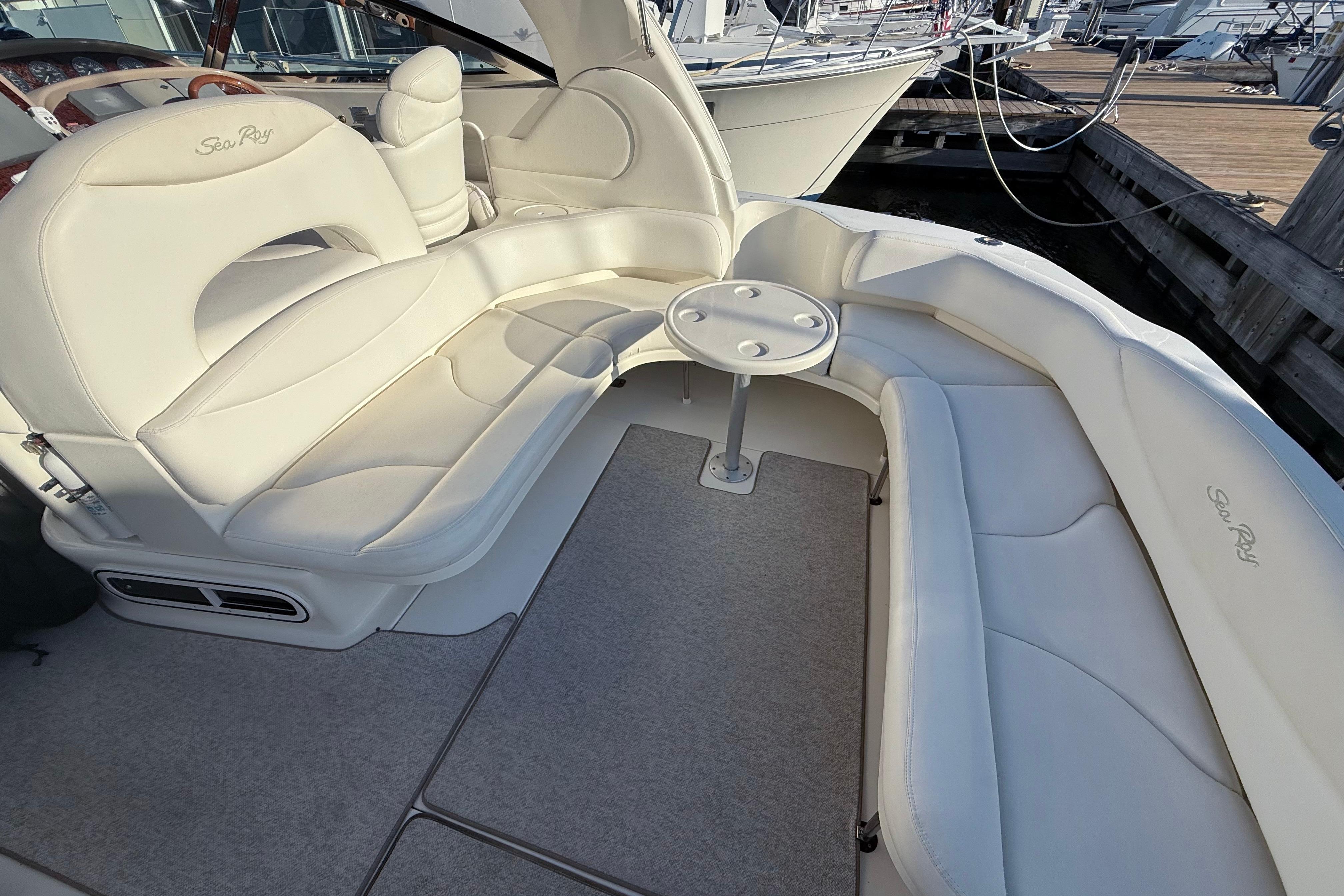 The 380 Sundancer is destined to attract attention wherever she goes. She’s a grand example of the latest Sea Ray innovations. With a deep-V hull and the smooth power of twin 8.1 S Horizon MerCruiser V-drive engines, her superb seaworthiness is sure to please the most demanding owner. Her spacious cabin with sleeping accommodations for many makes the 380 Sundancer perfect for extended pleasure cruises with family and friends.