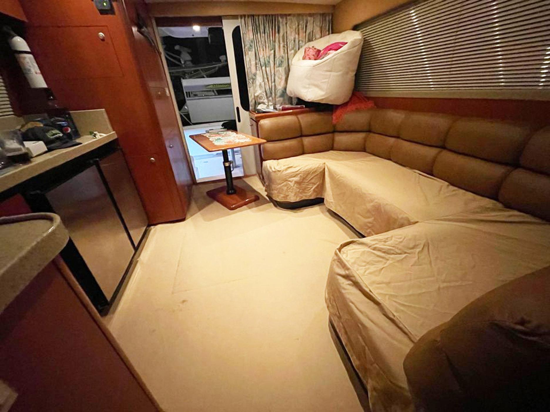 One of the top-selling small convertibles ever produced, the breakthrough feature of the Luhrs 36 was her molded flybridge steps in the starboard corner of the cockpit. Rather than climb a near-vertical ladder, a staircase made bridge access easy and safe—an innovative concept soon picked up by other convertible manufacturers. Built on a solid fiberglass hull with a wide 13’10” beam and flared bow, the 36 boasts a very spacious interior. The two-stateroom, galley-up floorplan is arranged with a queen berth forward and an over under bunk in the guest cabin to starboard. A separate shower stall is found in the head, and a U-Shaped settee/dinette is to port in the spacious salon. The engine room is accessed through a hatch in the salon sole.