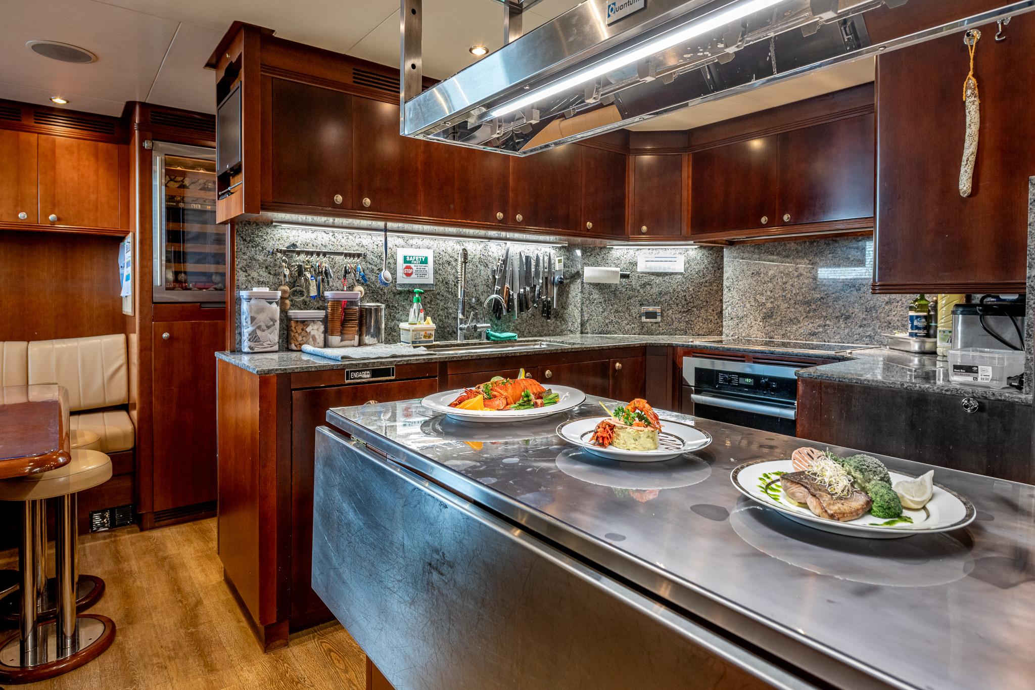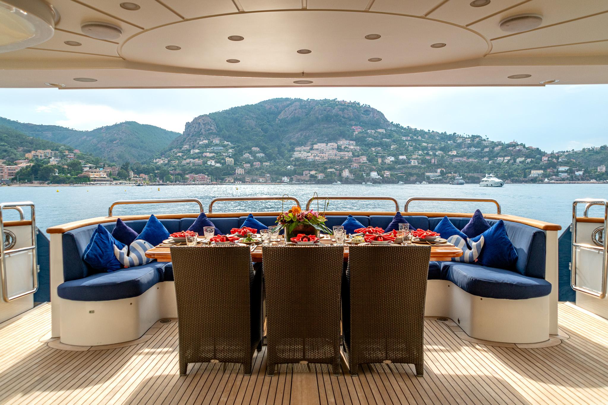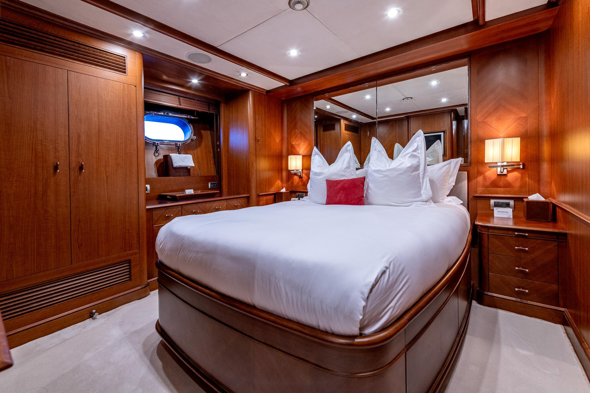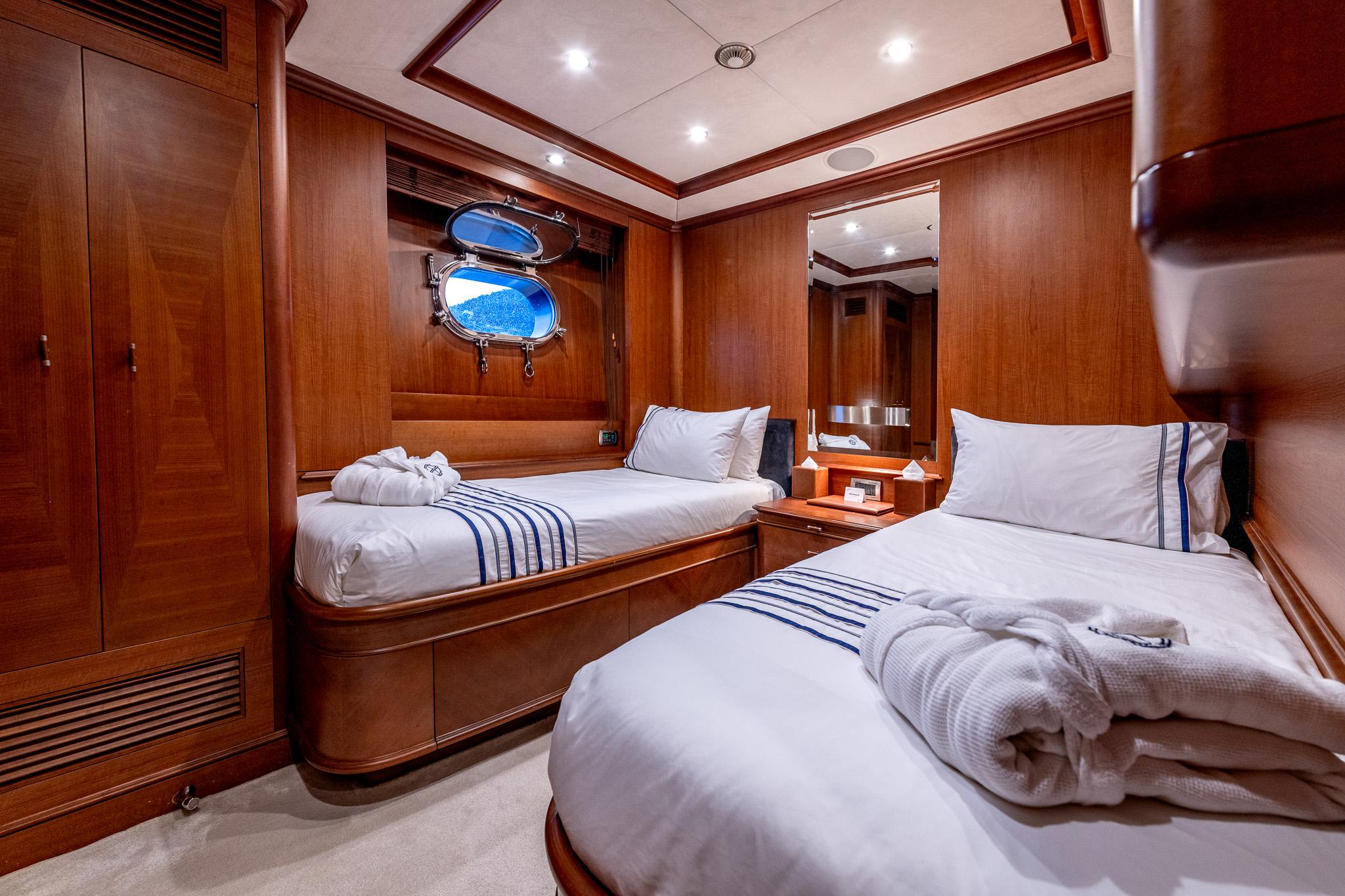 Accommodation for ~10 guests in five luxurious cabins plus separate crew quarters, delivering comfort and privacy.