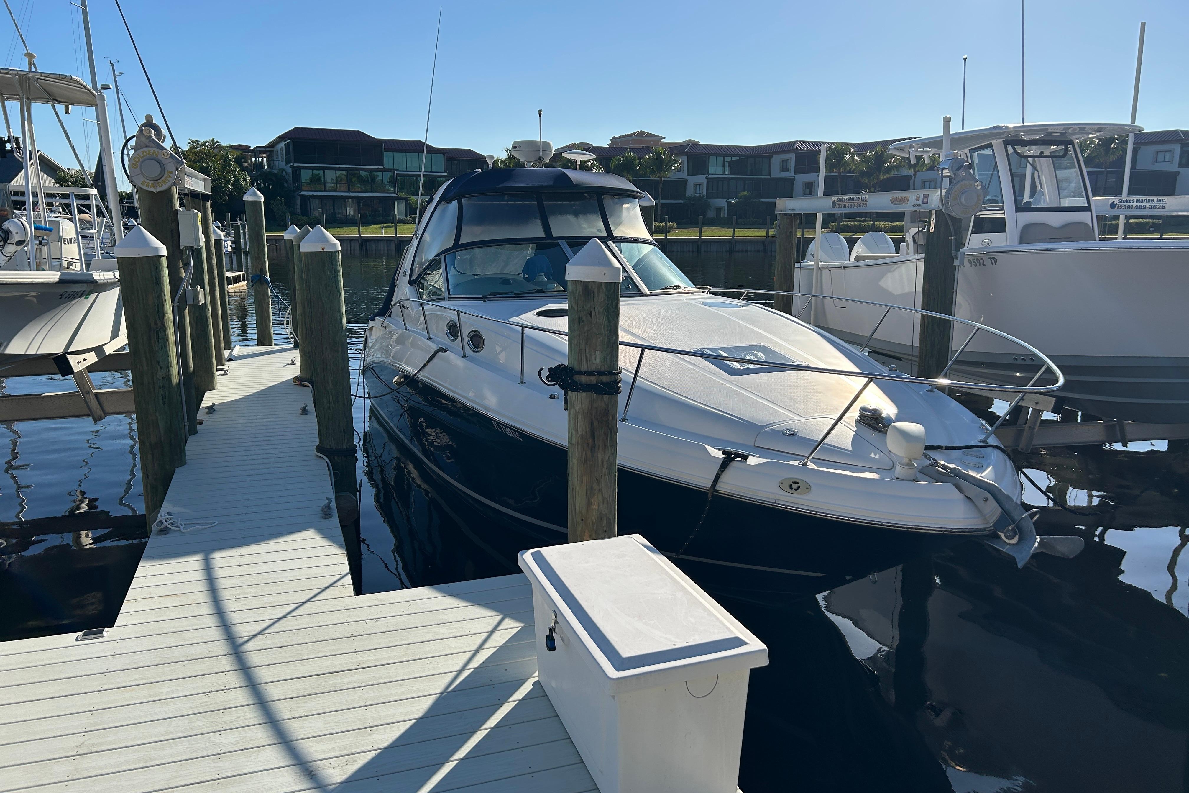 There’s nothing quite like the exhilarating profile of this sleek 320 Sundancer. Its dramatic lines and bold colors make everything else look like it’s sitting still. Exciting features include cockpit wet bar with Corian counter, extra-wide bench-style helm seating with two flip-up thigh-rise bolsters, optional underwater swim platform lighting, premium cabin surround sound, and lots more.