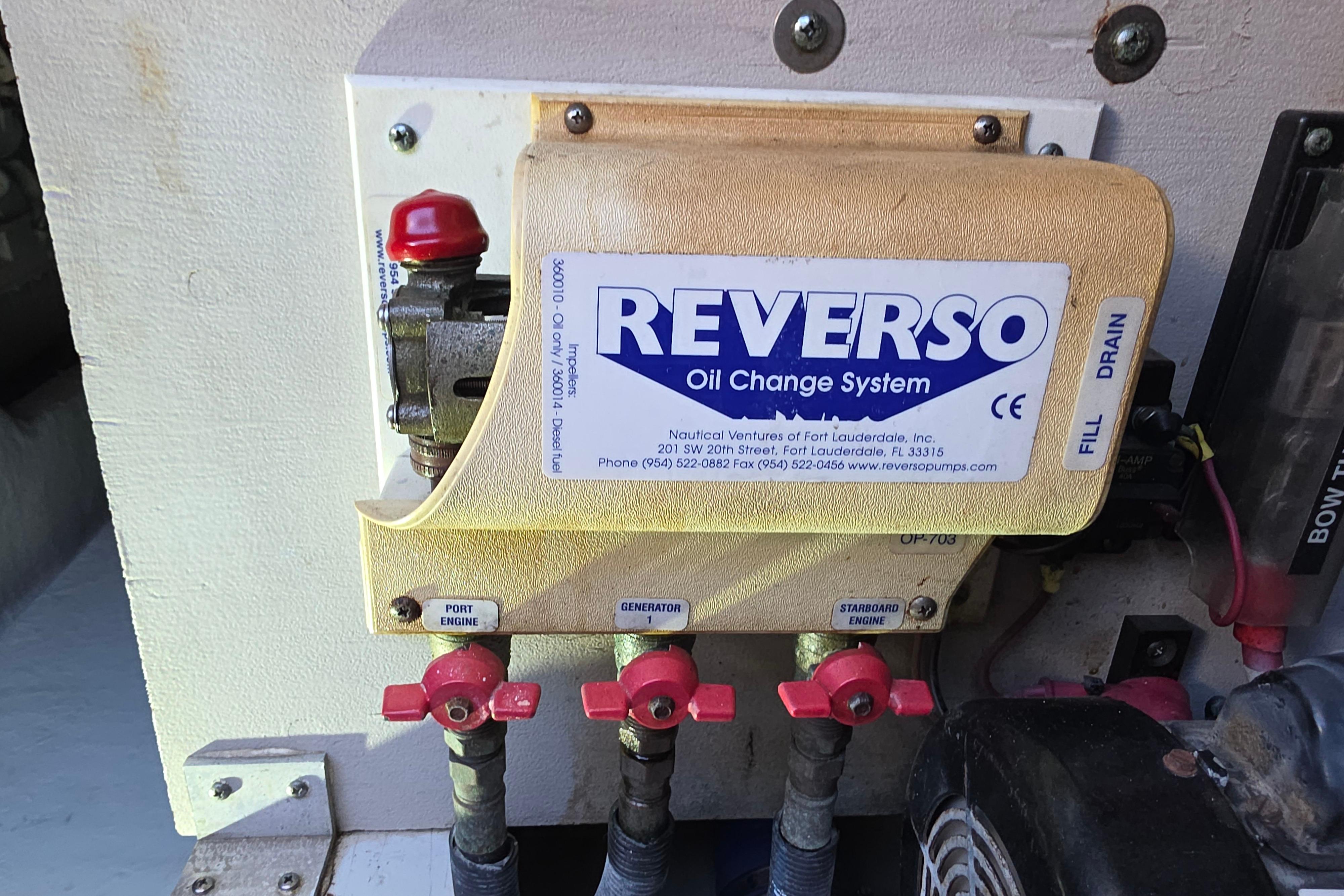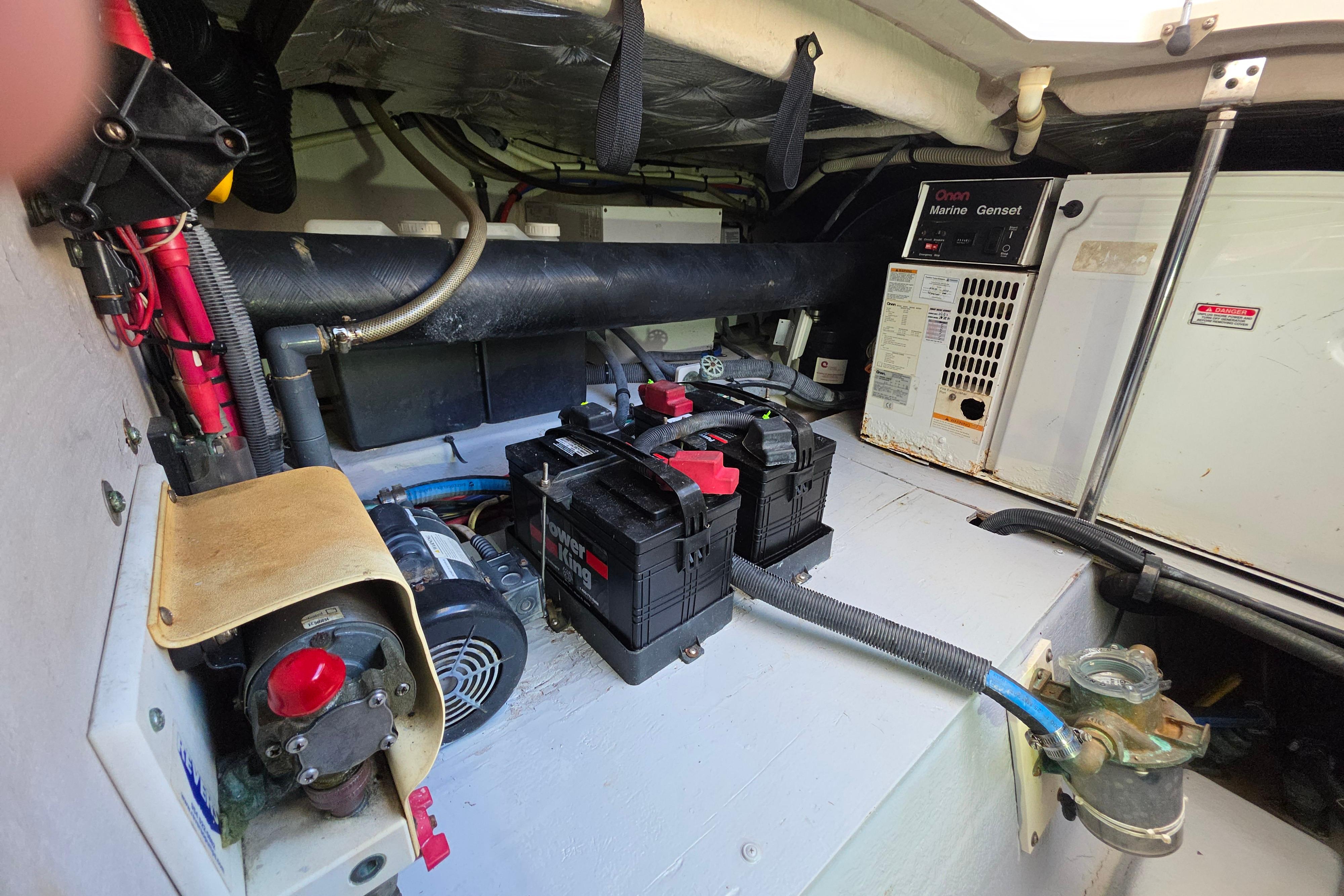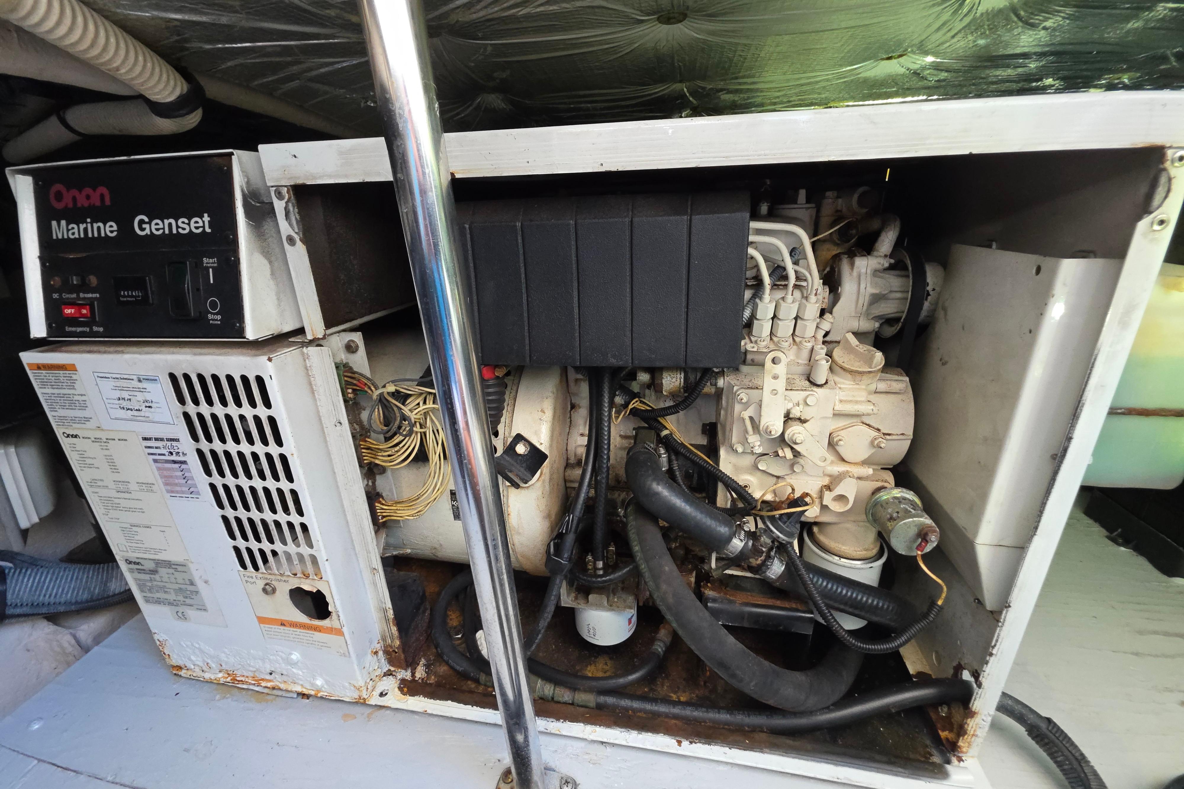 Even the engine room tells a story of care and pride. It is exceptionally clean and thoughtfully laid out, providing ample space for easy checks and maintenance. The powerful twin Cummins QSC-500’s are up to date on all service and run flawlessly. The Onan genset is also easily accessible for peace of mind.