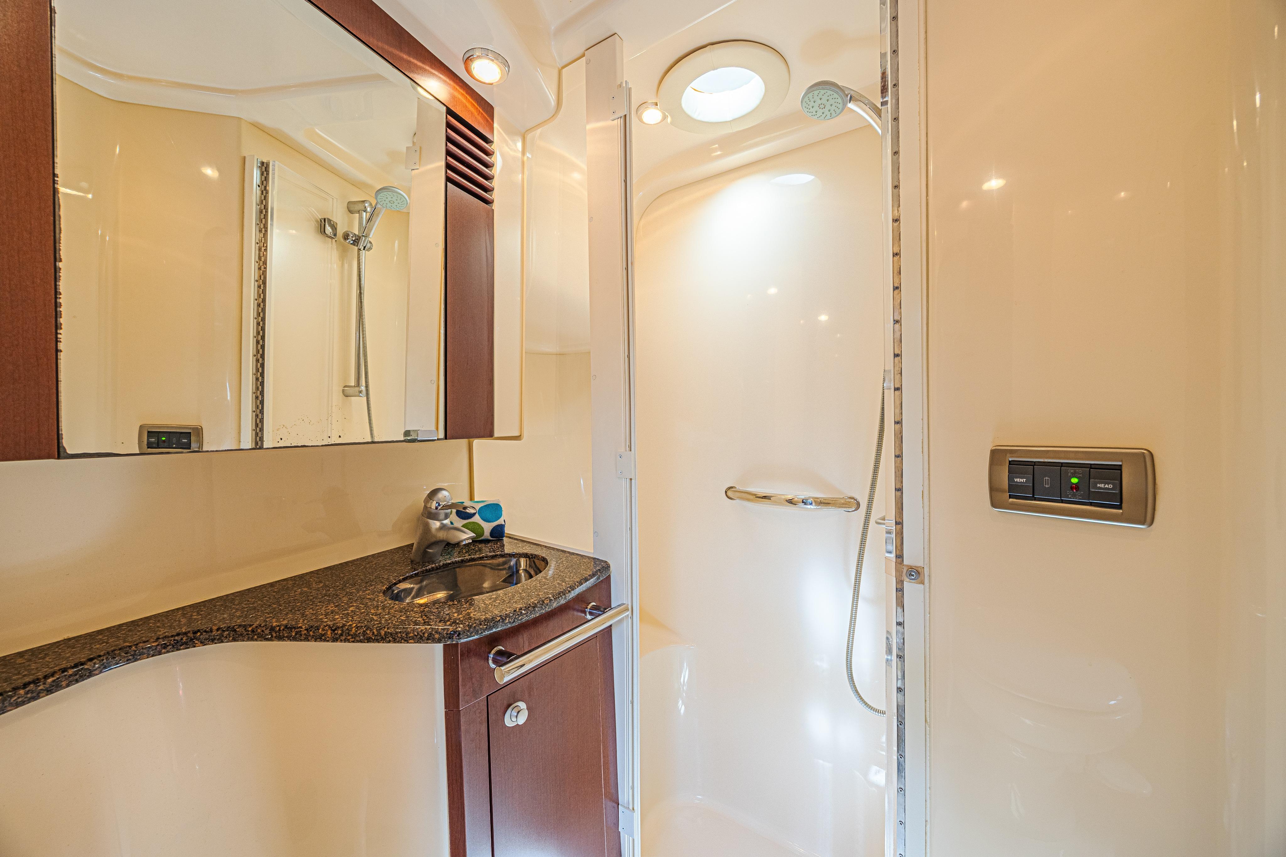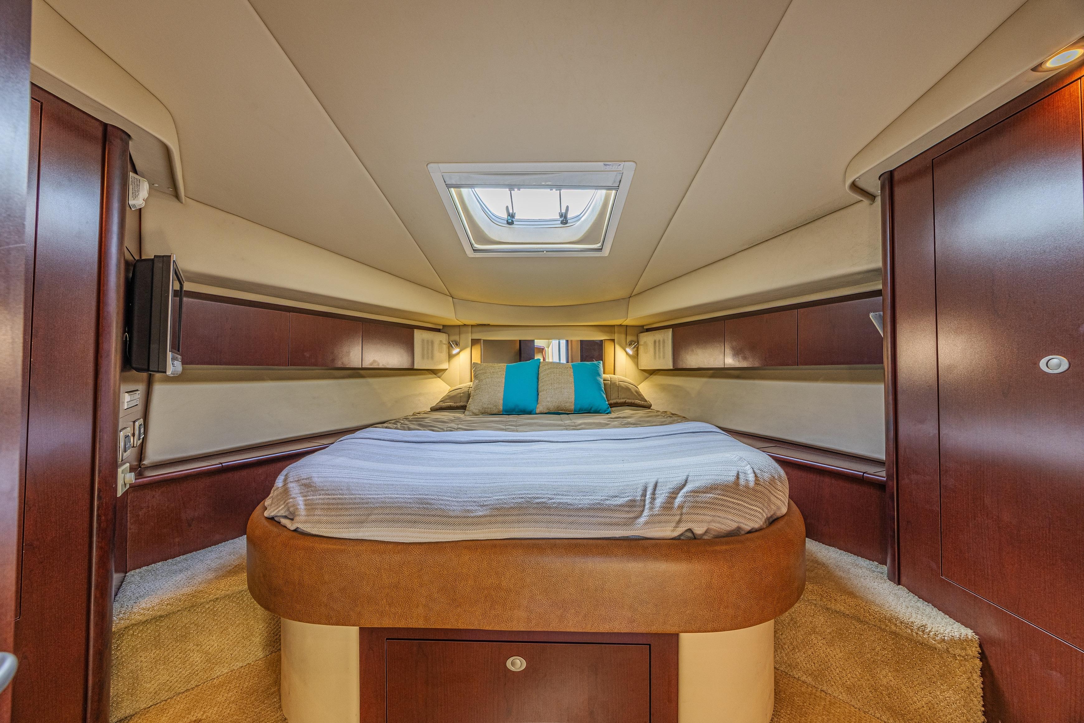 Enjoy the sunshine and fresh air with multiple entertaining spaces. The aft cockpit offers a comfortable sofa and plenty of room for additional seating. The foredeck features a large sun pad, perfect for soaking up the rays. Up on the flybridge, you’ll find a large U-shaped sofa and table—the ideal spot for sundowners. Maneuvering is a pleasure from the large, well-designed helm with two captain’s chairs and excellent visibility all around.