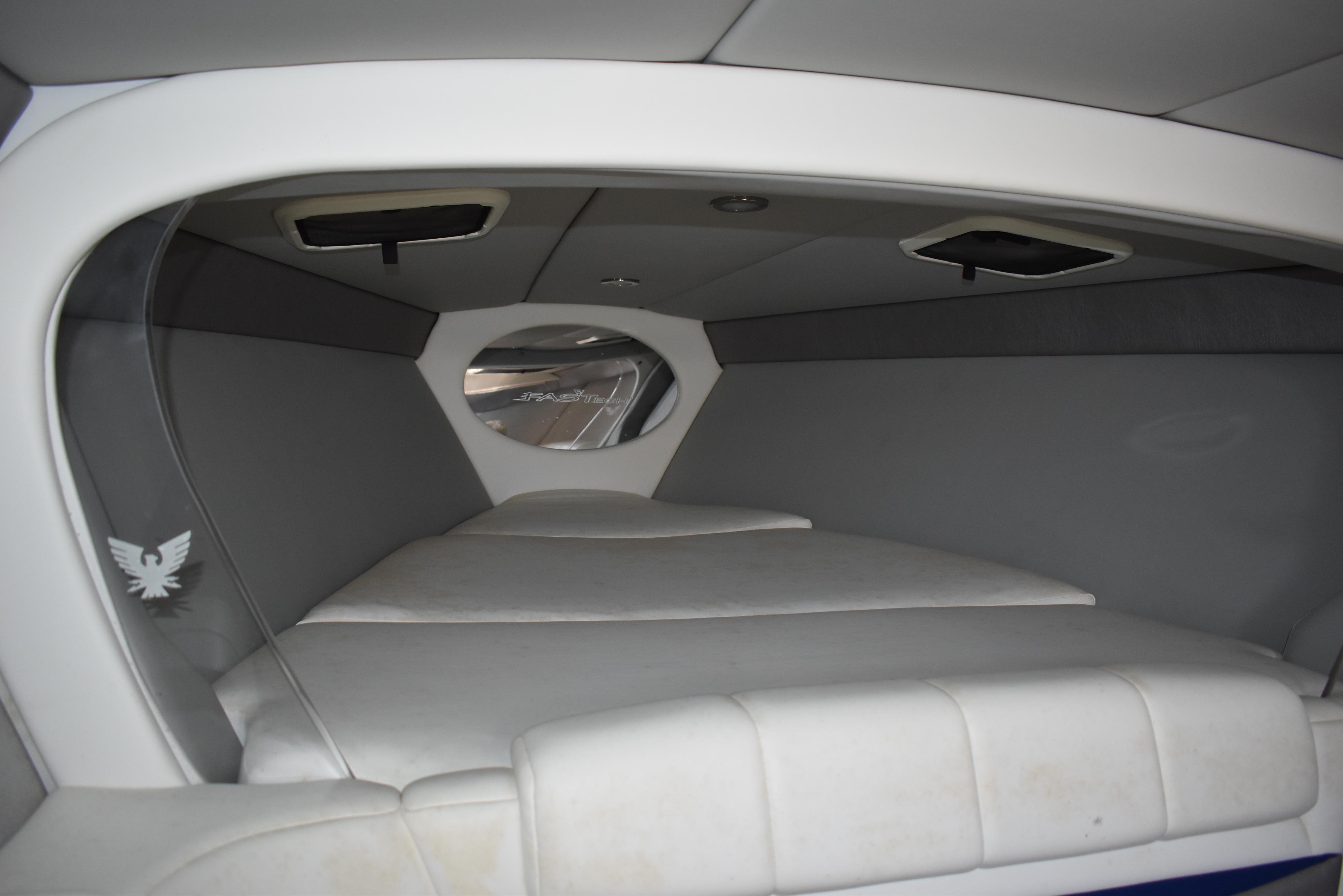 - White Ultra-Leather Cabin Seating – Luxurious and comfortable seating for relaxing after a day of performance cruising.