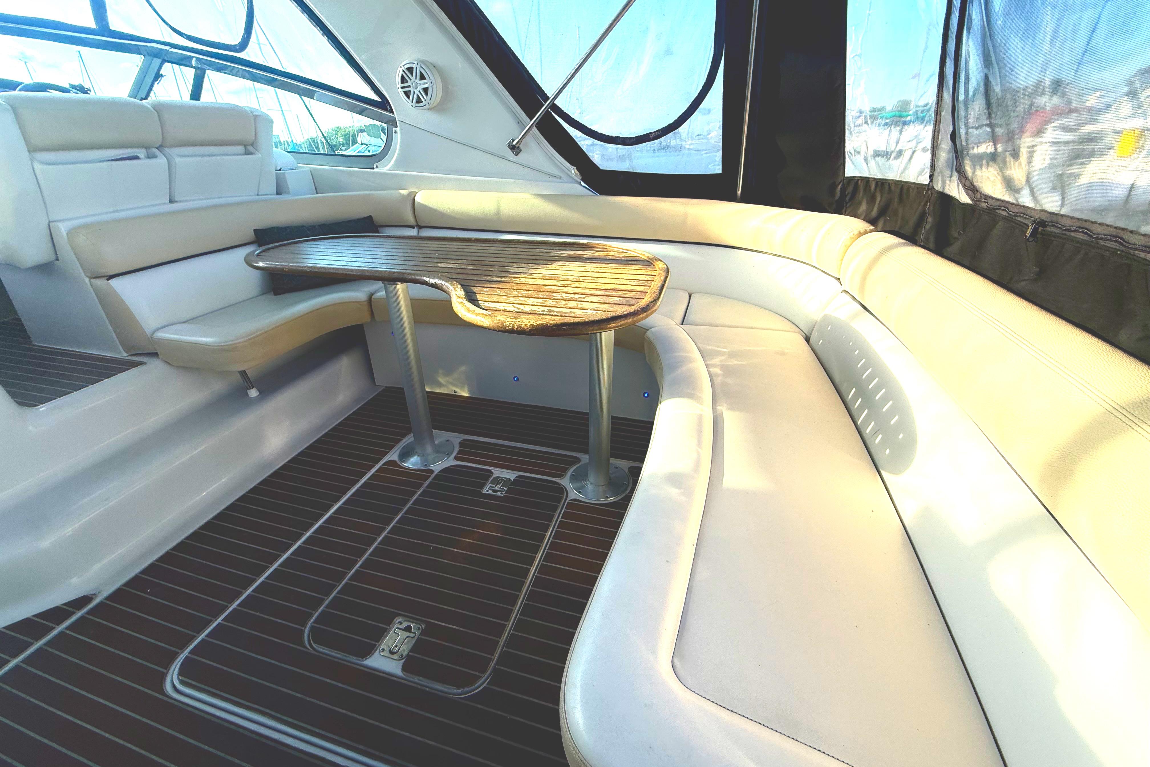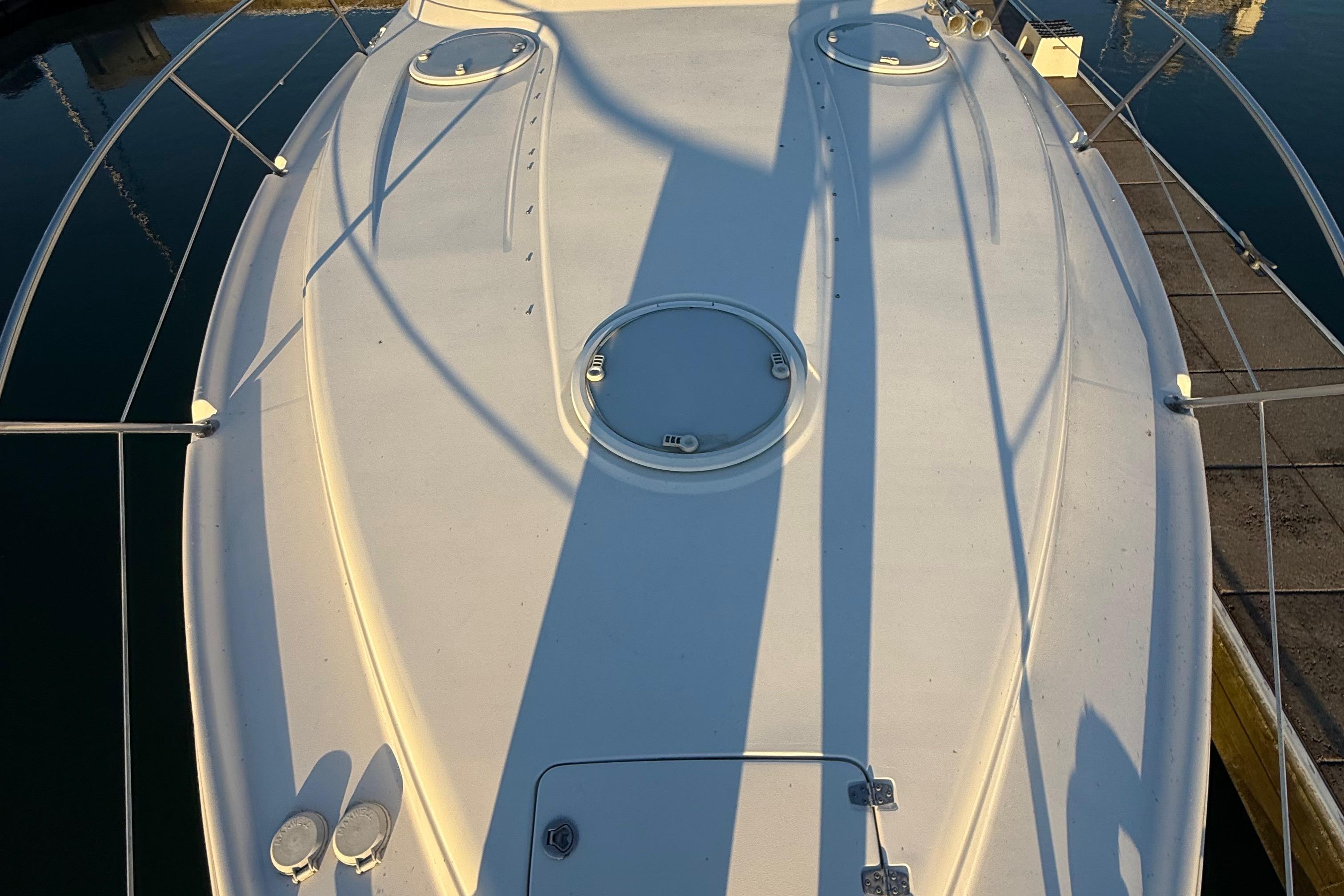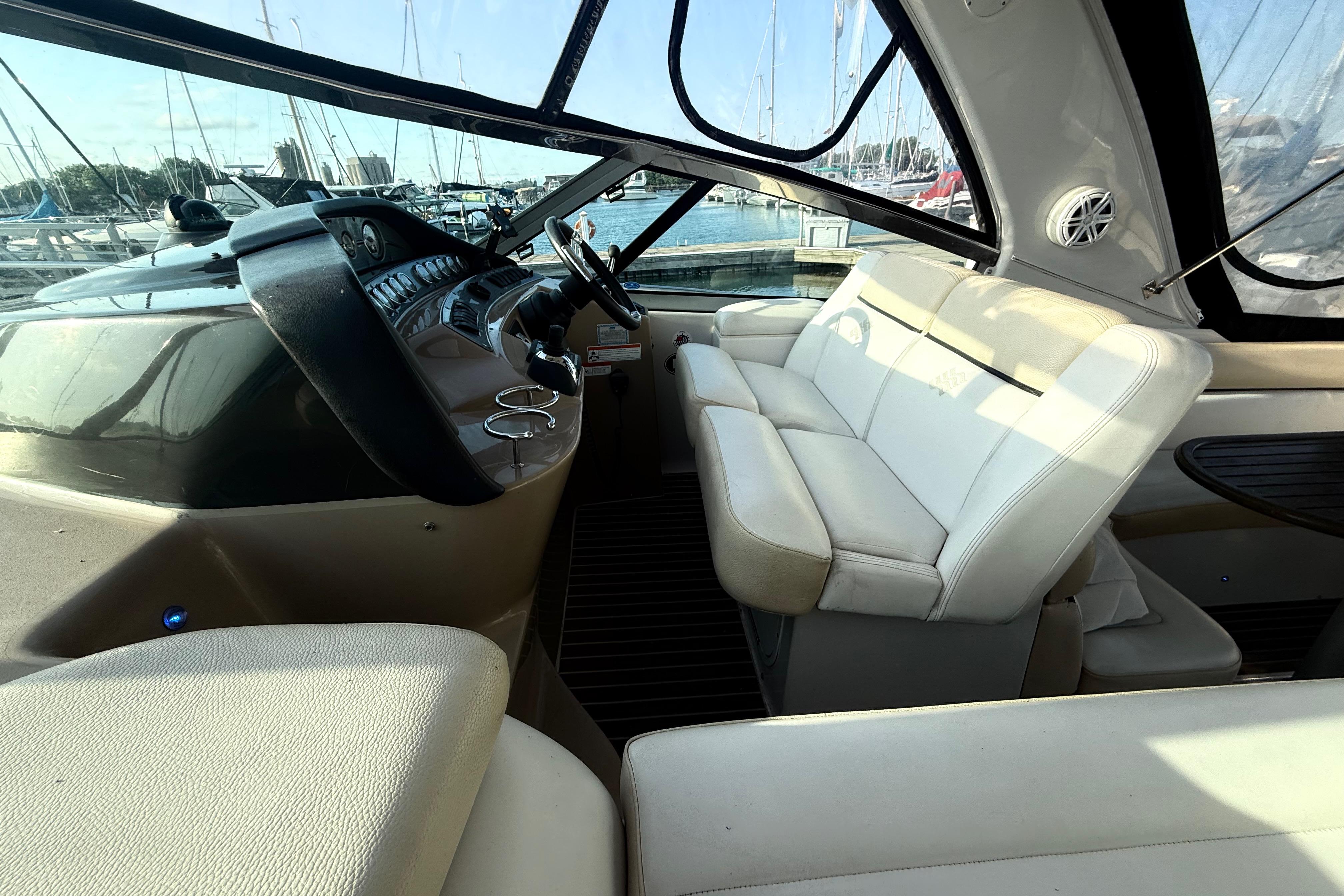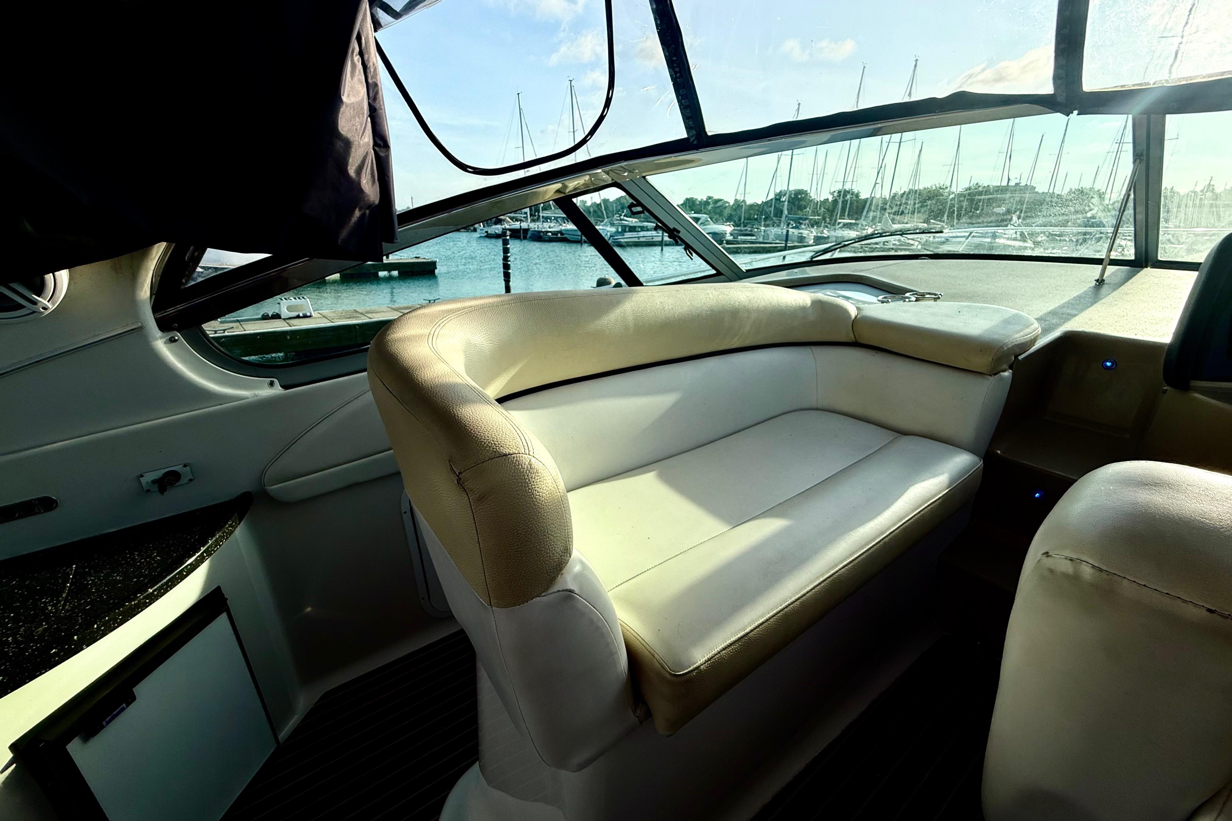 If you have not been aboard a Four Winns 378 Vista, then you are in for a treat. Four Winns designed this boat to be a great family cruiser as well as entertaining platform. With a large U Shaped settee aft, wrap around helm with double wide helm seat, companionway to the salon, and an open floorpan down below, your possibilities are endless. Complete with full camper canvas, generator, heat and air, private head, and the revolutionary Volvo IPS Pod system with joystick, this boat is easy to operate and is more efficient than others in the same size range. Click on full specs to see all this great Four Winns 378 Vista has to offer. 2025/2026 Inside heated storage included