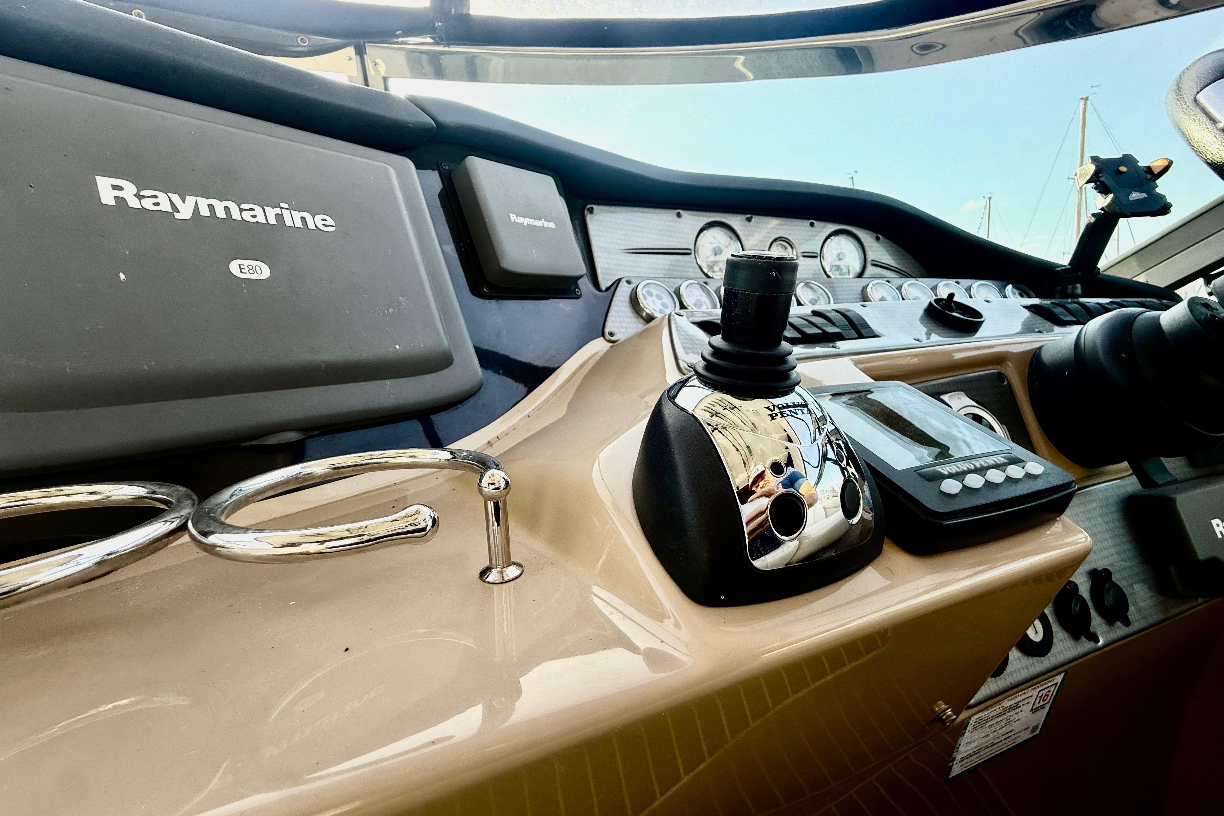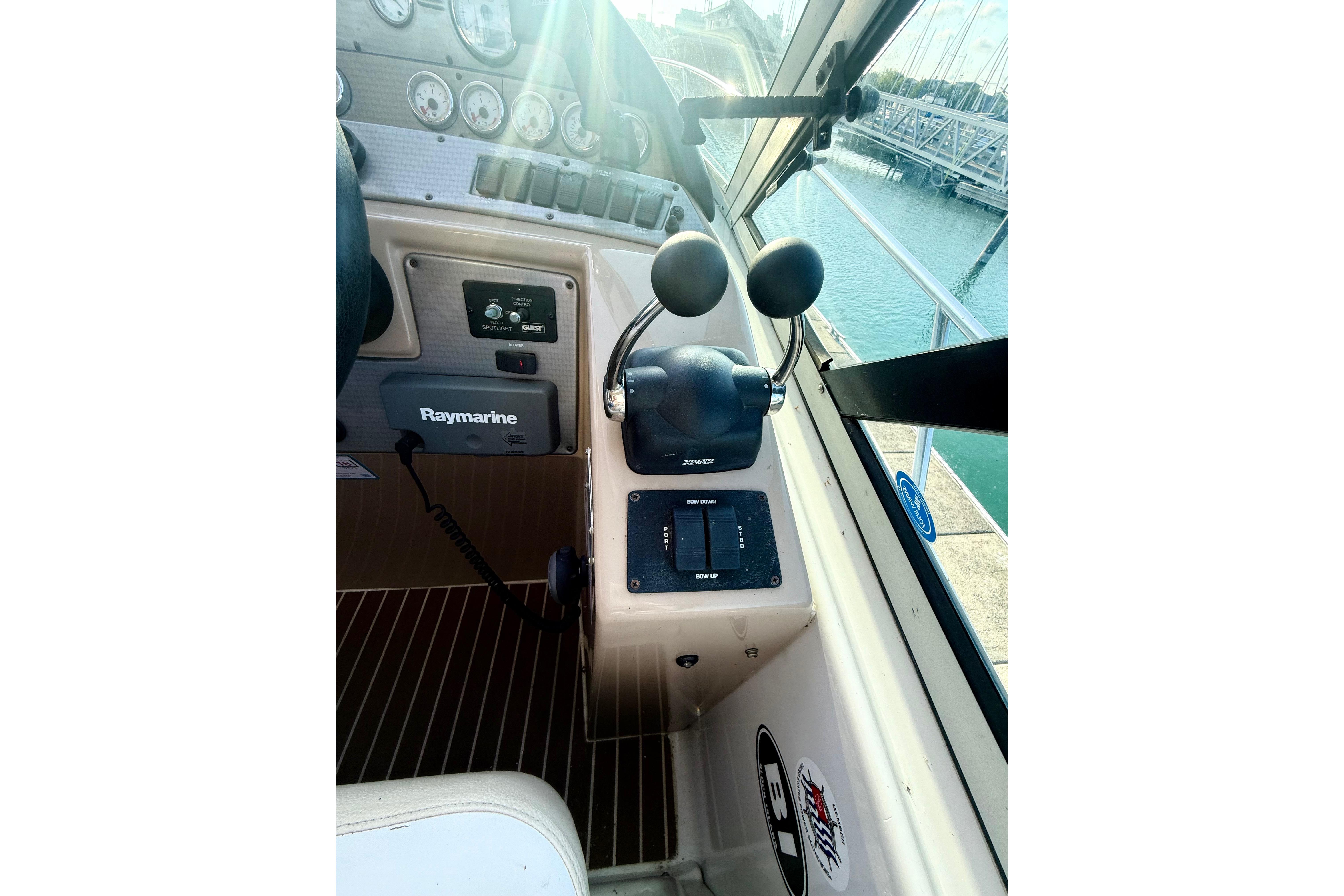 Steering SystemJoystick ControlDisclaimerAny and all personal property is excluded from the sale of the vessel unless specifically listed and included in the listing specifications reference above. Personal property may be all equipment or gear that is not permanently attached to the vessel including but not limited to: artwork, entertainment equipment, fishing equipment, Direct TV Receivers, recreational equipment, tools, and personal appliances. Pictures may depict owners personal property and are not meant to convey these items are included in the sale of the vessel unless specifically listed herein. Irwin Yacht Sales offers the details of this vessel in good faith but cannot guarantee or warrant the accuracy of this information nor warrant the condition of the vessel. A buyer should instruct his agents, or his surveyors, to investigate such details as the buyer desires validated. This vessel is offered subject to prior sale, price change, or withdrawal without notice.