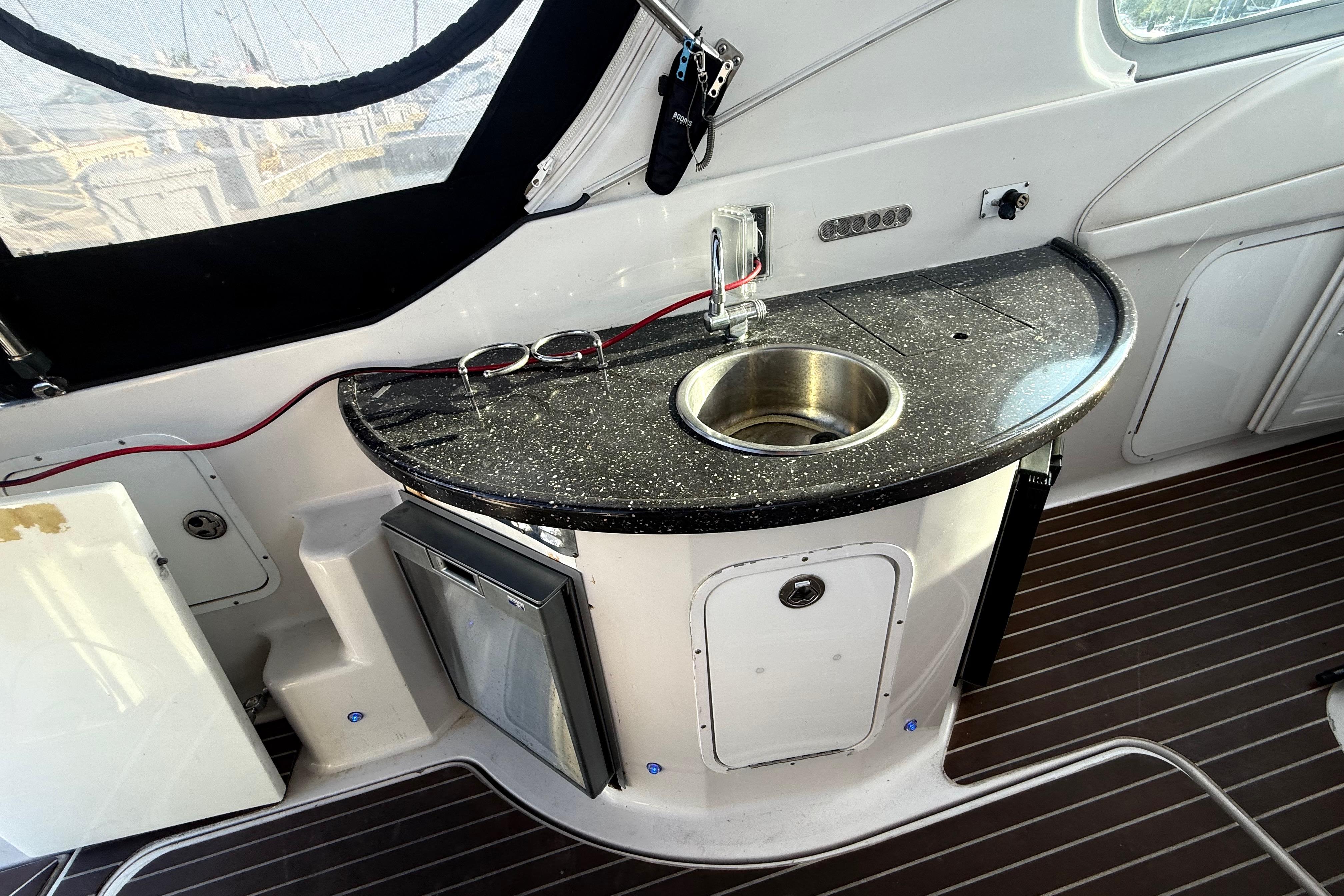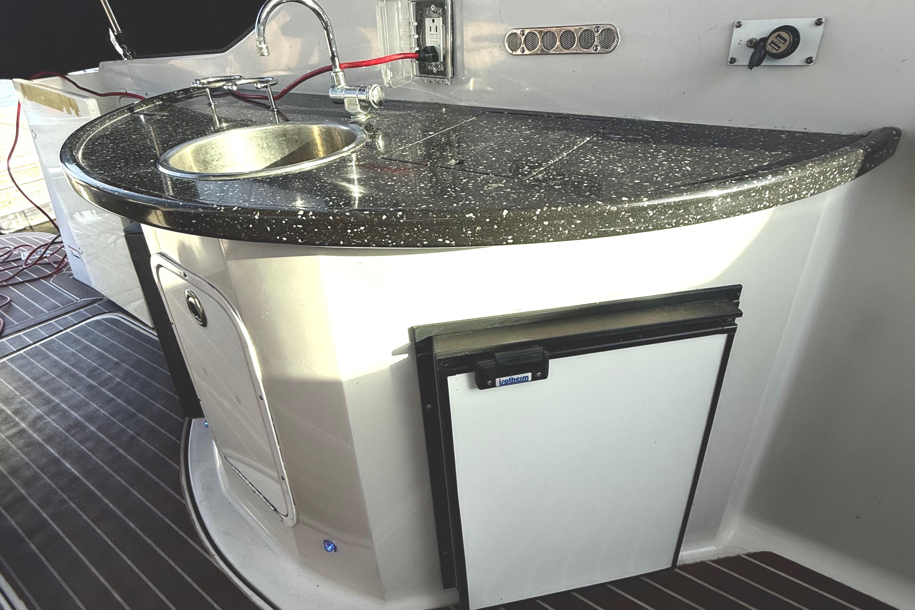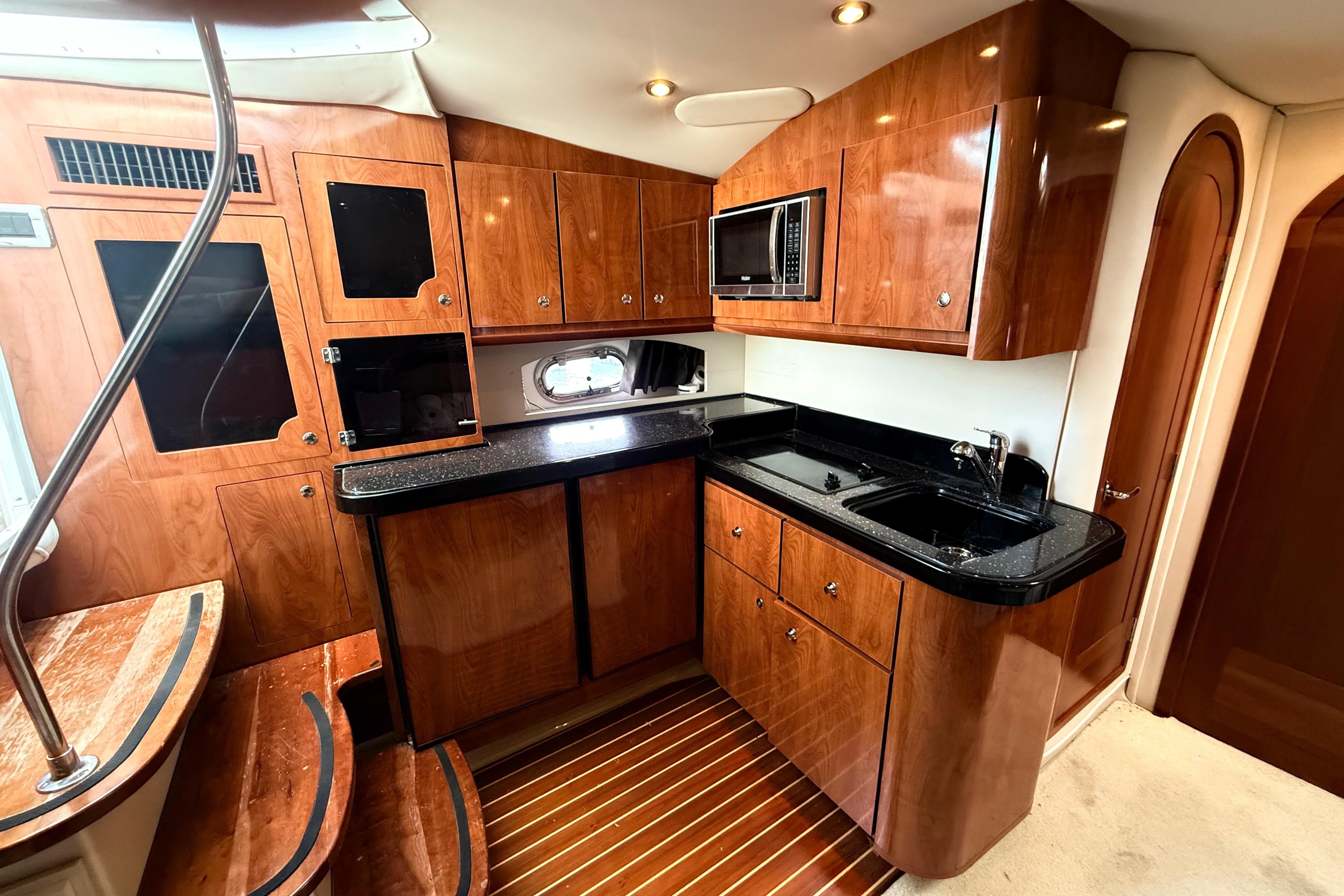 GalleyWith a galley usually reserved for much larger boats, the Four Winns 378 is a great boat for everyone to prepare a quick bite or full meal