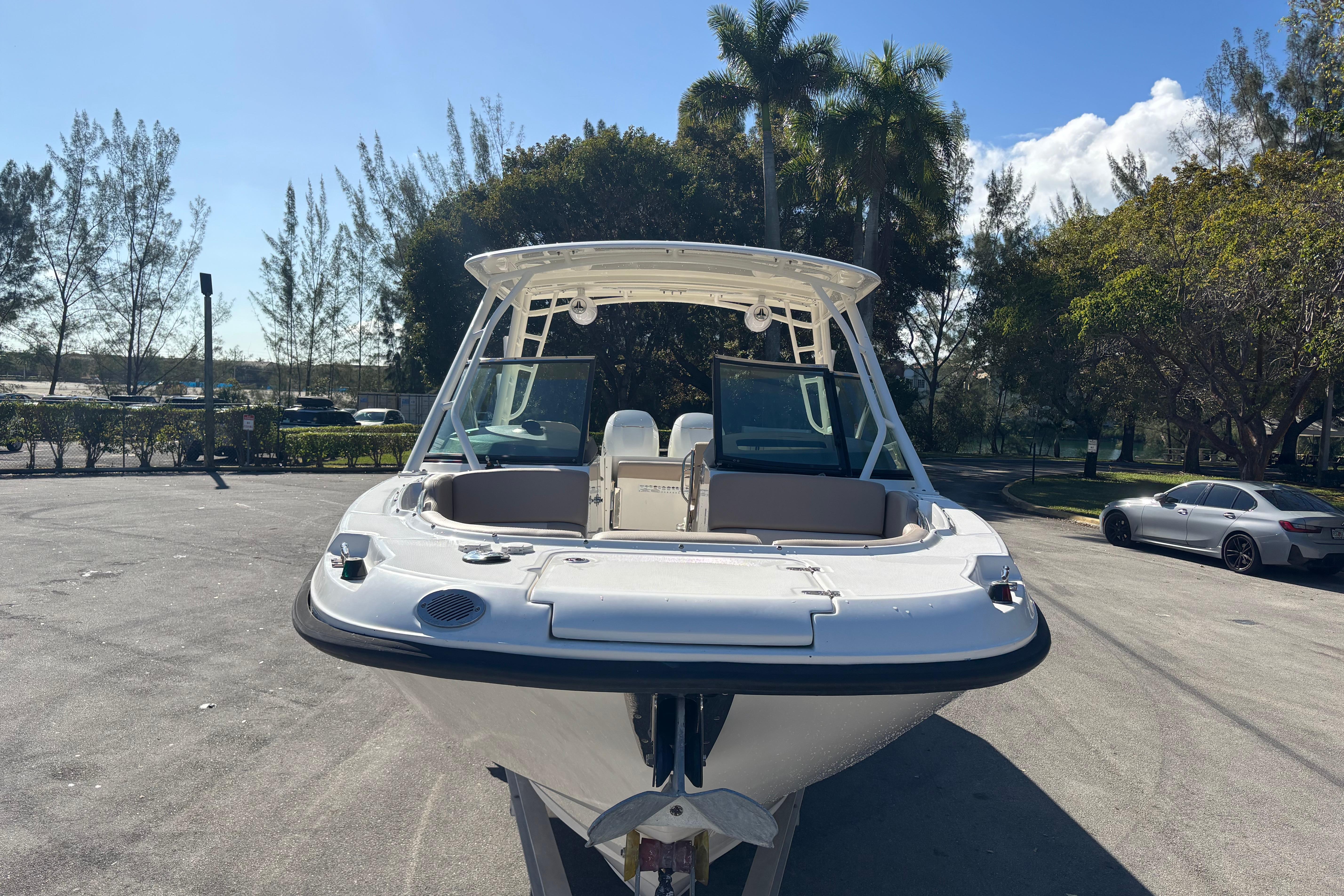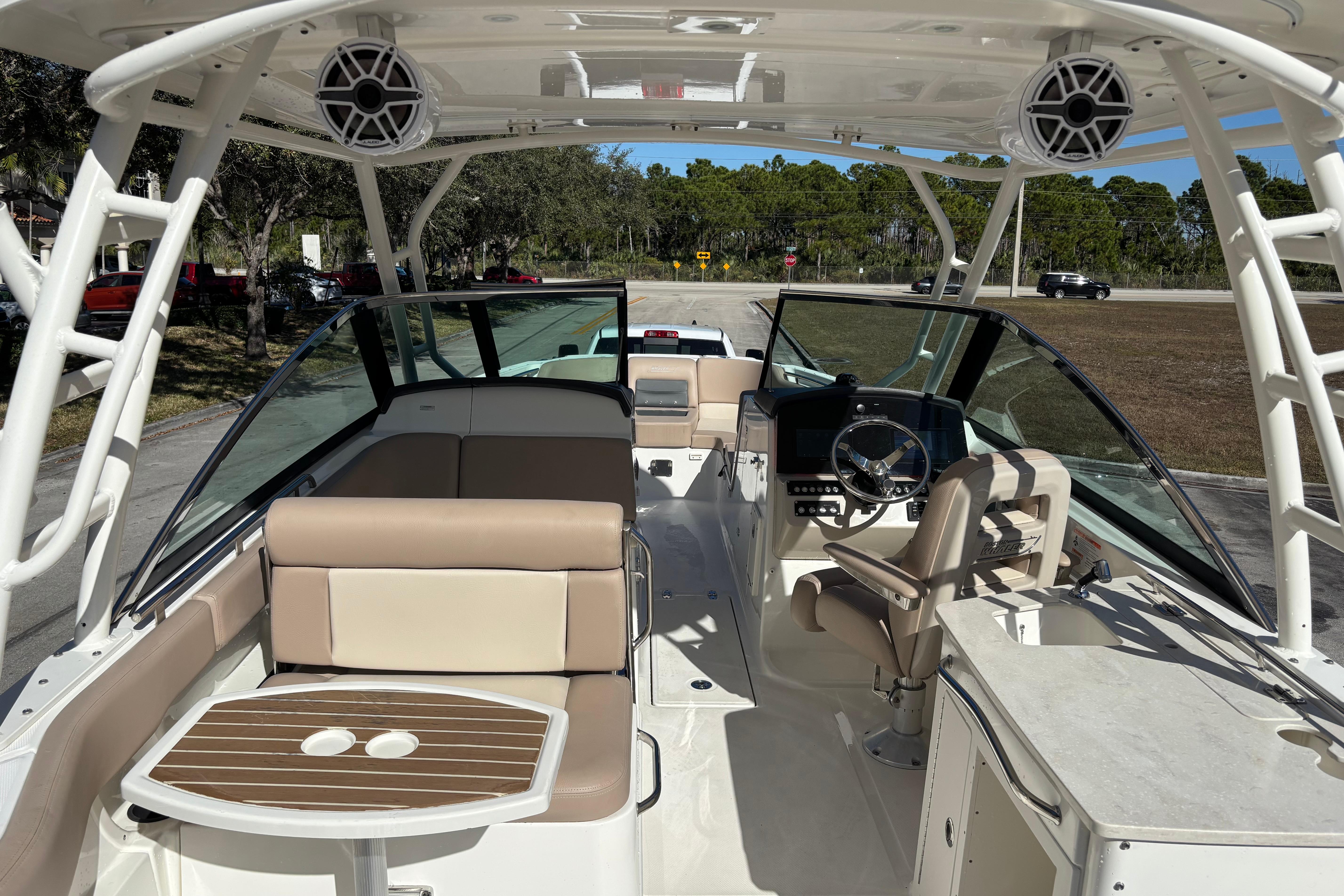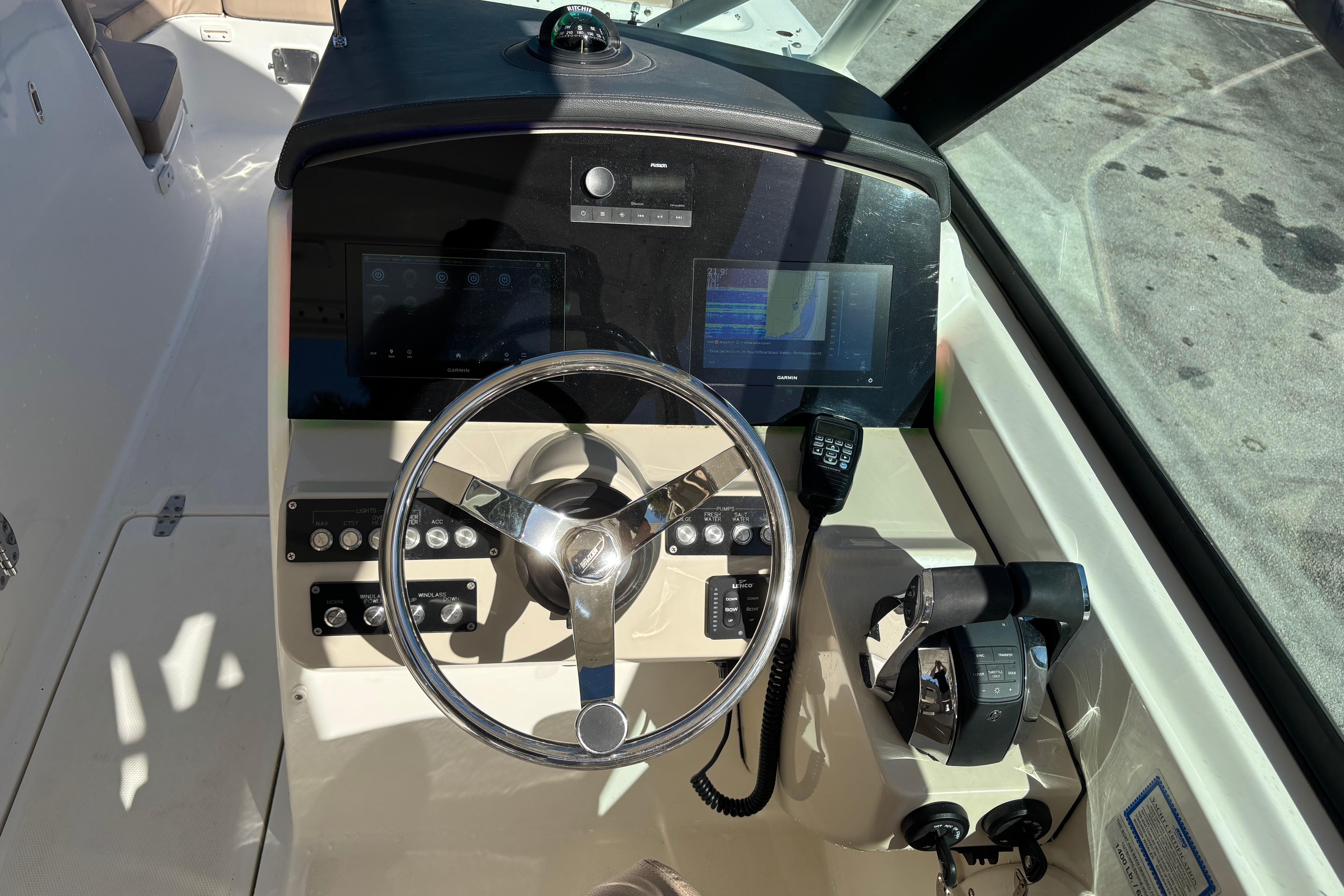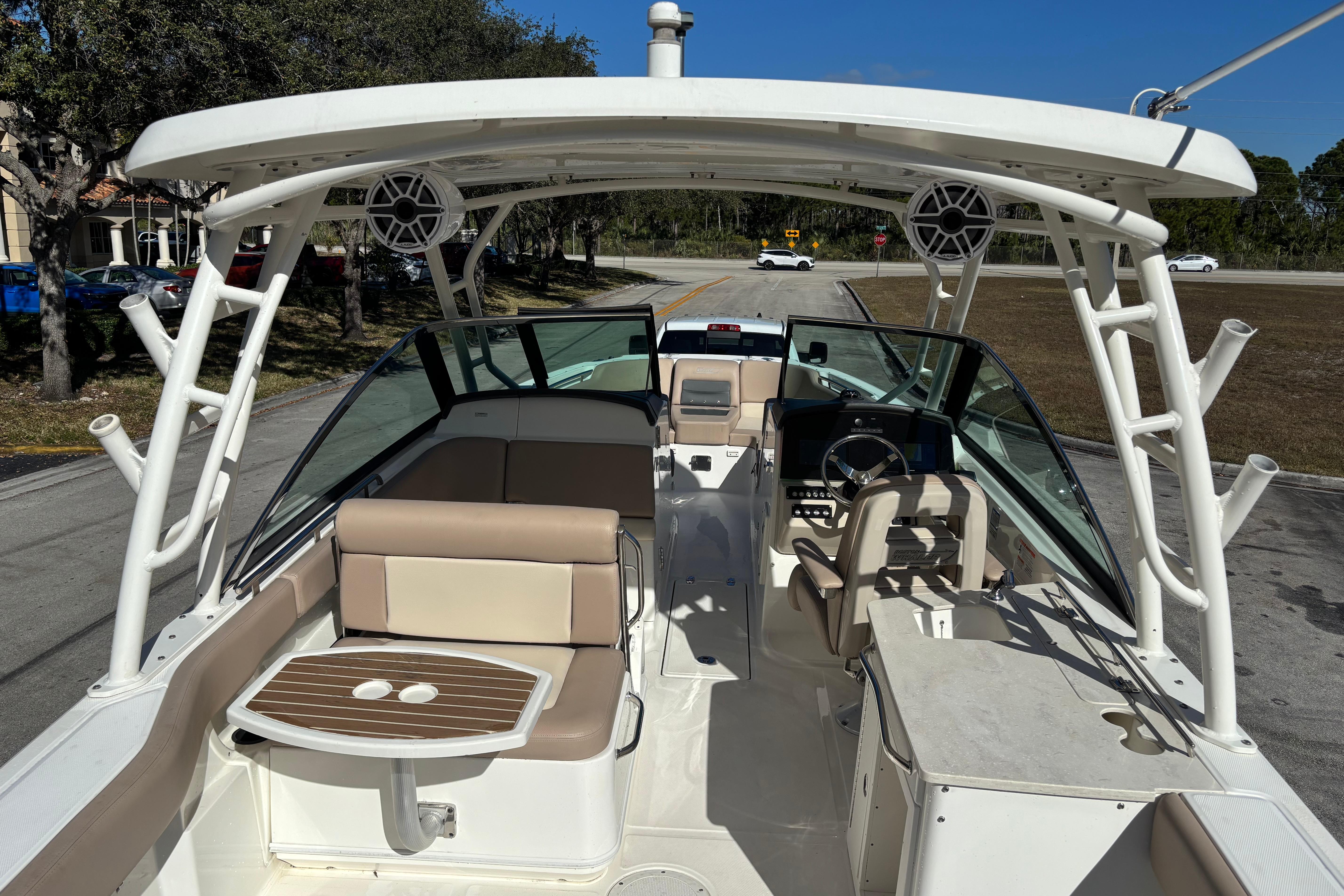 This 2014 Boston Whaler 270 Vantage is a versatile, premium dual-console designed to excel at cruising, entertaining, and light offshore use. Powered by twin Mercury 225 EFI FourStroke outboards, the boat delivers smooth, reliable performance with strong mid-range power, efficient cruising, and confident handling in a variety of conditions. A standout feature is the upgraded JL Audio sound system, offering powerful, crystal-clear sound throughout the cockpit and helm. The system is professionally installed and tuned to deliver clean audio even at speed, making it ideal for entertaining or relaxing at anchor. The boat also features recently completed upholstery, giving the interior a fresh, modern appearance. All seating has been refinished in high-quality marine-grade vinyl, enhancing comfort, durability, and overall presentation. Supporting these upgrades is recent electrical wiring work, improving reliability and ensuring clean, efficient power distribution to the audio system, electronics, and onboard accessories. This important update adds long-term value and peace of mind for the next owner. With its spacious dual-console layout, walk-through windshield, ample seating, and legendary Boston Whaler unsinkable construction, this 270 Vantage is a turnkey opportunity for buyers seeking a well-maintained, well-equipped boat ready for immediate enjoyment.