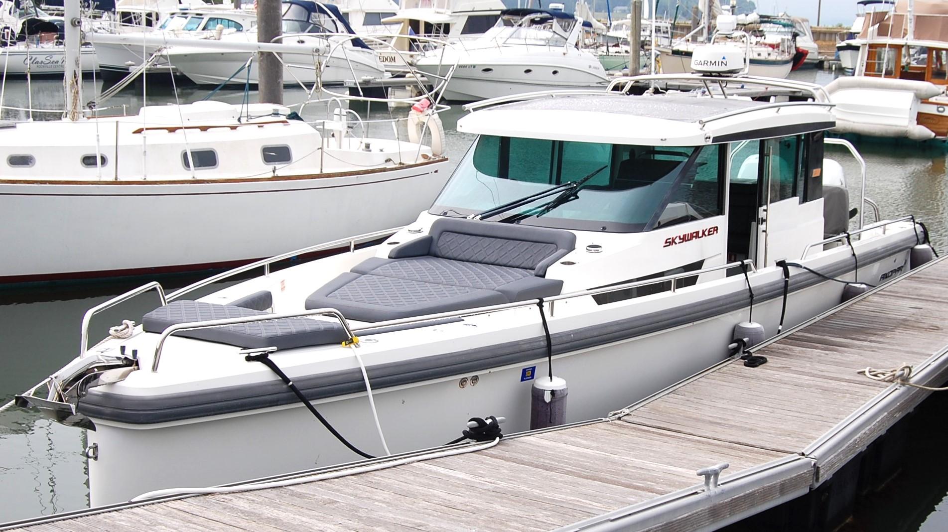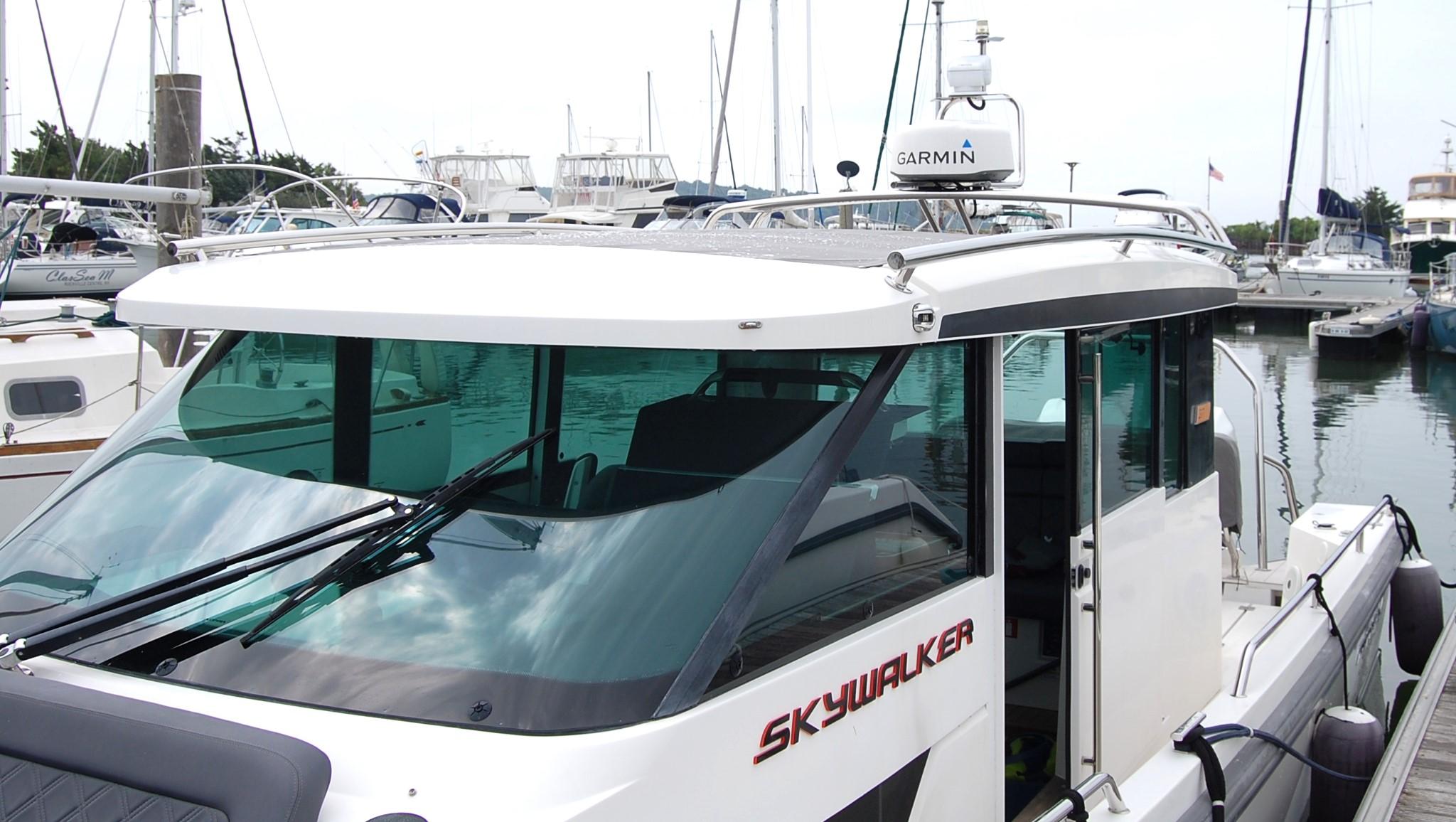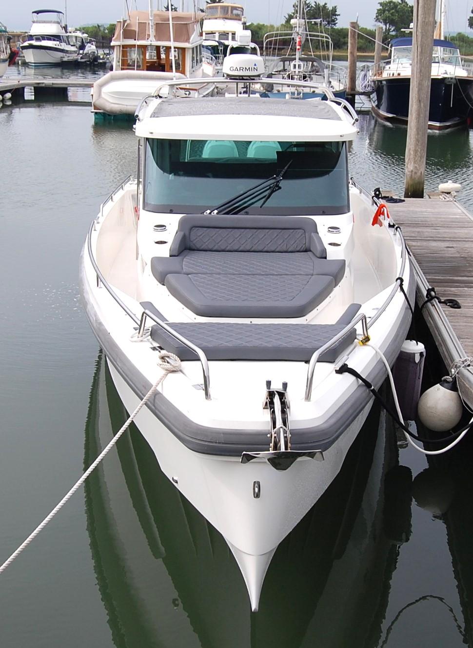 SKYWALKER is an extremely nice example of the rare but popular 37 Axopar Sport Cabin. Powered with a pair of low-hour 350hp Mercury Verados that provide a comfortable, efficient cruise and good top-end speed. Her deck layout is spacious and includes a bow lounge area up front, and in the cockpit is a sink, tackle station, and rod holders for fishing with the family. Her helm is equipped with dual Garmin screens that monitor GPS, radar, and sonar. The cabin will sleep two in the forward berth, and there is room for two more in the cabin area. She is equipped with a pump-out head and vanity with a sink. This model is equipped with 12VDC air conditioning so you can relax in comfort without running a generator! Don’t miss this opportunity; she is a must-see if you’re in the market for an extremely popular and sharp-looking boat with reliable and fast outboard power!