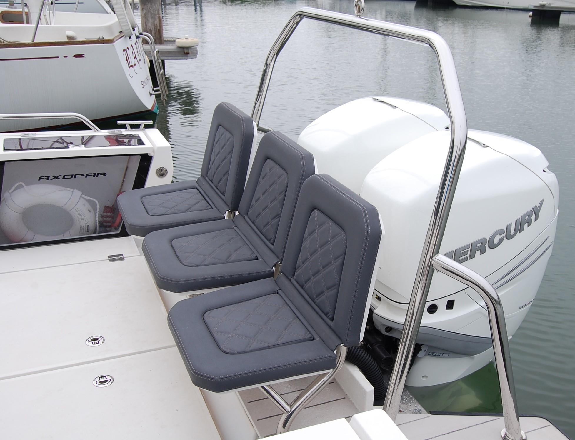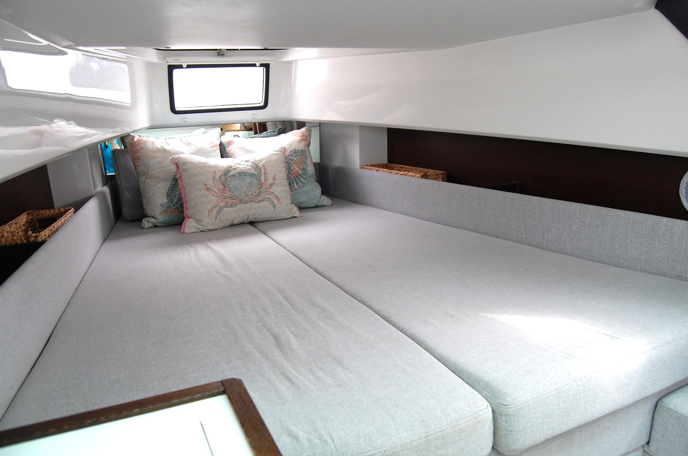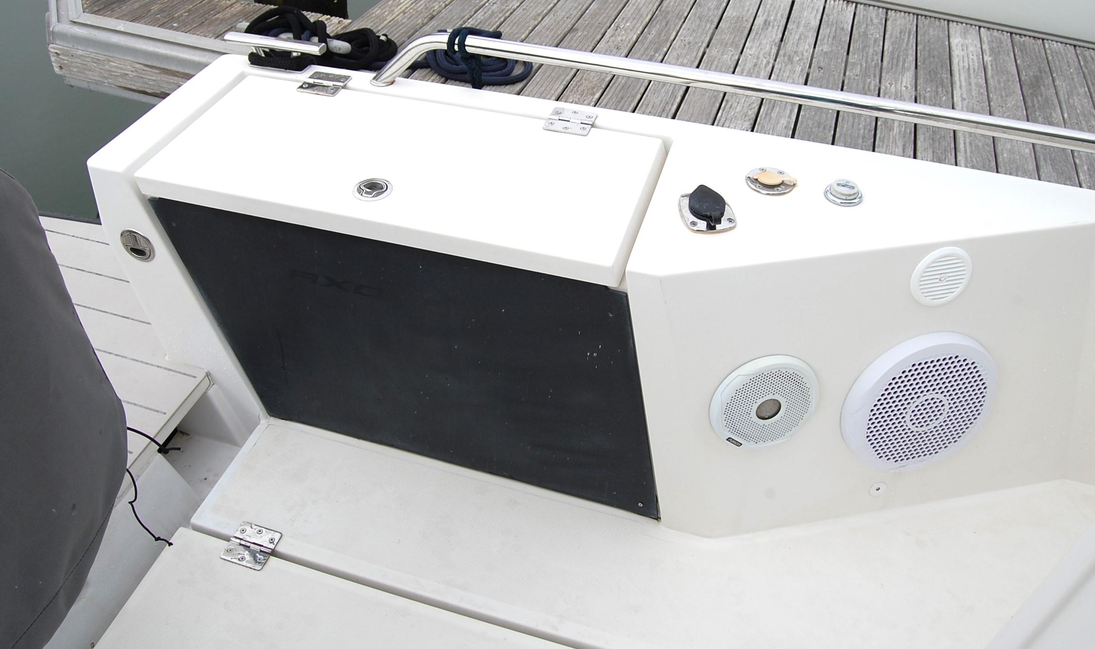 SKYWALKER is an extremely nice example of the rare but popular 37 Axopar Sport Cabin. Powered with a pair of low-hour 350hp Mercury Verados that provide a comfortable, efficient cruise and good top-end speed. Her deck layout is spacious and includes a bow lounge area up front, and in the cockpit is a sink, tackle station, and rod holders for fishing with the family. Her helm is equipped with dual Garmin screens that monitor GPS, radar, and sonar. The cabin will sleep two in the forward berth, and there is room for two more in the cabin area. She is equipped with a pump-out head and vanity with a sink. This model is equipped with 12VDC air conditioning so you can relax in comfort without running a generator! Don’t miss this opportunity; she is a must-see if you’re in the market for an extremely popular and sharp-looking boat with reliable and fast outboard power!