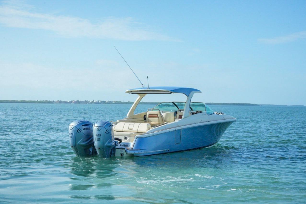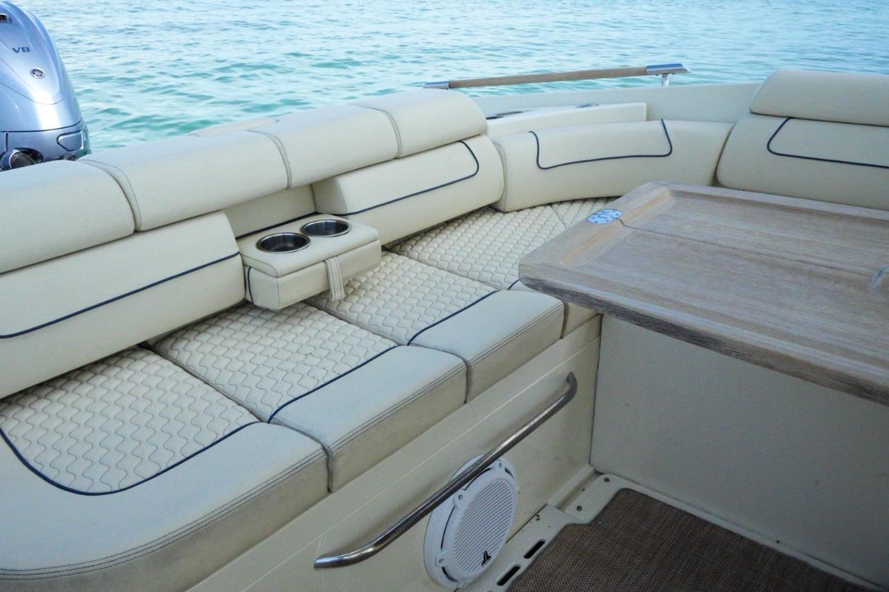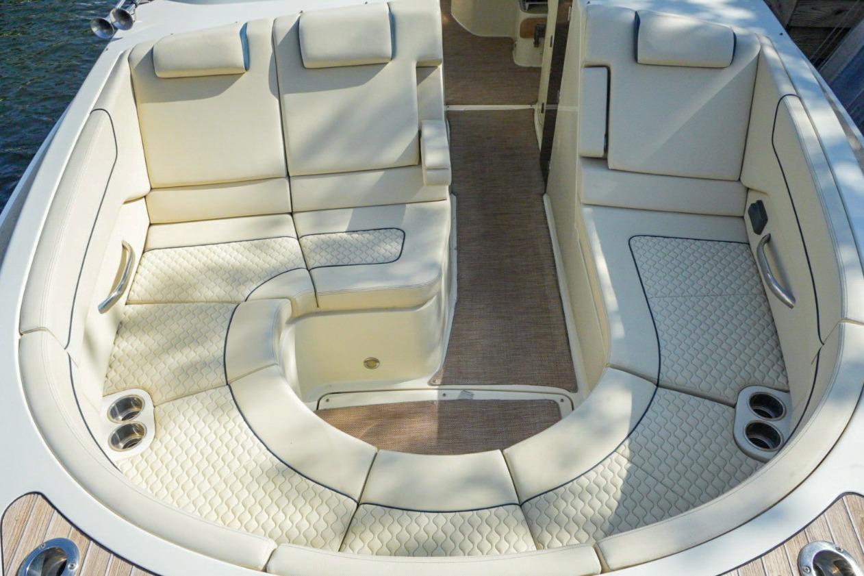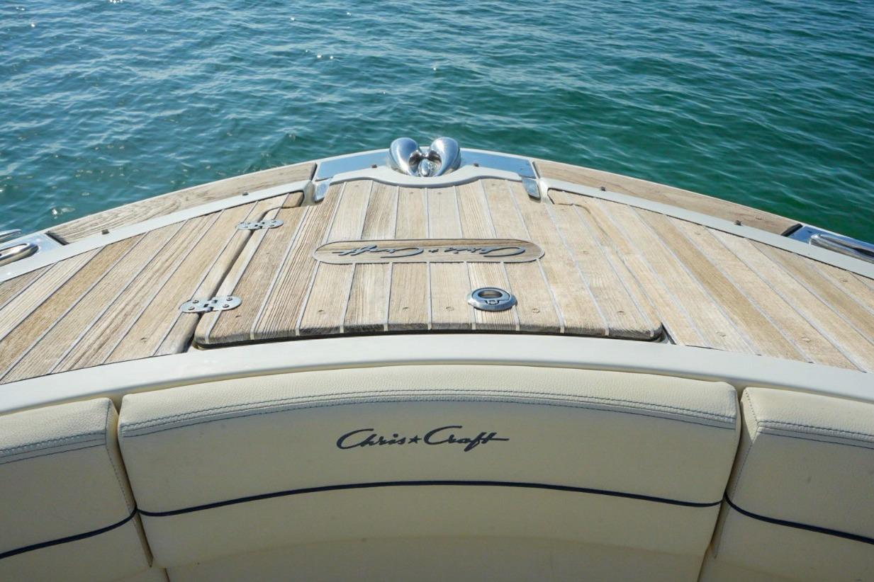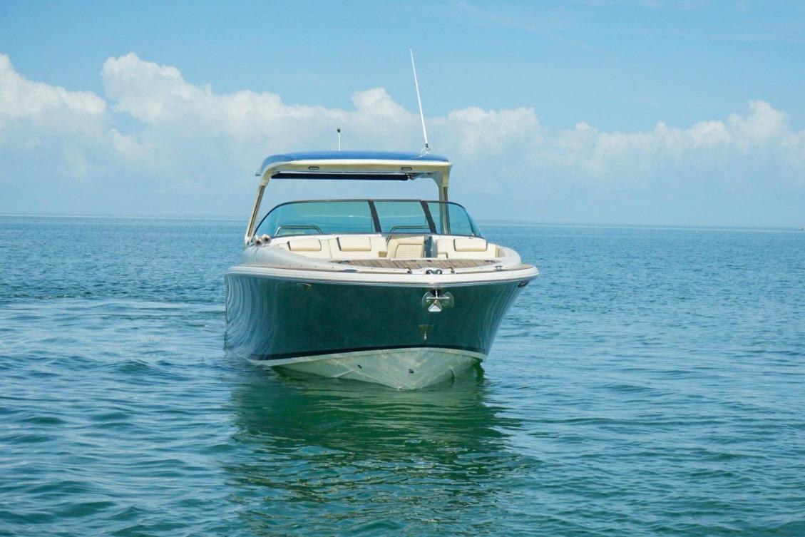 This model is the most innovative yet, boasting several cutting-edge features while maintaining the classic design and styling that make it uniquely Chris-Craft. Available with the option of either sterndrive or outboard propulsion, the Launch 35 GT can be customized to the owner’s needs and wants. The owner also has the option of a painted hardtop with a SureShade that extends with the push of a button. With the option of boarding the boat through the dive-door or a walk-through transom, you’ll find a large rear sun pad which are distinguishing features of the Launch GT line. Varnished mahogany can be found throughout the boat displaying Chris-Craft’s strong devotion to craftsmanship.