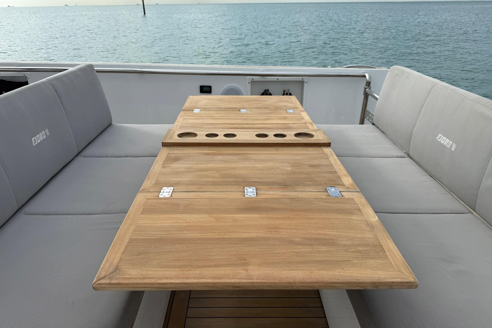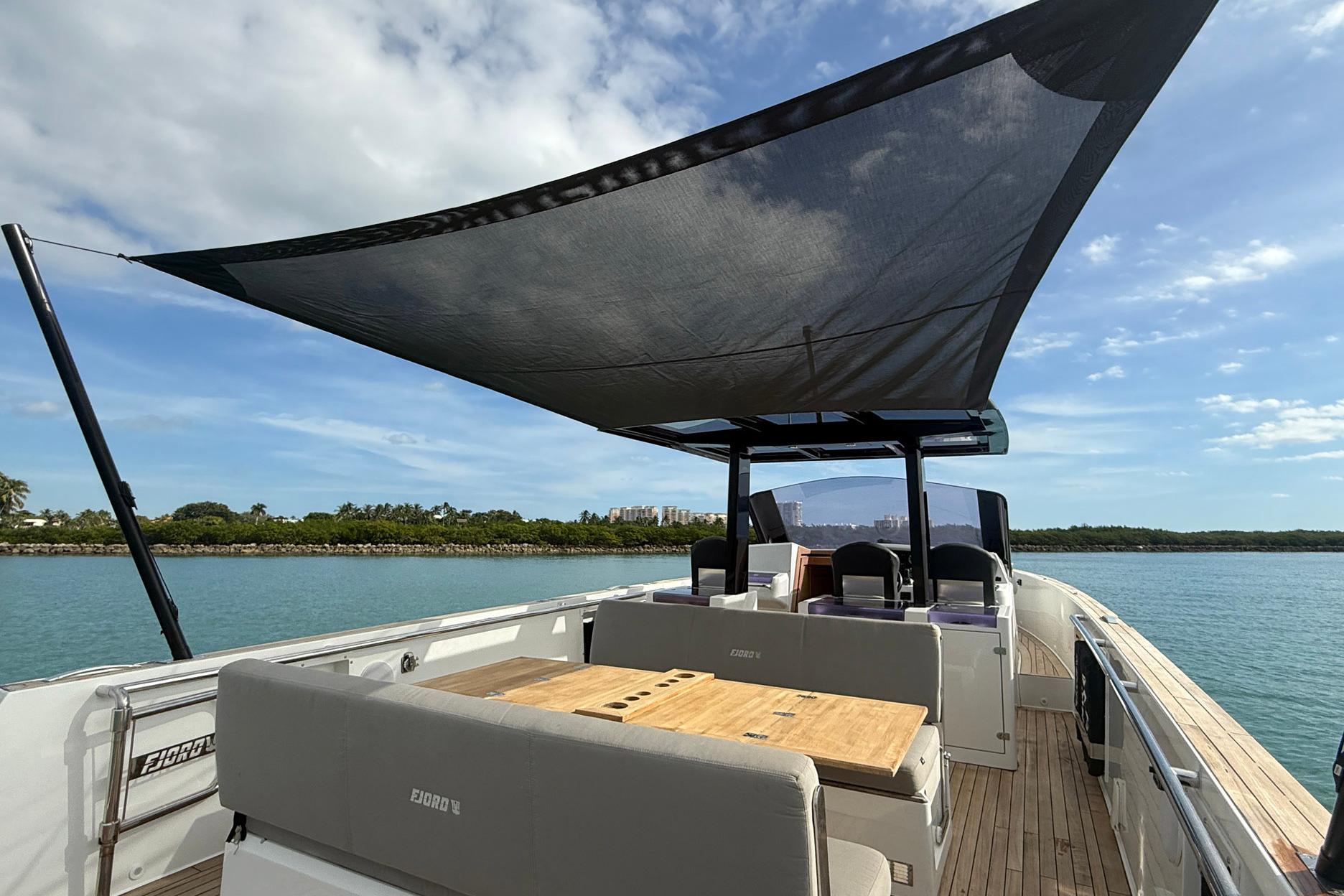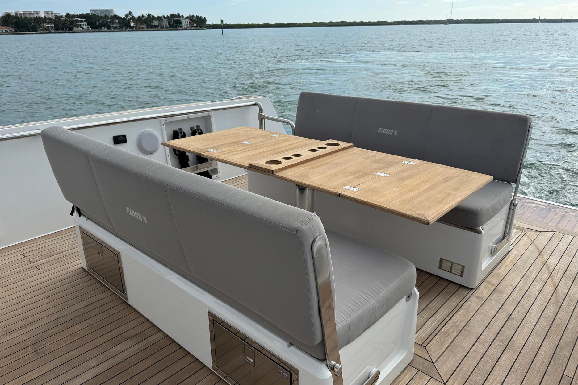With only 290 hours, life on this lightly used 2019 Fjord 40 Open is all about enjoying the bay and ocean. The boat is smartly divided into five key areas: a spacious swim platform, a versatile dining area, a fully-equipped kitchen, a captain’s helm, and a forward lounging spot. Whether you’re diving in for a quick swim or cruising all day, the Fjord 40’ Open delivers from the get-go.