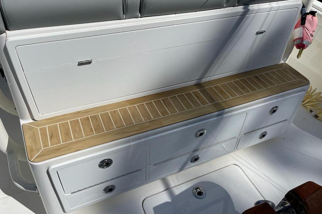 Experience the Regulator 41 with features to meet your every offshore need. The integrated wraparound windshield offers more protection at the helm, while the aft mezzanine seat with prep & tackle center and overhead SureShade® provide additional cockpit seating without compromising fishing amenities. Redesigned tower access makes the dual helm even more attractive, and, below deck, an expanded cabin features galley kitchen, double berth, and spacious head with shower, allowing you to accommodate friends and family with ease. Powered by Yamaha’s quad XF425 engines, with the added stability of the Seakeeper® 6 stabilization system, the 41 is everything you’ve ever wanted in a luxury sport fisher.