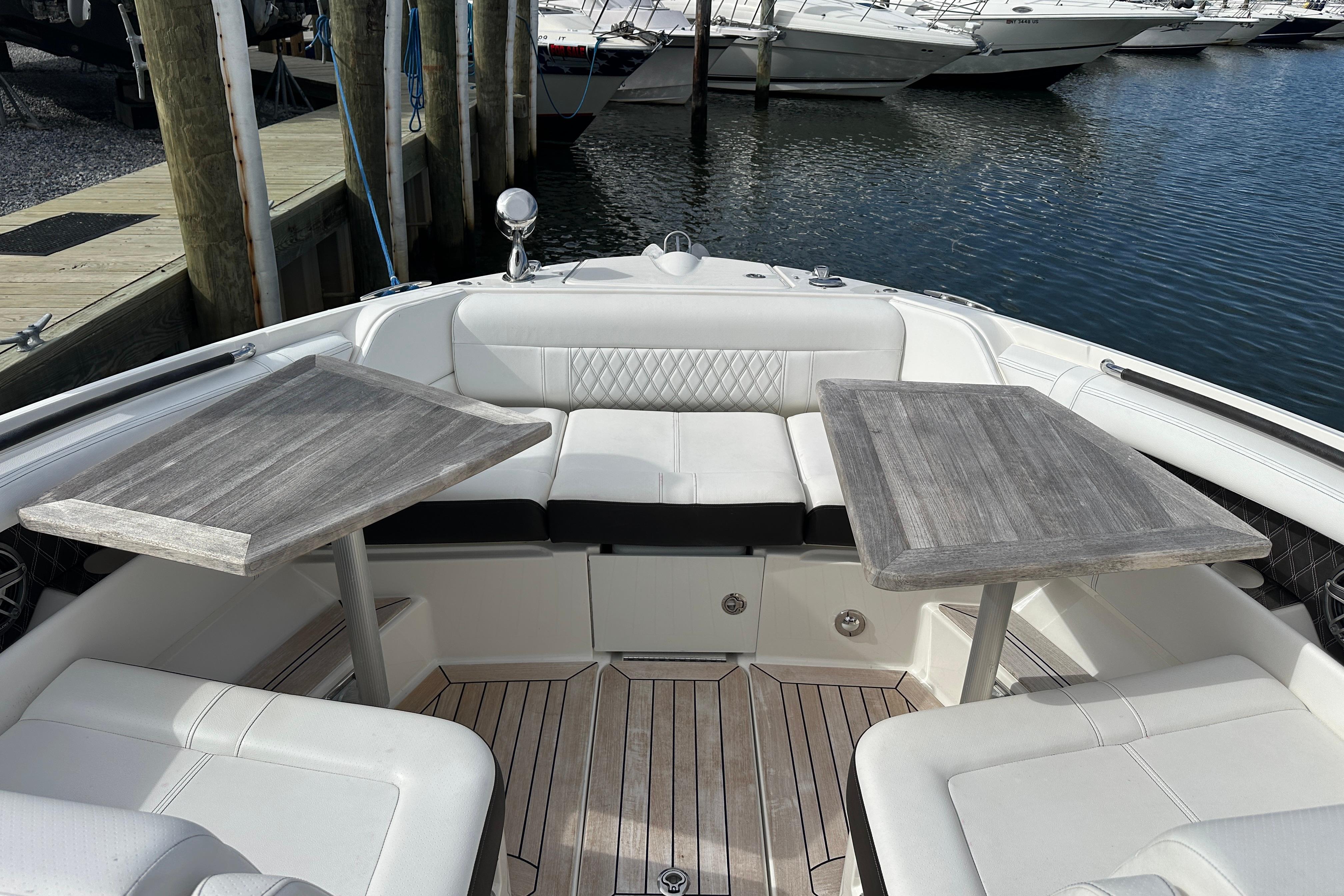 Introducing the stunning 2019 Sea Ray SLX 350 Outboard, a remarkable bowrider that seamlessly blends style and performance. With an impressive overall length of 35 feet, this vessel boasts a sleek fiberglass hull, ensuring durability and a smooth ride on the water. Powered by twin Mercury Varado outboard engines, each delivering 350 horsepower, this boat promises exhilarating speed and agility, making it perfect for both leisurely cruises and thrilling adventures. With only 35 hours, the engines are in excellent condition, ready to provide an unforgettable experience. The SLX 350 is designed for comfort and convenience, featuring modern equipment that enhances your time on the water. Whether you’re entertaining guests or enjoying a day of relaxation, this boat offers ample space and a luxurious feel. Experience the perfect blend of performance and elegance with the Sea Ray SLX 350 Outboard.