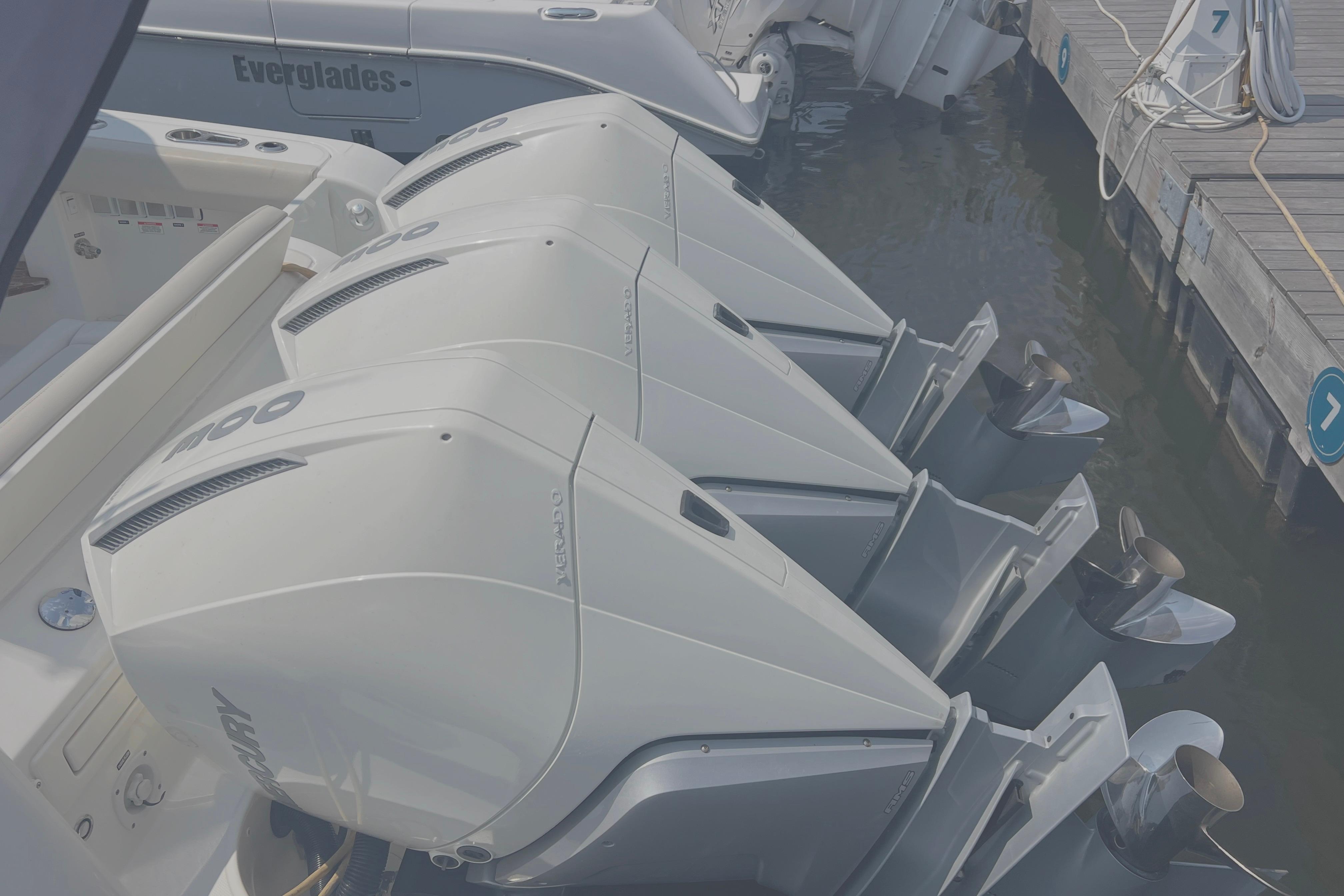 Powered by three robust Mercury V8 DTS Verado outboard engines, each delivering an impressive 300 horsepower, this boat promises exhilarating speed and agility. With only 275 hours of use, it stands ready for new adventures.