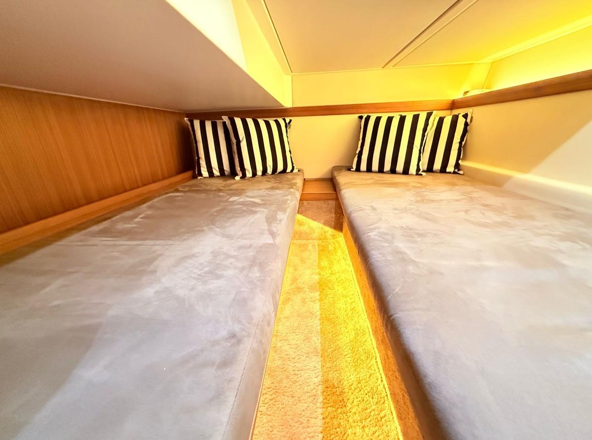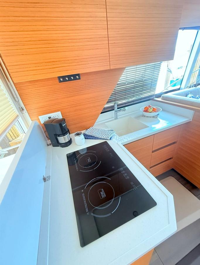 The hybrid system also eliminates the need for a traditional generator. With ample onboard electrical capacity, owners enjoy reliable power without generator noise, vibration, fuel burn, or maintenance downtime. The result is a quieter, cleaner, and more enjoyable onboard environment—ideal for overnight stays, early morning departures, and peaceful evenings at anchor.