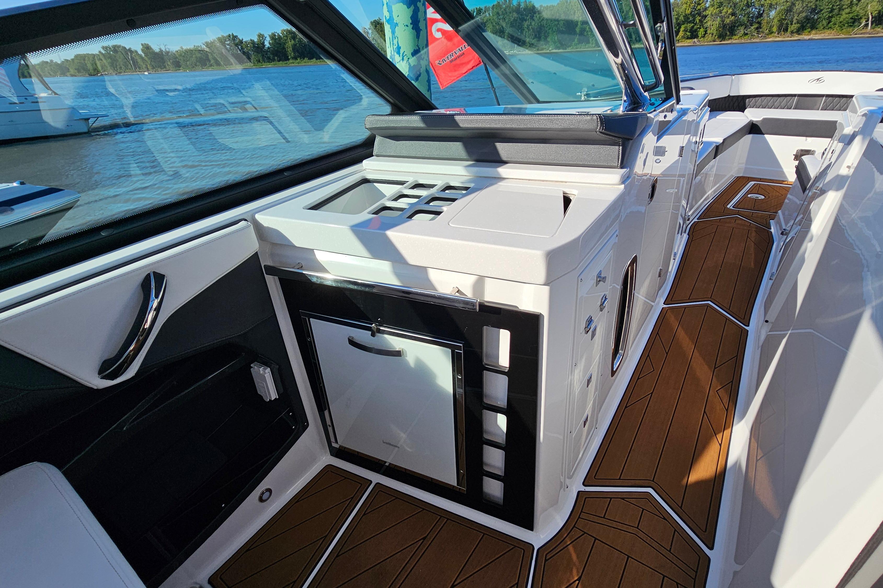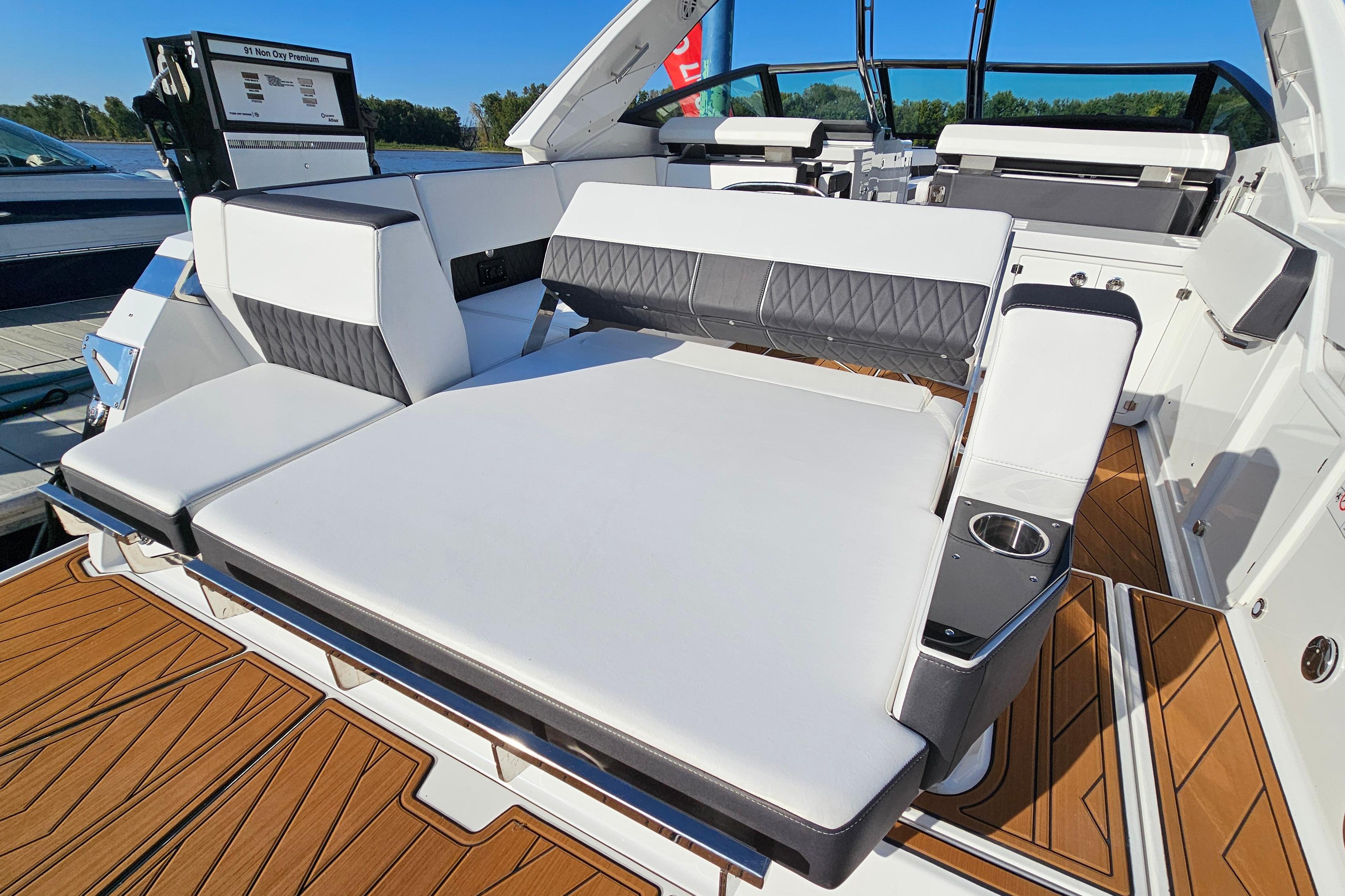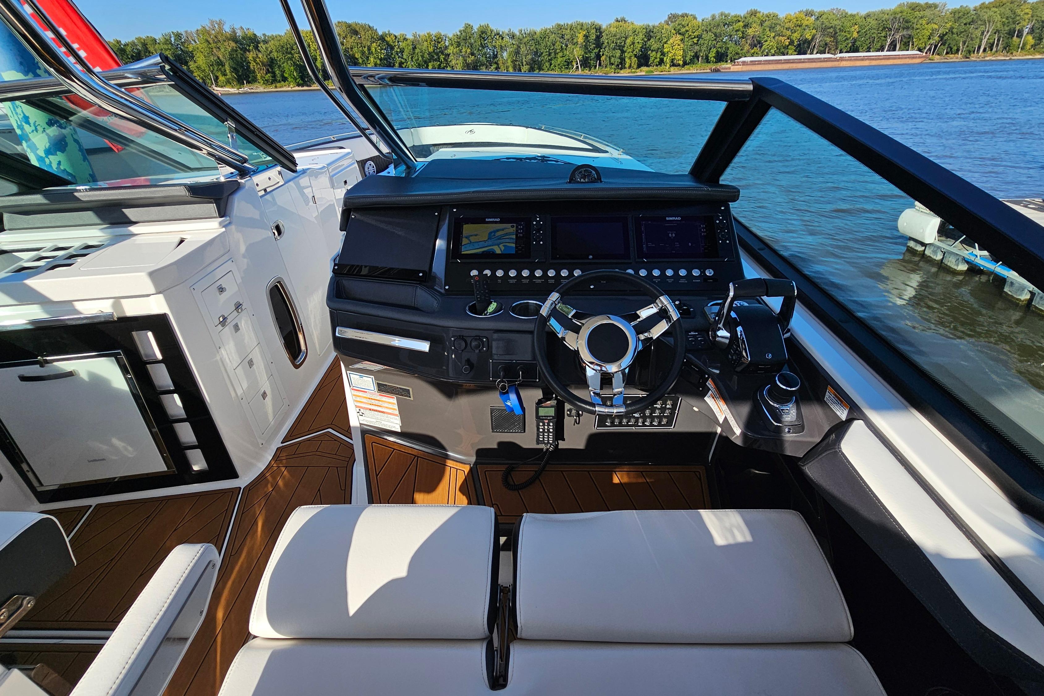 As a Open Bow Sport Boat the Performance will not disappoint, Powered by Twin MerCruiser 8.2L MAGS with Bravo 3X Drives this boat is sure to put a smile on your face with a Smooth Crisp Ride that any Captain and Crew is sure to enjoy! To make docking easy the MerCruiser AXIUS System is on this 378 SS, giving you Joystick Docking and a array of functions, some include Sky Hook, Single Lever Control, Docking Mode, Digital Throttle/Shift, Smart Craft Gauges & More!