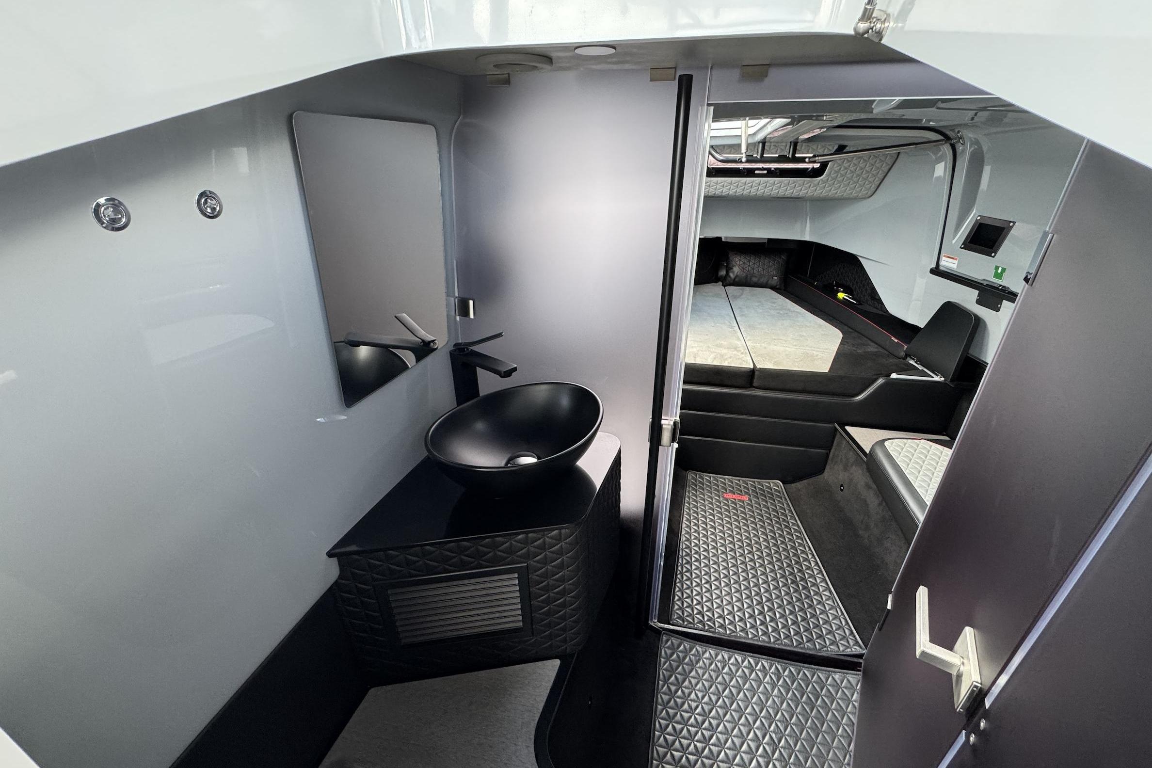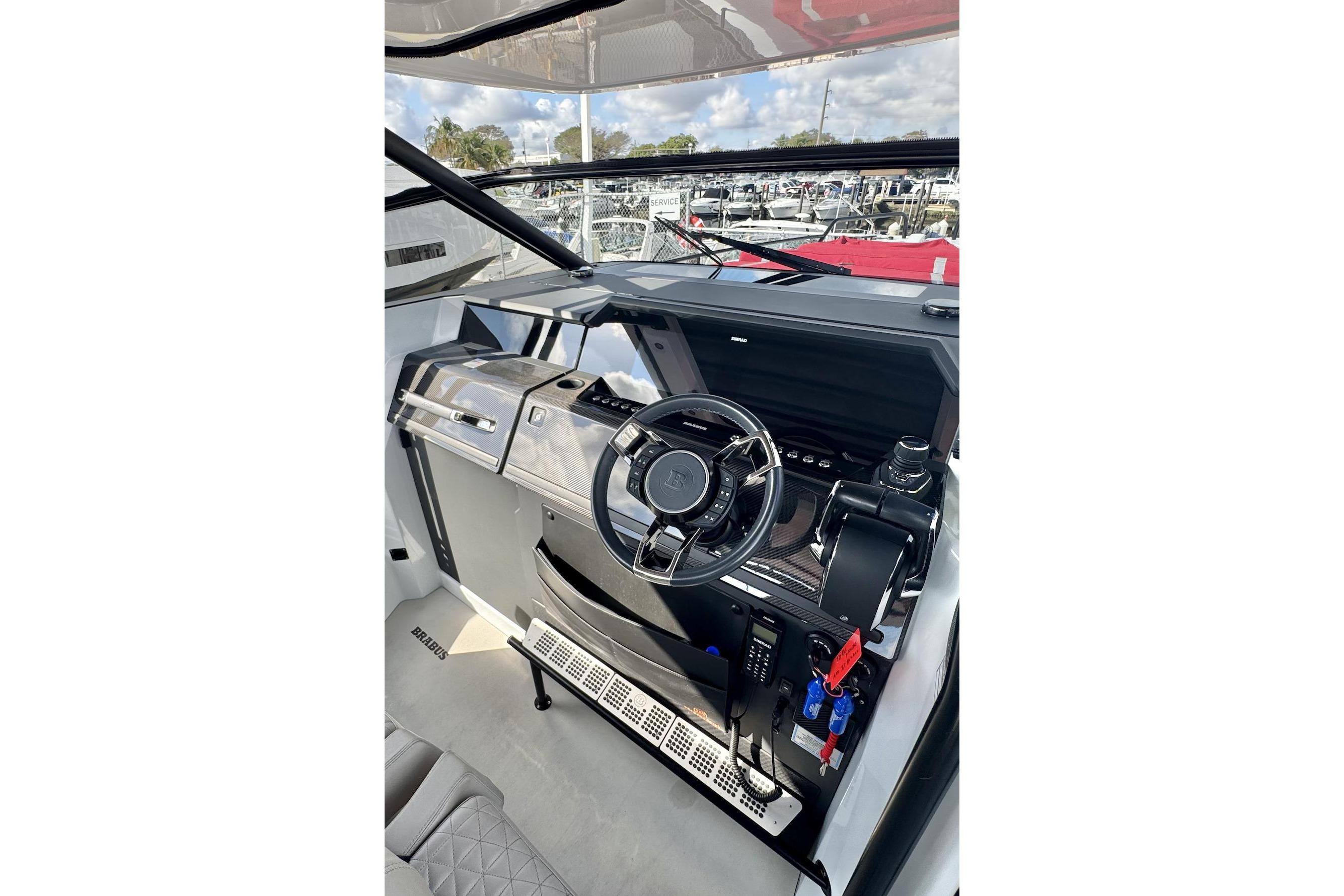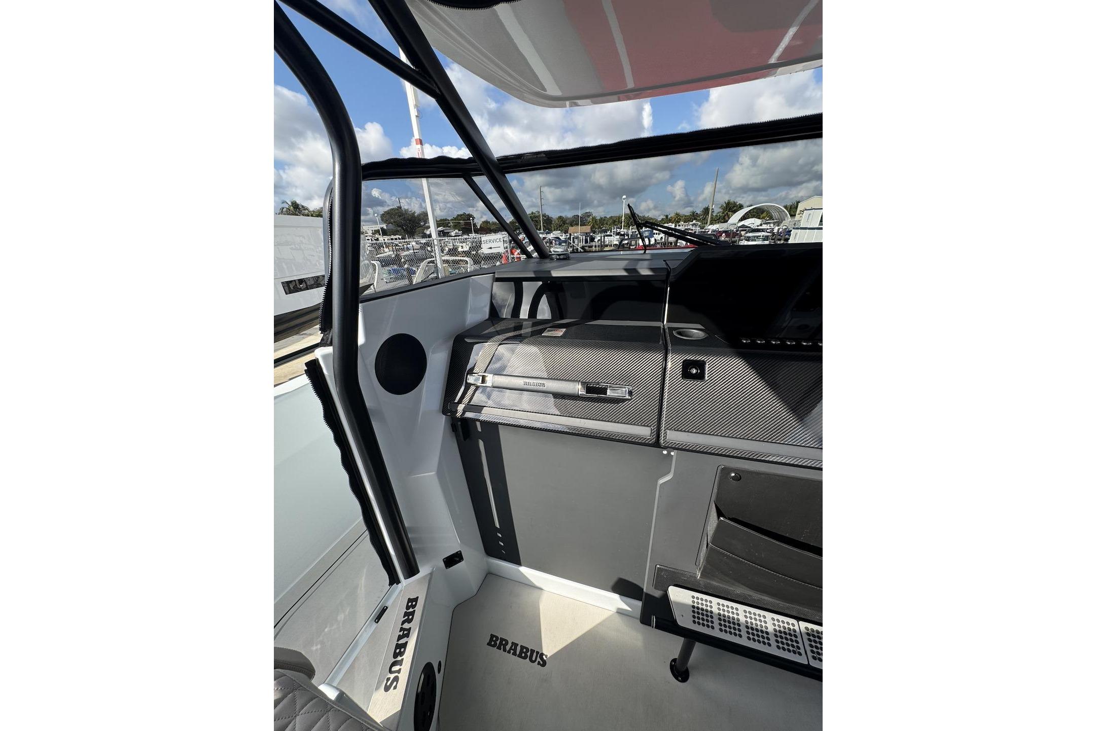 BRABUS Exclusivity: This Shadow 900 showcases the signature BRABUS style with distinctive hull badges,900 power badges on the helm console, and a BRABUS power graphics kit on the engine cowlings. The convenient steering module with integrated trim tabs, bow thruster, and audio ensures precise control.