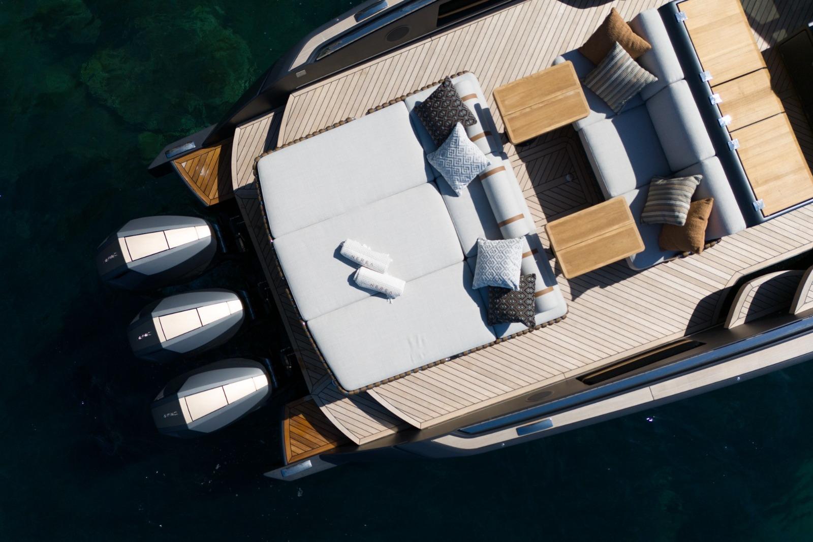 Power, agility and freedom. With its outboard propulsion, the NY40 Veloce is perfect for those who want power, performance and ease of handling. Powered by triple Mercury 400’s, the Nerea NY40 does almost 50 knots with a comfortable cruise at 35 knots.