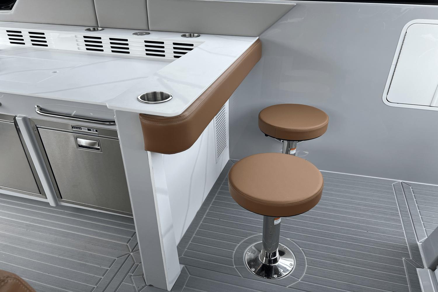 - Gourmet Galley: The cockpit is equipped with a full wet bar, refrigerator, and an electric grill, making it easy to prepare and serve meals without ever leaving the party.