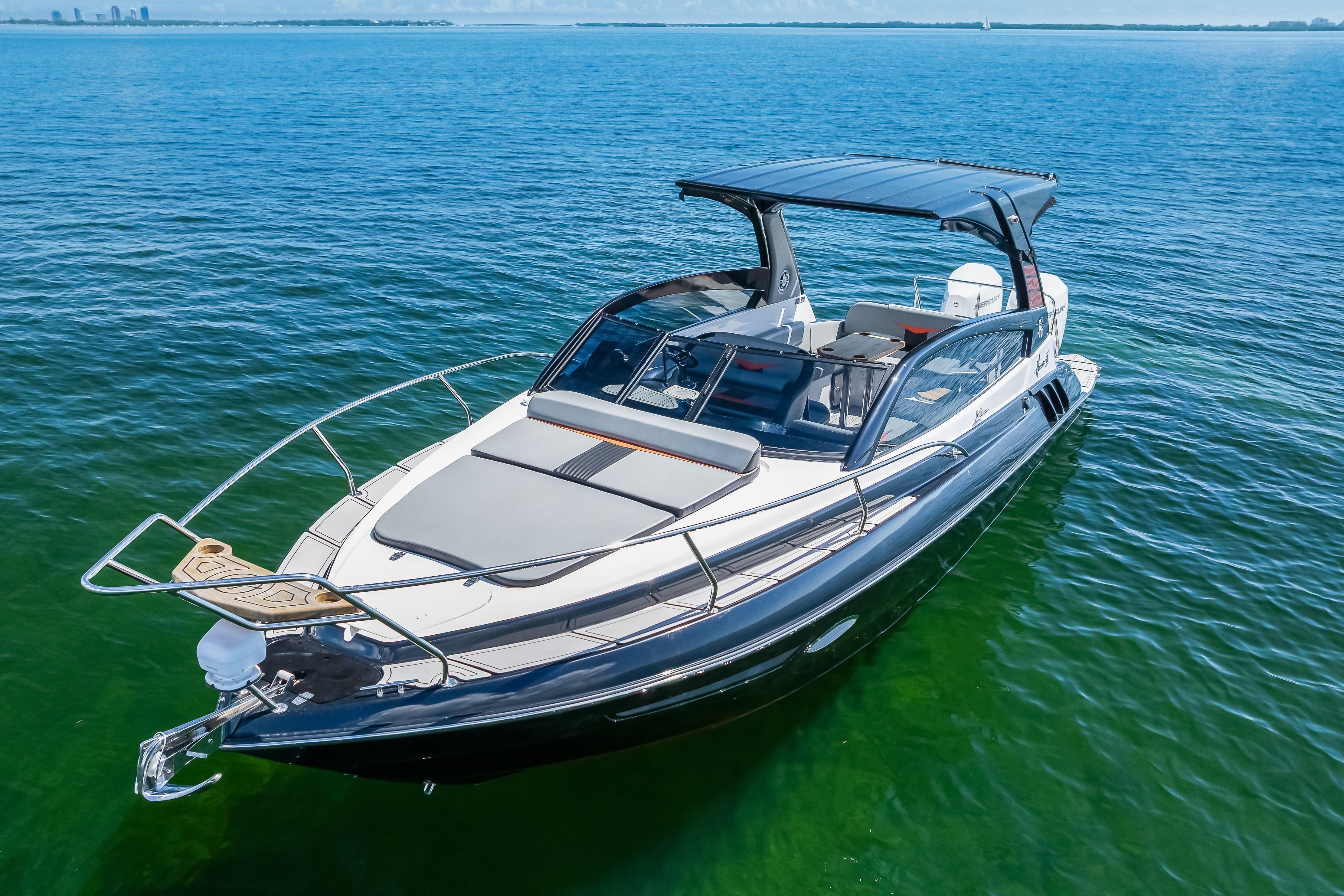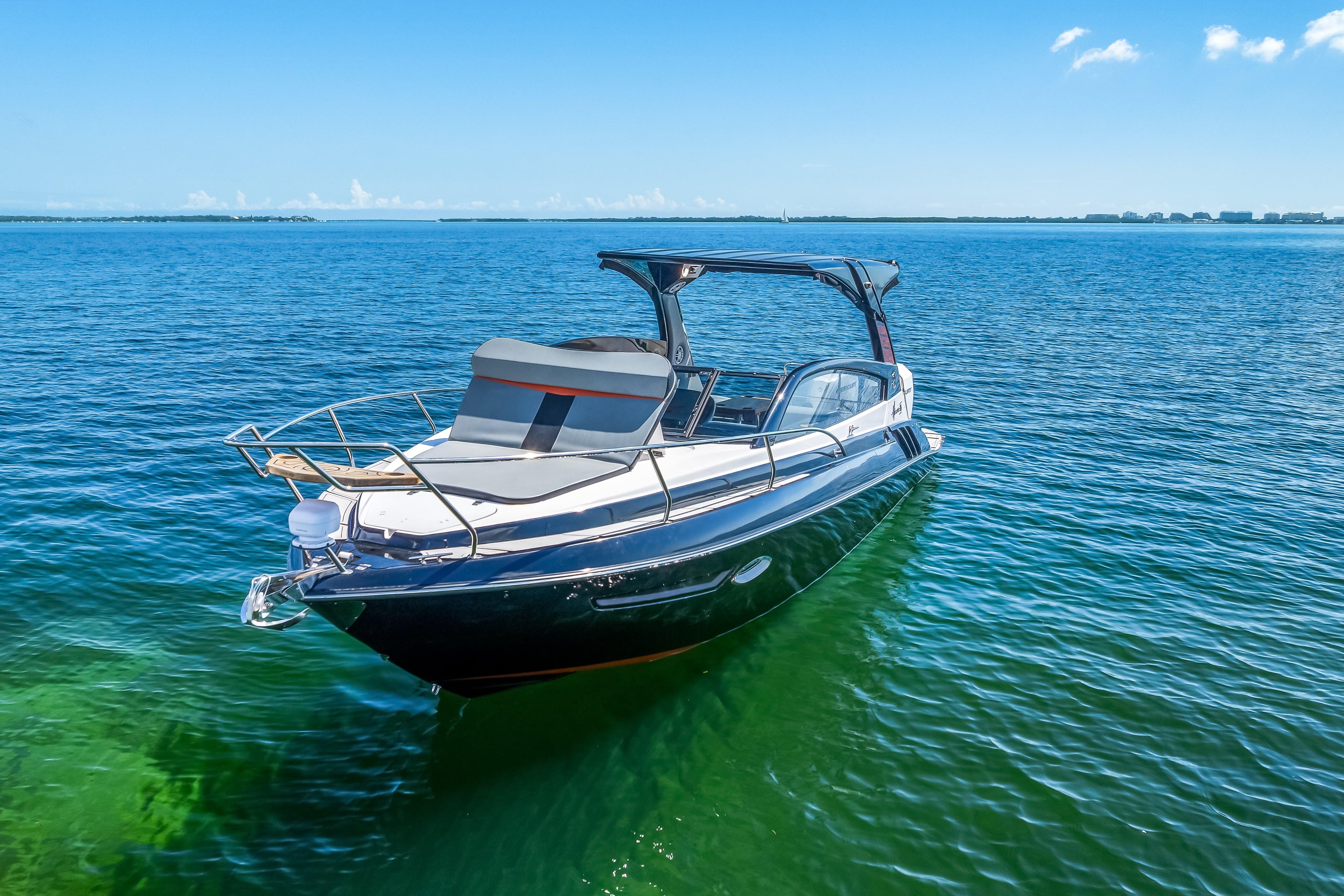 Finished in striking Black & Orange with exterior sport painting, this Hanover 305 blends aggressive styling with Italian-inspired detailing and a long list of premium upgrades, making it one of the most turn key, value packed bowriders / cruisers in its class.