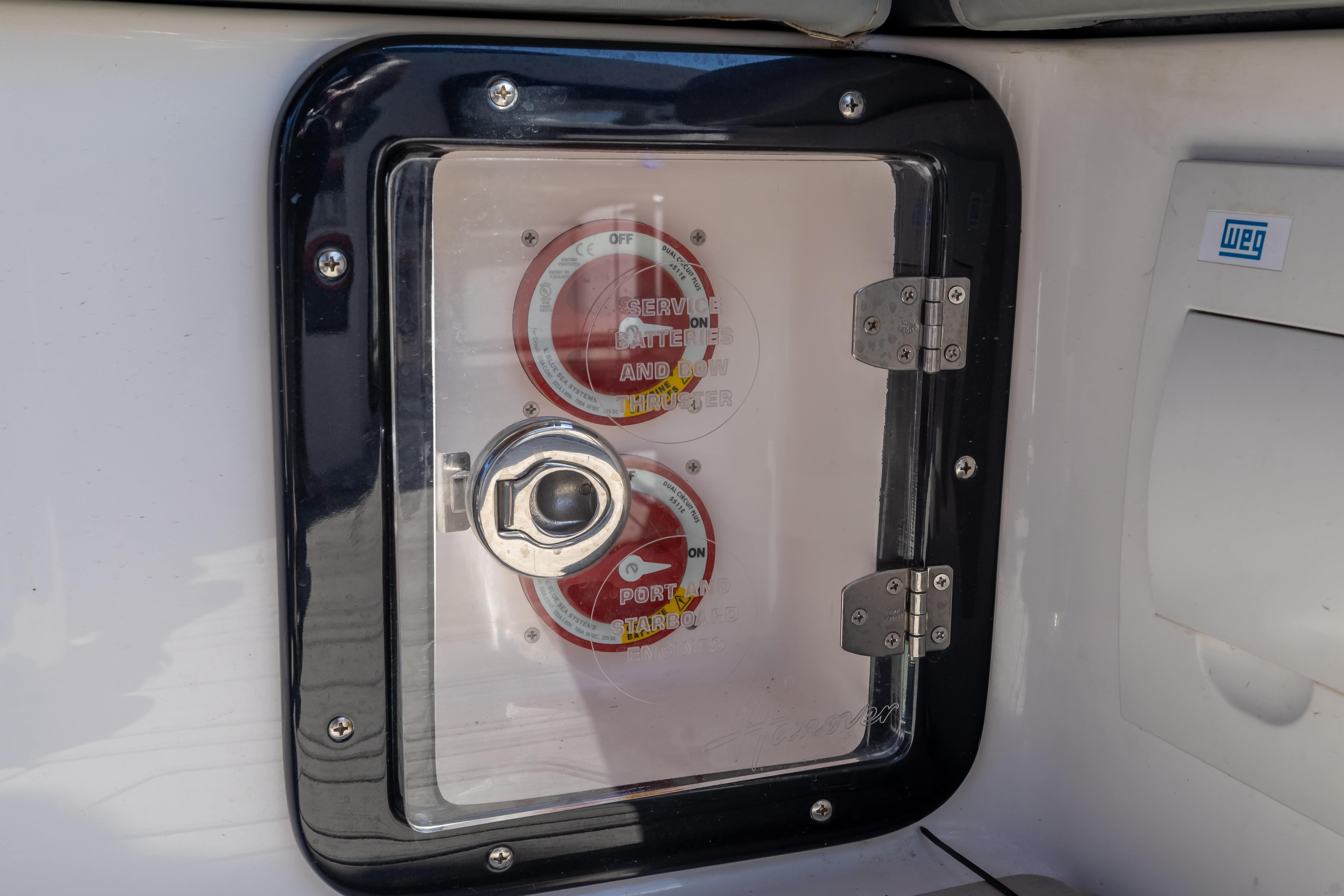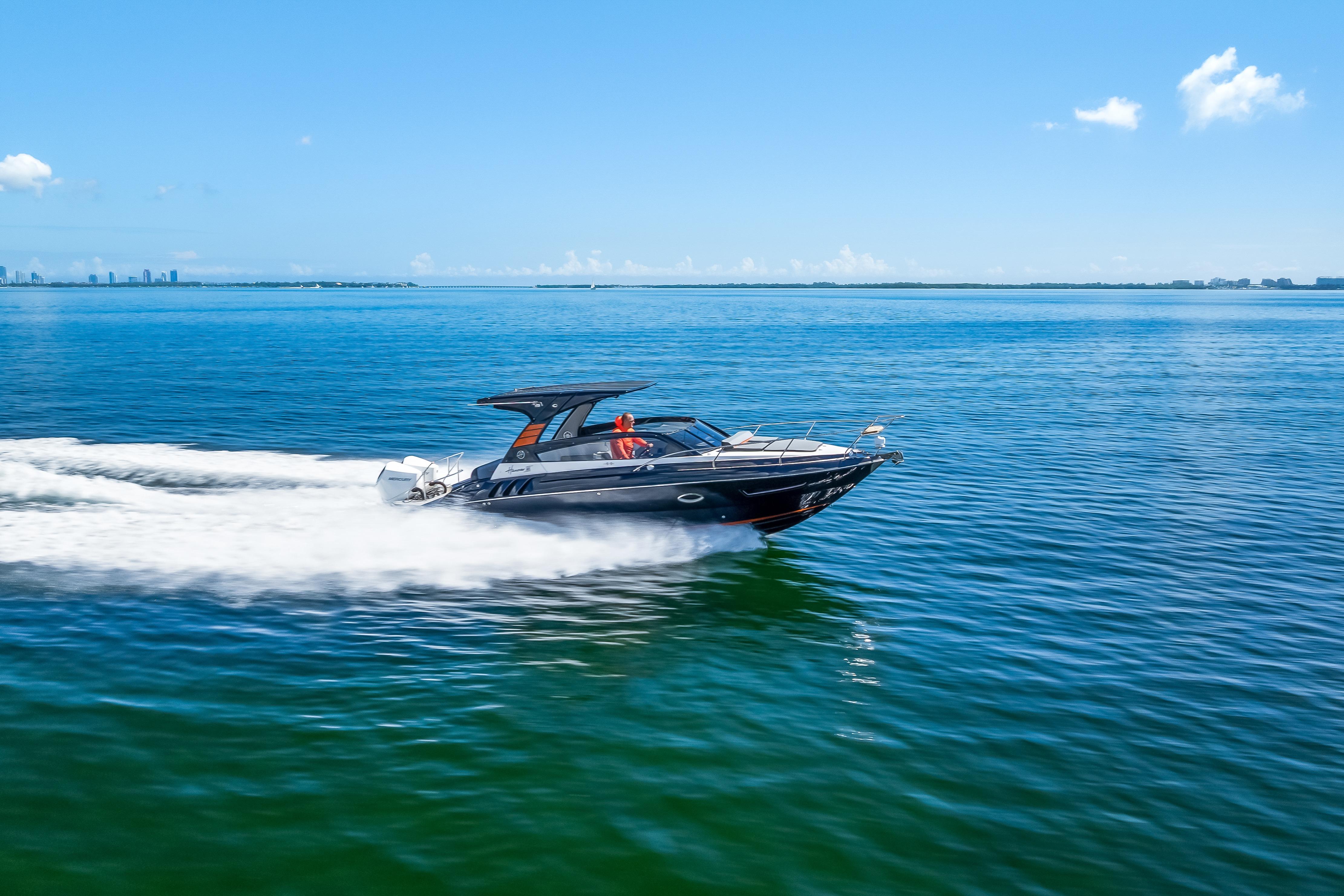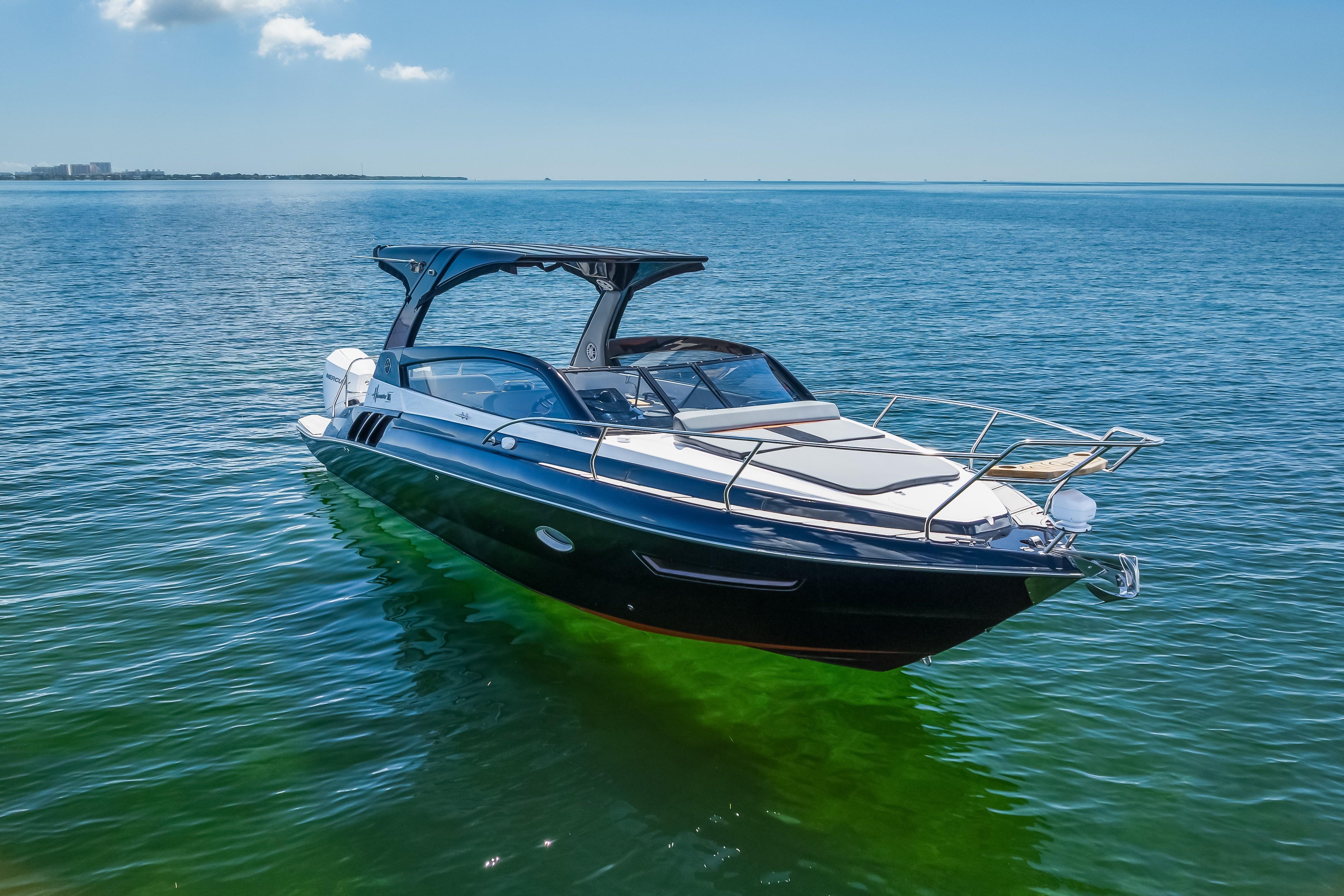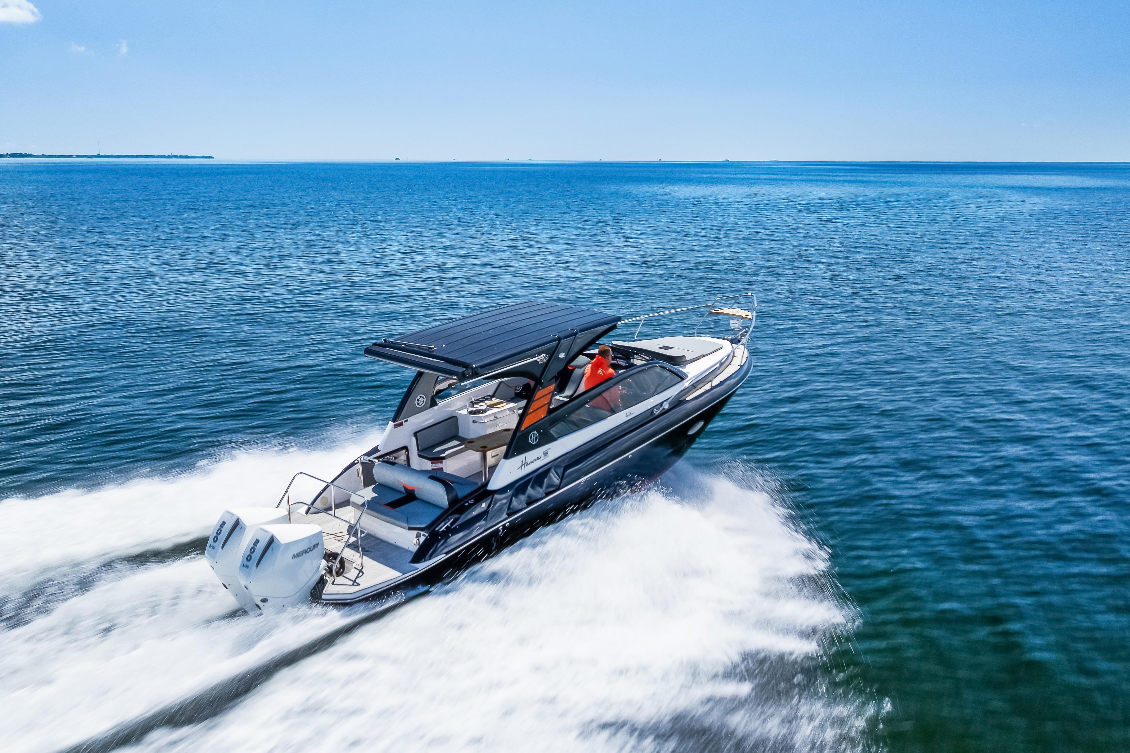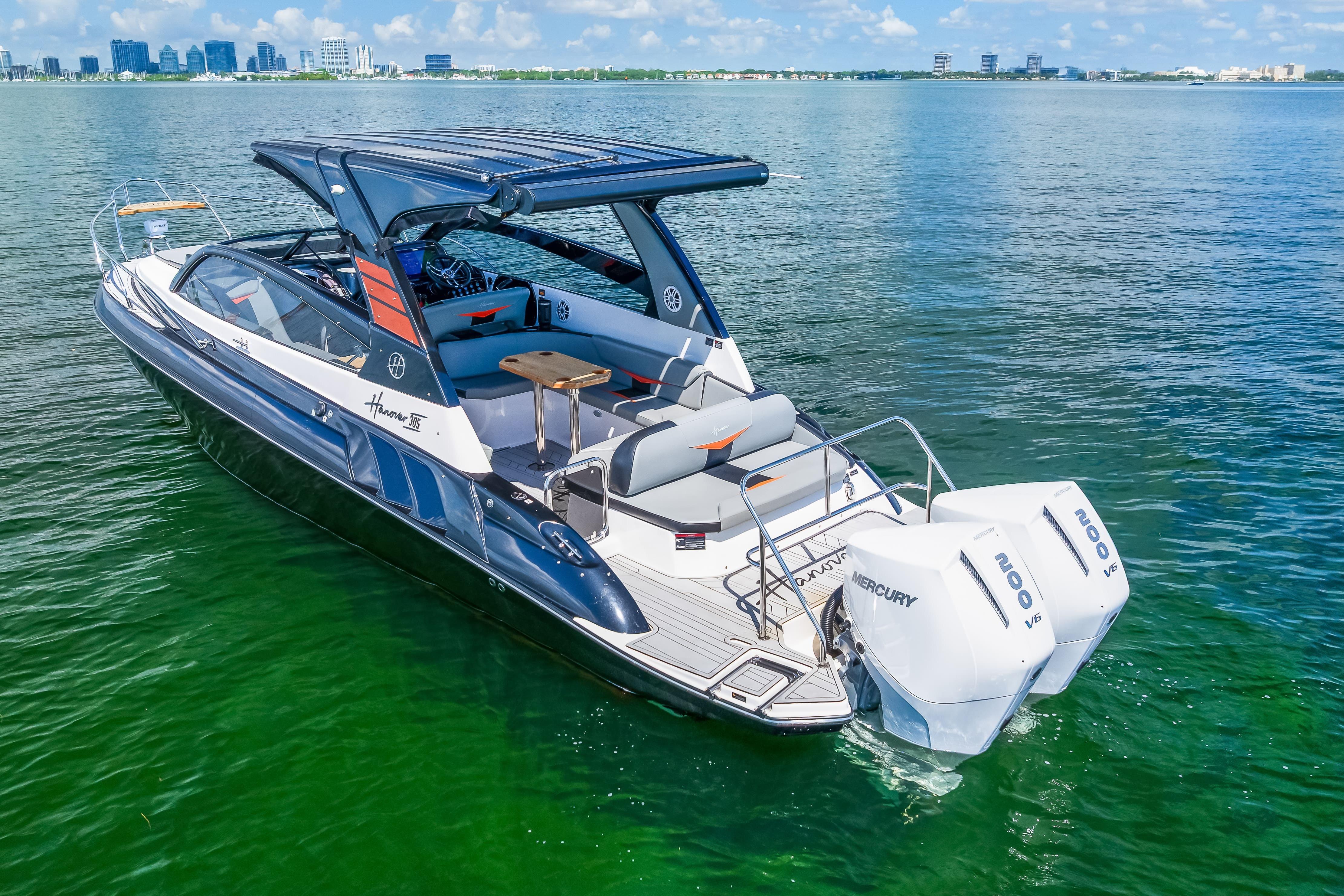 This 2025 Hanover 305 Black & Orange Sport T-Top Edition represents a rare opportunity to step into a fully loaded, premium spec performance used bowrider with the bulk of its depreciation already absorbed by the original owner. Showing only 43 hours on its twin 200 HP Mercury EFI outboards, she’s practically new and comes with both a 5-year Mercury engine warranty and a 5-year hull warranty.