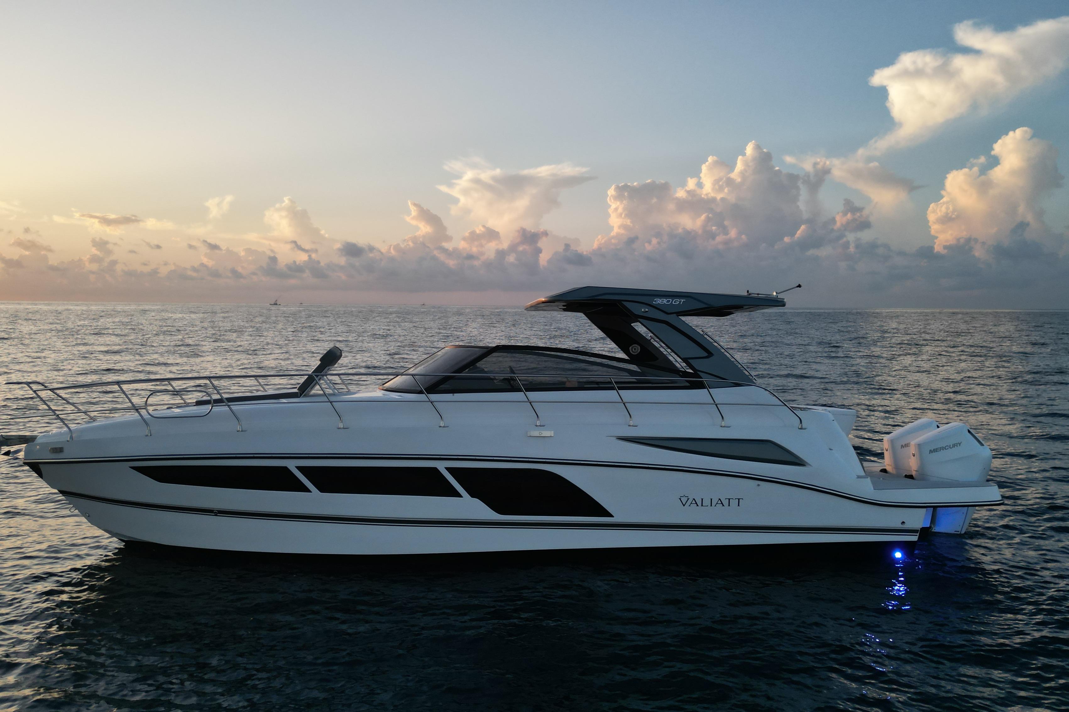 Introducing the stunning 2025 Valiatt 380GT, a new cruiser that perfectly blends elegance and performance. With an overall length of 40 feet, this vessel is designed for those who appreciate both style and functionality. The hull is crafted from durable fiberglass, ensuring longevity and resilience on the water. Powered by two impressive MERCURY V10 VERADO outboard engines, each delivering 400 hp, this boat promises exhilarating speed and agility, making it ideal for adventurous outings. With only 24 hours of operation, it is practically brand new and ready for exploration. The Valiatt 380GT is equipped with essential features that enhance your boating experience. Its thoughtful design and robust construction make it a perfect choice for cruising enthusiasts seeking a reliable and stylish vessel. Experience the thrill of the open water with the Valiatt 380GT, where every journey becomes a memorable adventure.