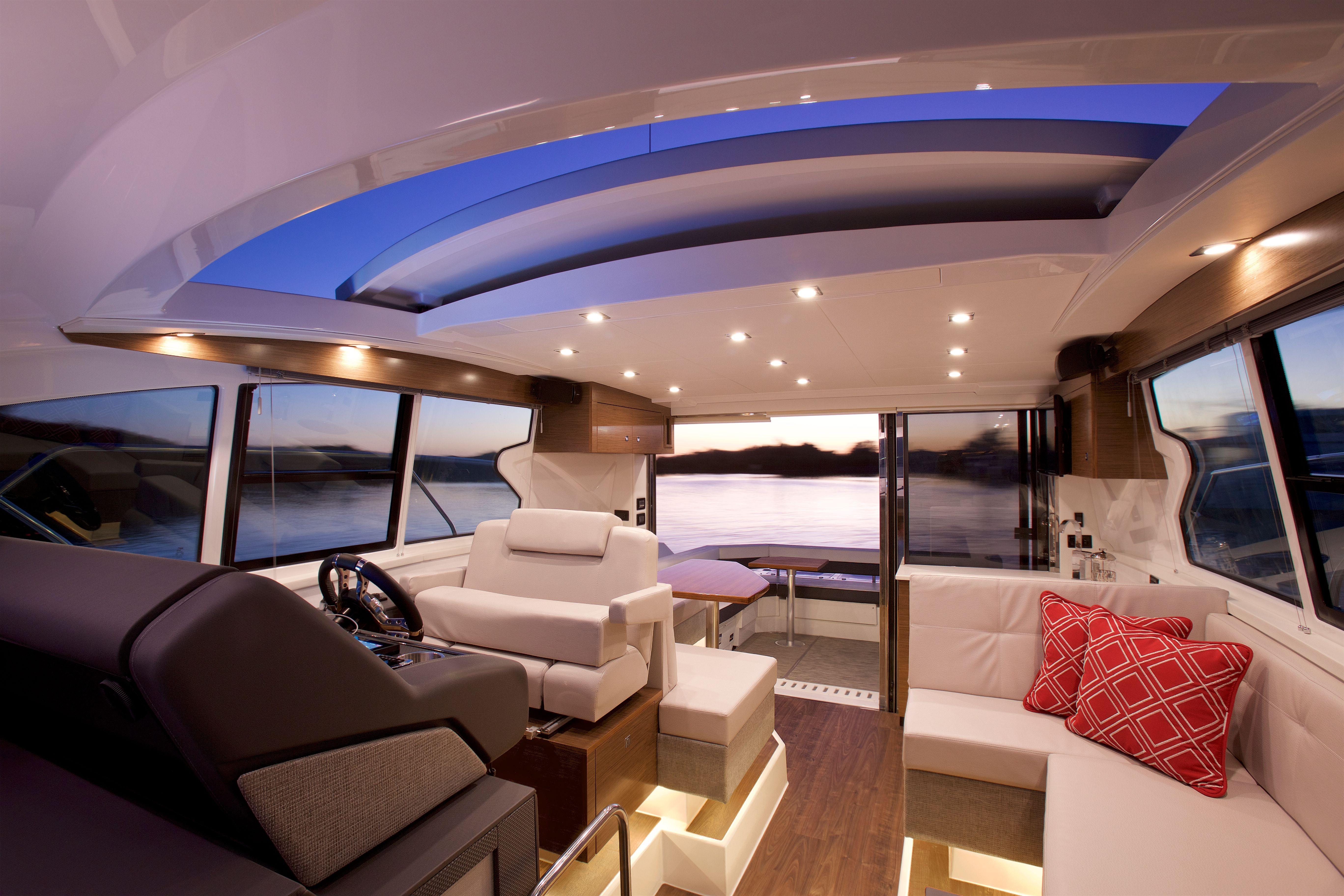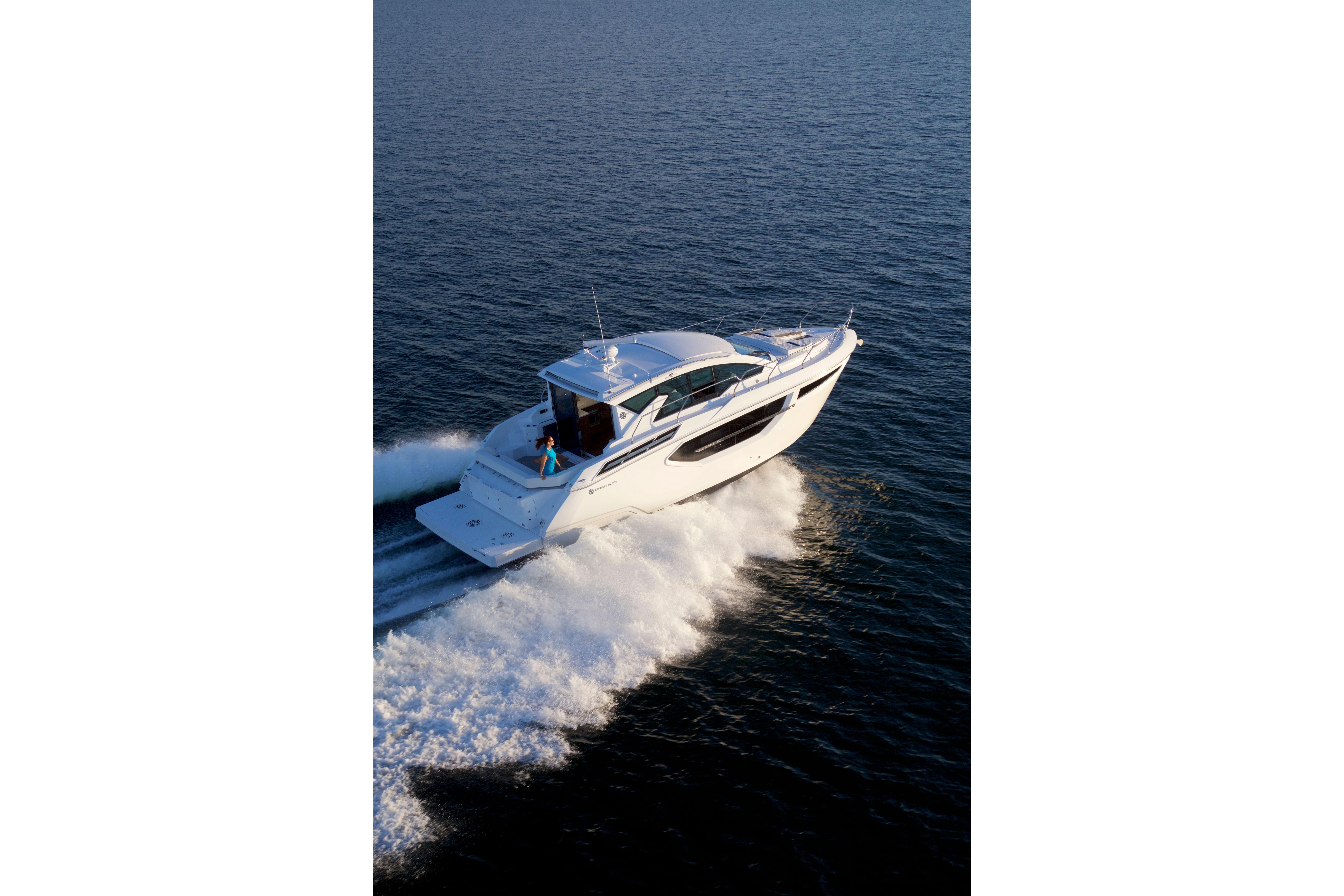 The Cruisers Yachts 42 Cantius is a cutting-edge coupe designed for open water adventures and luxury living. Featuring spacious 360° salon windows and a retractable sunroof, this yacht blends indoor comfort with outdoor freedom. Two elegant staterooms, full galley, and expansive cockpit provide the ultimate platform for relaxation and entertainment. Powered by twin Volvo IPS500 engines, the 42 Cantius achieves up to 30 knots and delivers a smooth, efficient cruising experience.