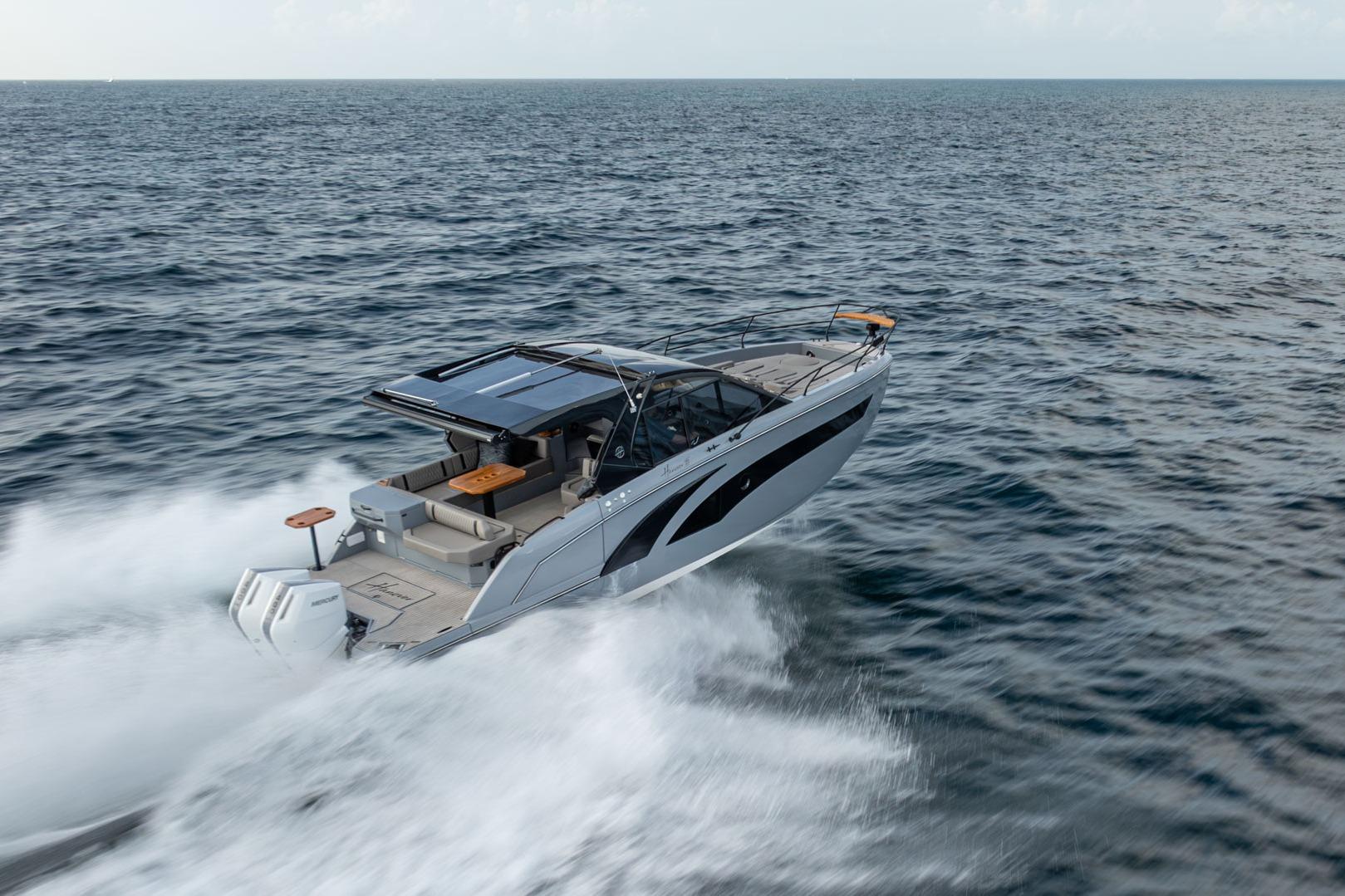 All about effortless comfort: wide beam, openable hardtop, and a deck plan that flows from bow sunpads to the open-air aft lounge.