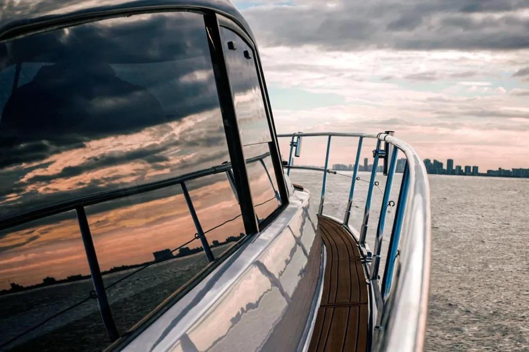Reserve your 415 Outboard build and tailor the fit to your program. Triple Verado 300s with joystick piloting handle tight slips with confidence, while a Raymarine suite (autopilot, radar, and more) supports longer coastal runs. The modified V-hull balances speed and comfort at a 25-mph cruise and 40-mph sprint.