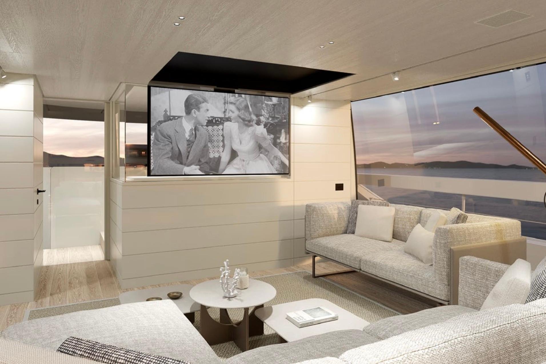 Expansive main deck salon with full-height glass and seamless indoor/outdoor flow