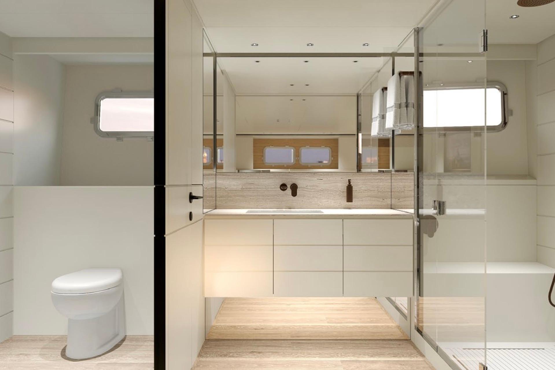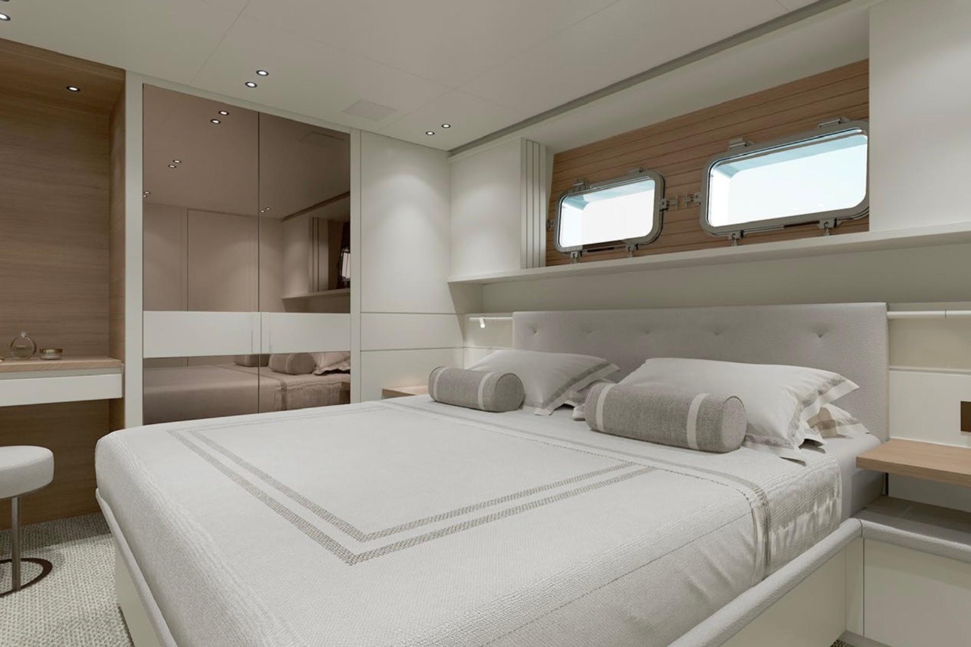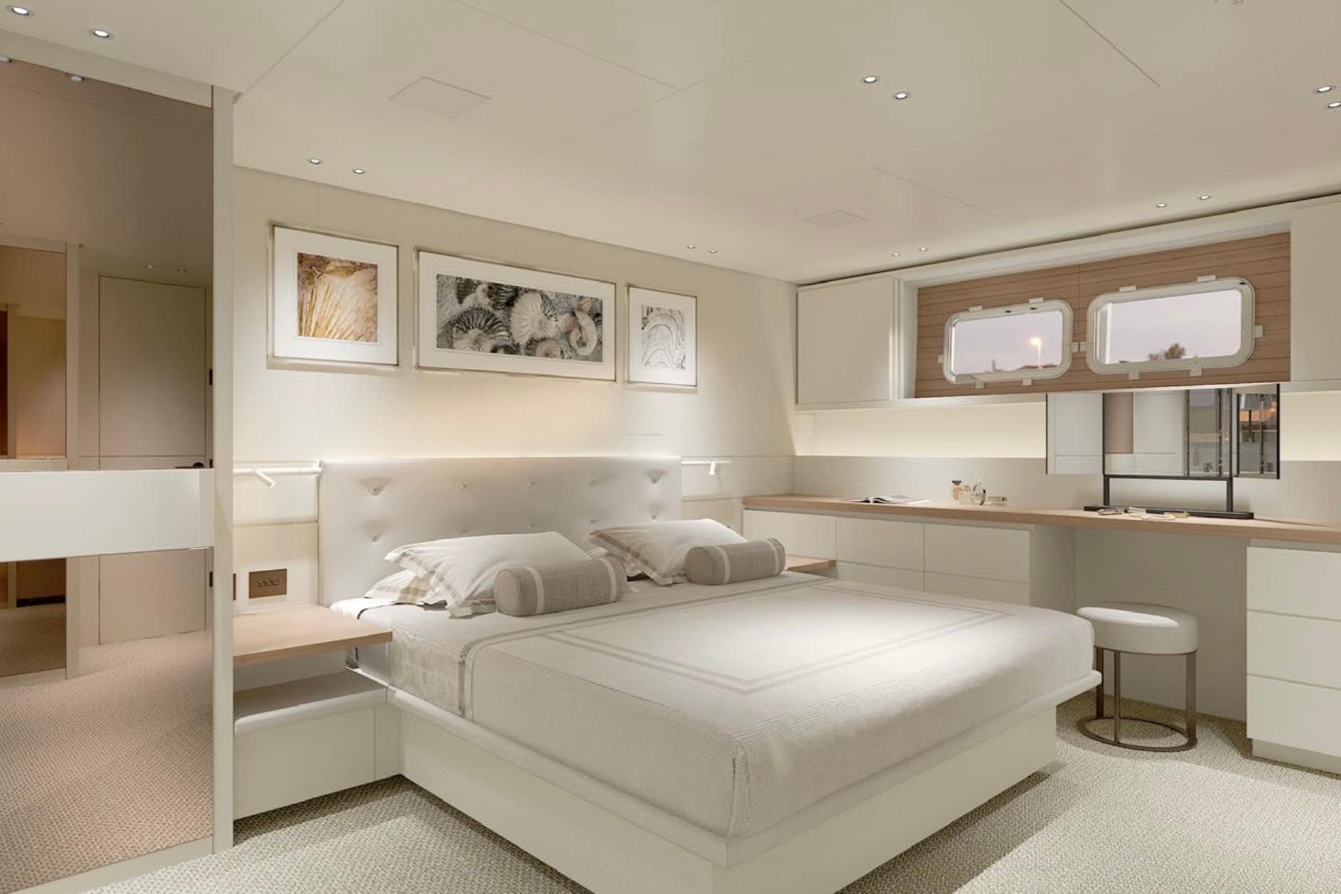 4-stateroom layout including full-beam owner’s suite + en-suite VIP and guest cabins