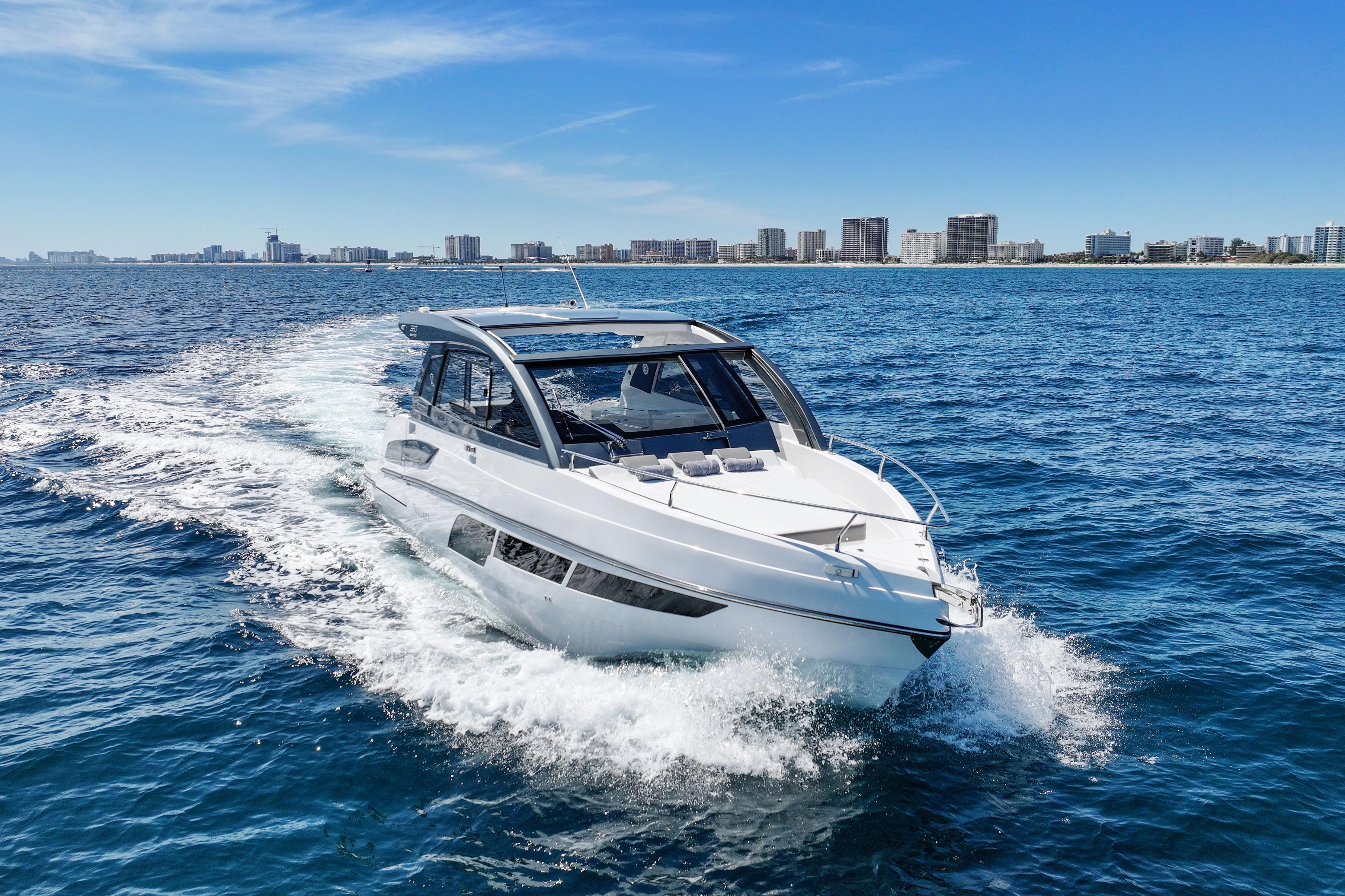 Powered by twin Mercury Verado V10 400-HP outboard engines, the 380 Bowrider delivers exhilarating performance, cruising comfortably at 38 knots with a top speed approaching 45 knots. Joystick control ensures exceptional maneuverability, making docking and close-quarters handling effortless.