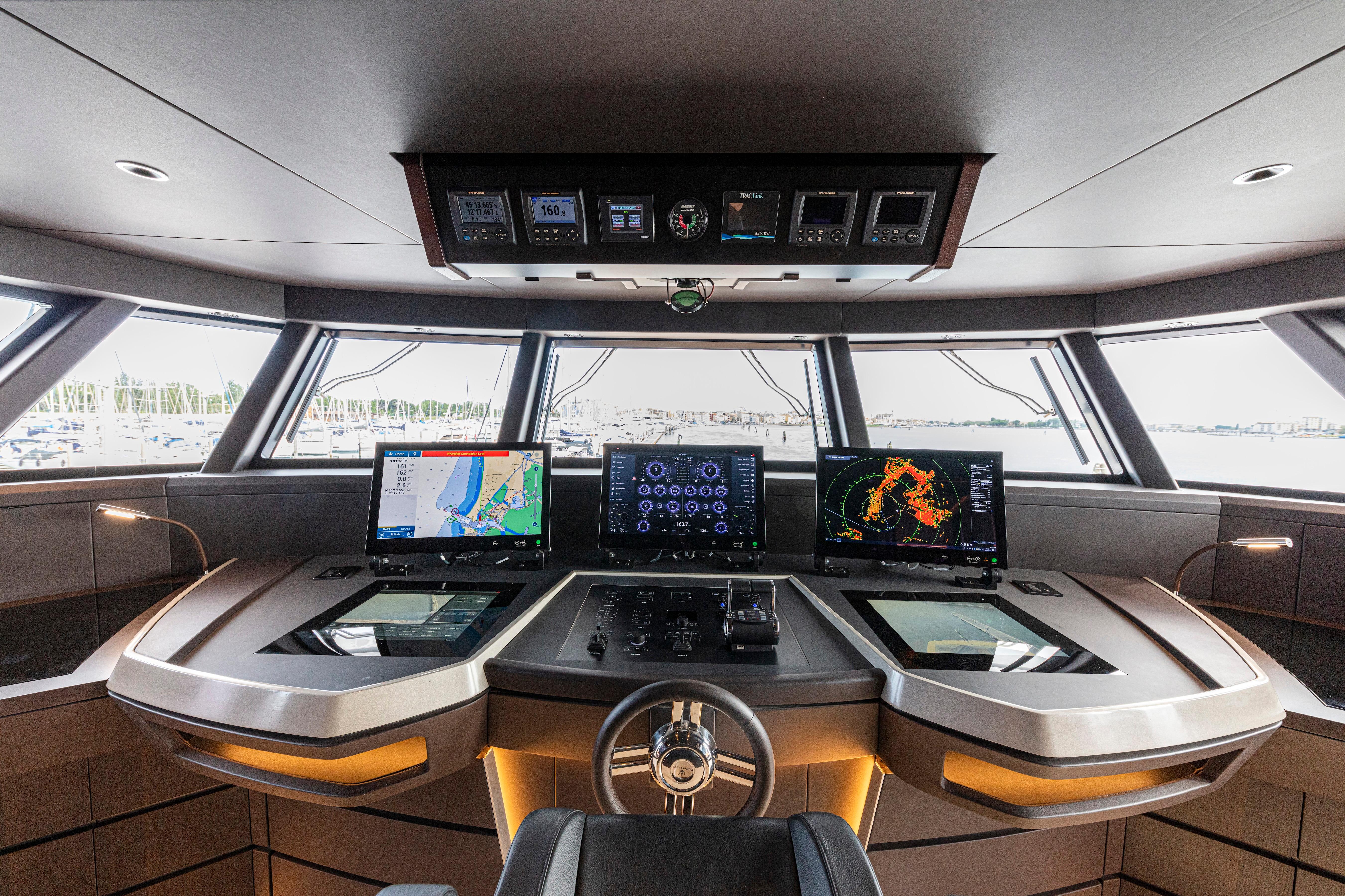 The Ducale 120's high-tech wheelhouse is equipped with state-of-the-art technology, including advanced Furuno navigations systems and Böing interfaces, ensuring unparalleled accuracy and ease of operation.